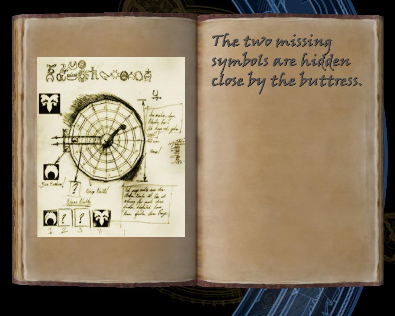 Gondolom mostanra kiderült számotokra, hogy ez a két szimbólum is a birtokunkban van: az egyiket a röntgenberendezés segítségével azonosítottuk a földben, a másikat pedig a mobil iroda nyomtatójáról vettük el. A jegyzetfüzetbol az is kiderül, hogy a jeleknek a kilenc óra helyénél lévo zár keretében kell szerepelniük. Jobbra a szerkezettol egy fapalló vezet körbe hátra, fel egy nagyon faállványra, amit négy kar alá ácsoltak. Ezekkel lehet az egymástól függetlenül forgó kerekeket rögzíteni. Lépj tehát a szerkezethez, és a középen lévo kar segítségével forgasd el a kerekeket háromszor. Ekkor az elso szimbólum, a fektetett hold a helyére kerül. Szaladj hátra karokhoz, és balról az elsot meghúzva rögzítsd a helyén a jelet. Fuss vissza a szerkezethez és forgass még egyet a kerekeken. Ekkor a negyedik szimbólum kerül a helyére, amit a negyedik karral tudsz rögzíteni. Még két forgatás, és a harmadik jel (amit a röntgenberendezés segítségével találtunk) is a megfelelo állásban lesz. Zároljuk ezt is a harmadik kar meghúzásával. Már csak egyszer kell megforgatnunk a kereket, és a negyedik jel megfelelo pozícióba való kerülésével sikerült kiraknunk a megfelelo kombinációt, aminek hatására a fenti, kerek fémlap kinyílik, felfedve a titkos lejárót.