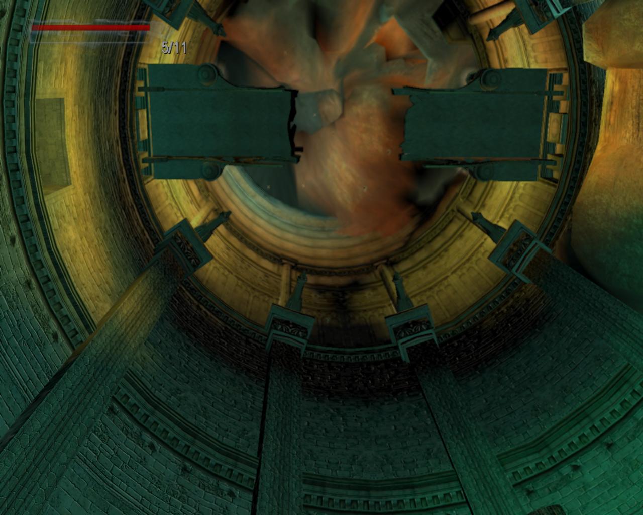 Fordulj balra, és fuss elore. Kerüld meg a talapzatot jobbra. Szemben balra láthatsz egy ajtót, amit zöldes fény világít meg. Fuss oda hozzá.