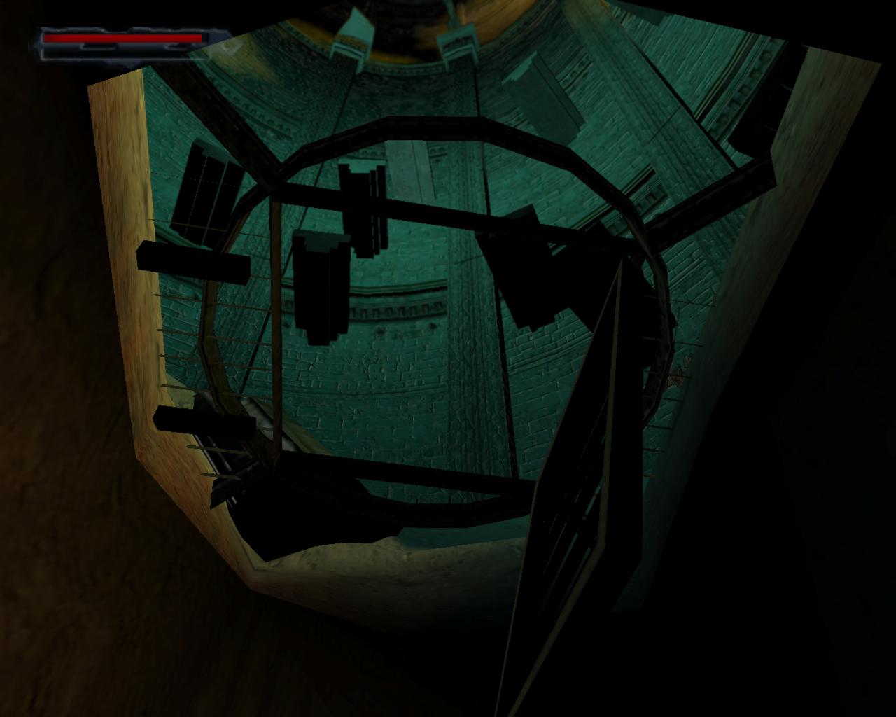 Fuss tovább jobbra, majd mássz be a szemközti résbe. A baloldali szellozo zsákutca. Mássz fel a létrán, és állj meg a szellozorács elott. Végre találkozhatsz az orrel, aki a pálya elején elsétált az ablak elott. Várd meg, míg elhalad, vagy a rácsot kirúgva szemtol szembe mérkozz mge vele. A szellozobol kilépve balra le tudnál jutni a teto egy alacsonyabb részére, ahol két ajtó van, amiket egyelore nem tudsz kinyitni: