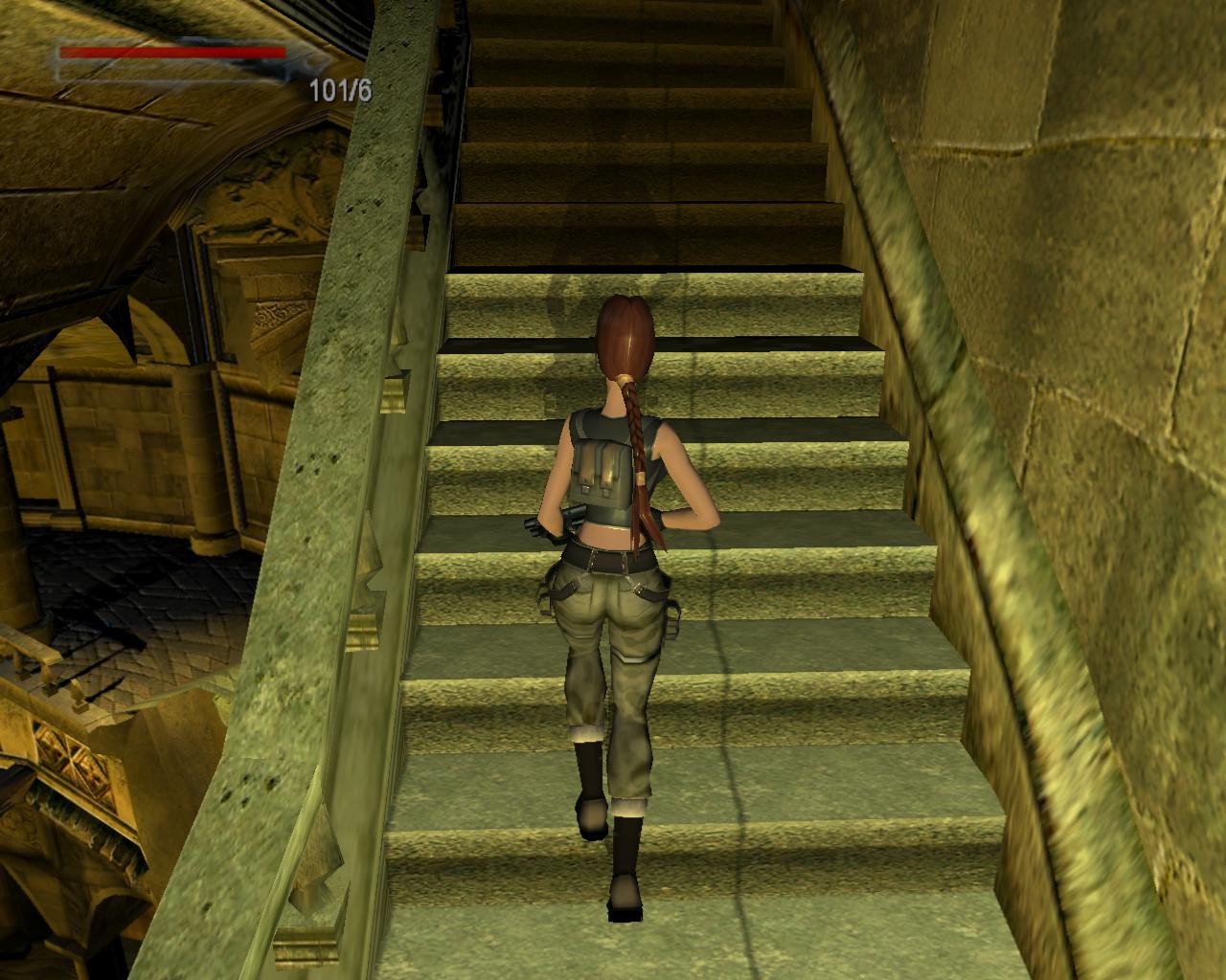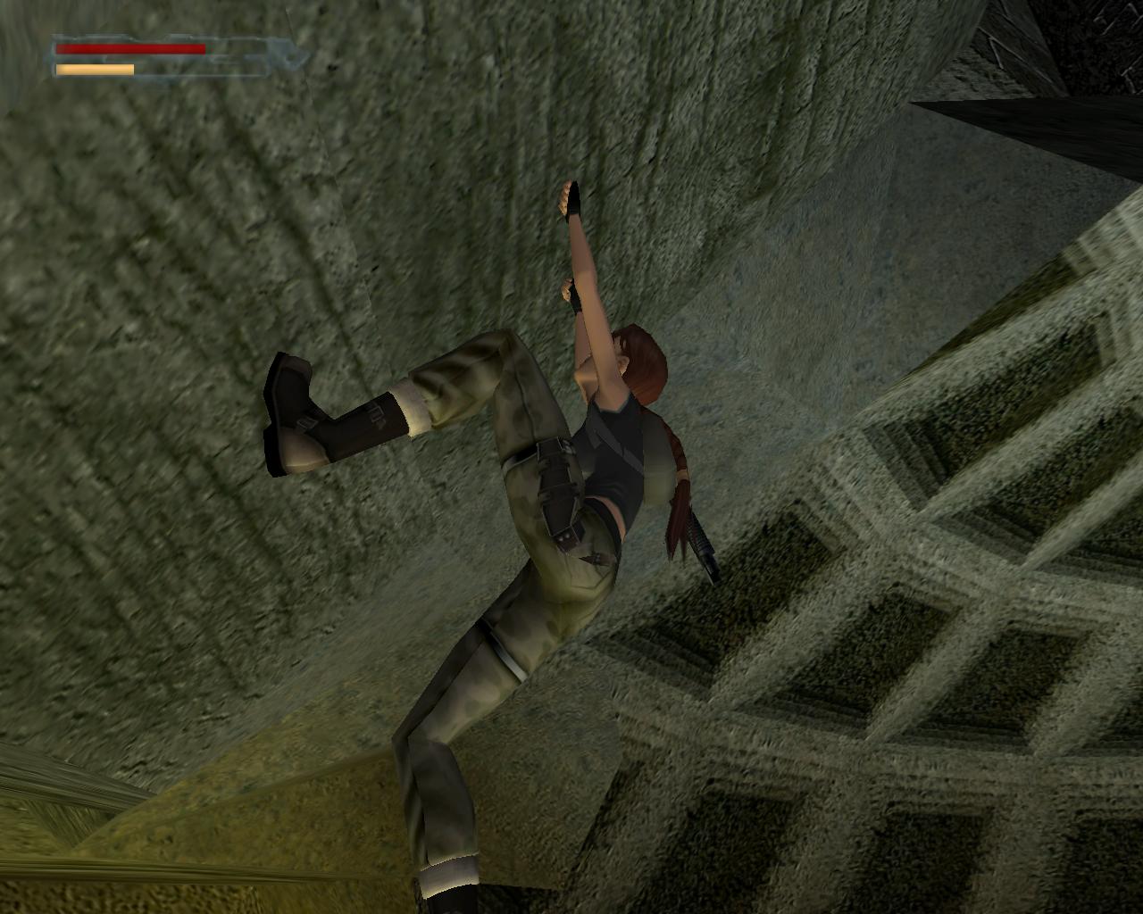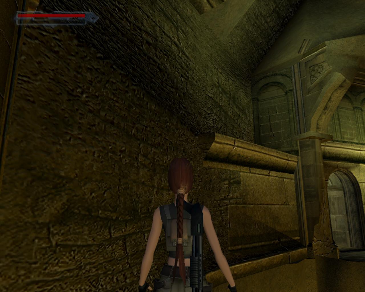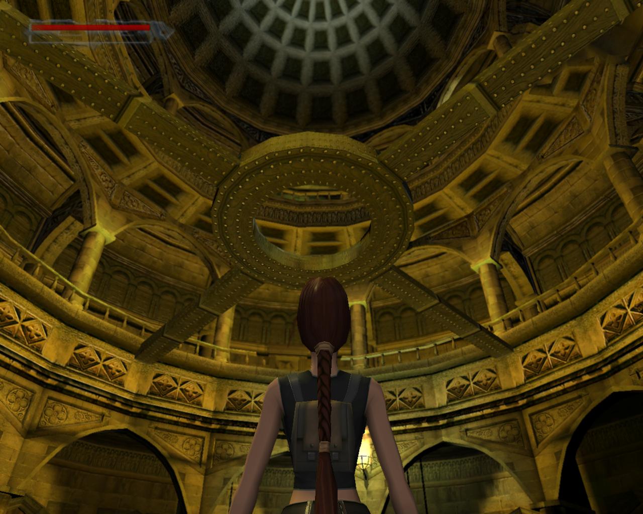 Emellett egy nagy egészségcsomagot is felvehetsz a fülkében. Menj vissza a mászható falhoz és mássz fel a kis peremre. Egy elég nehéz függeszkedés következik... A kupola egy része sérült; ezekben a repedésekben meg lehet kapaszkodni. Mássz fel amíg lehet, majd miután Lara megfordult, függeszkedj tovább elore és balra, hogy mielobb elérd a kis peremet. Ess le rá és gyujts erot az ennél is komolyabb mászáshoz, hiszen a java még csak most következik. Fordulj meg és kövesd végig az elotted álló utat a szemeddel: elore és balra kell majd függeszkedned. Tégy így, lehetoleg pillanatnyi megállás nélkül. Amikor erre a pontra érsz, látszólag véget ér az út, de ne ijedj meg, mert Lara megfordulva megkapaszkodik a kupola belso felén lévo repedésekben és fel tudsz mászni a kupola csúcsánál lévo résbe. Oldalazz el balra, és már meg is vagyunk. Nem is volt olyan hosszú az út, mint amilyennek tunt. Fordulj meg és balra egy zárt kaput láthatsz. Közelebb lépve magától kinyílik és egy kis folyosóra érsz, balra is, jobbra is egy kapuval. A jobboldali zárva van, de a baloldali egy lépcsot rejt. Szaladj fel rajt, be az újabb kapun.