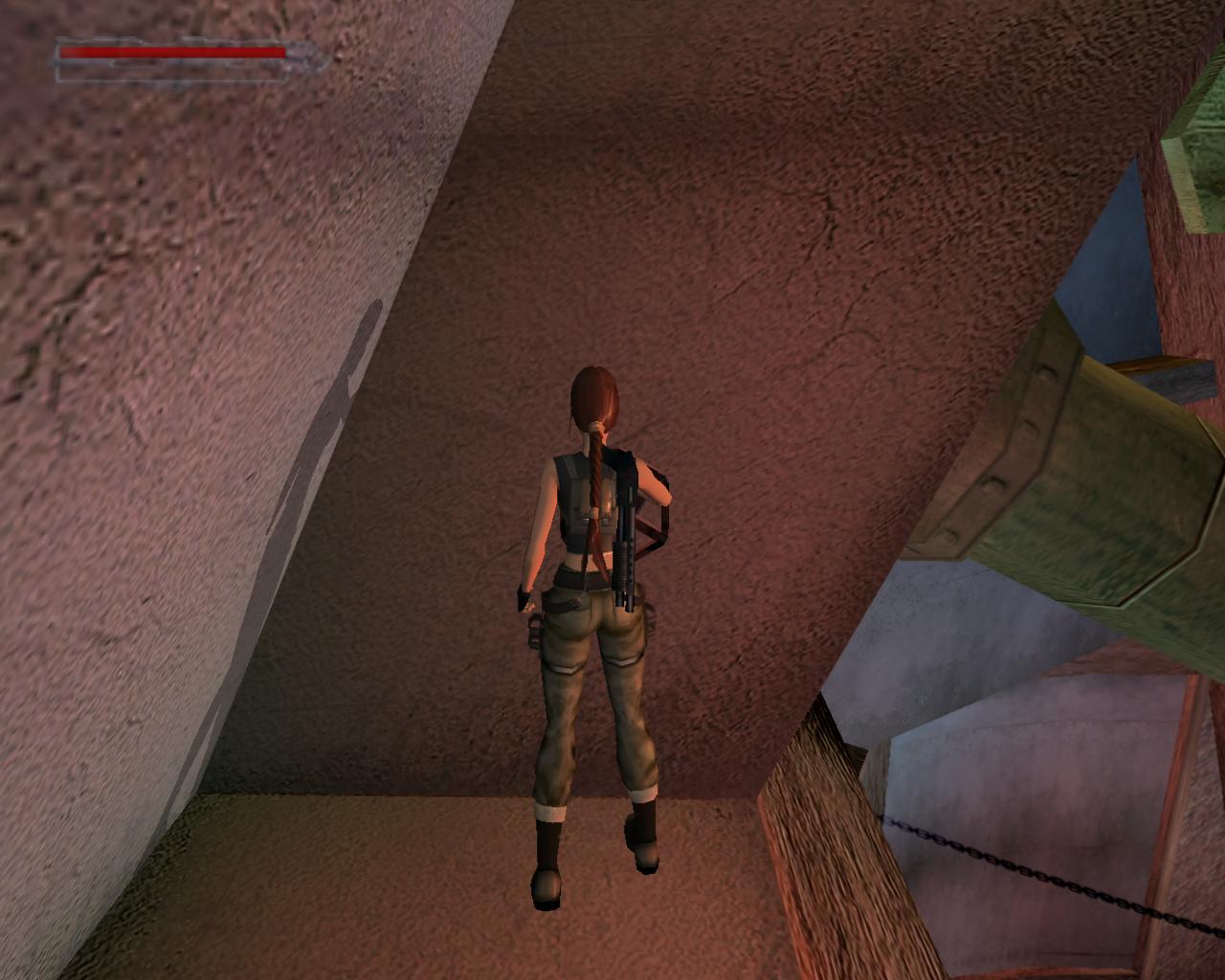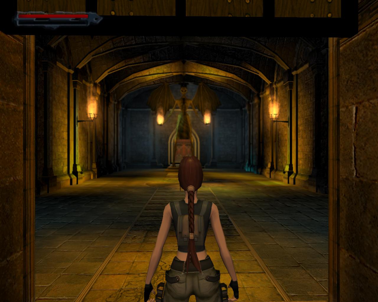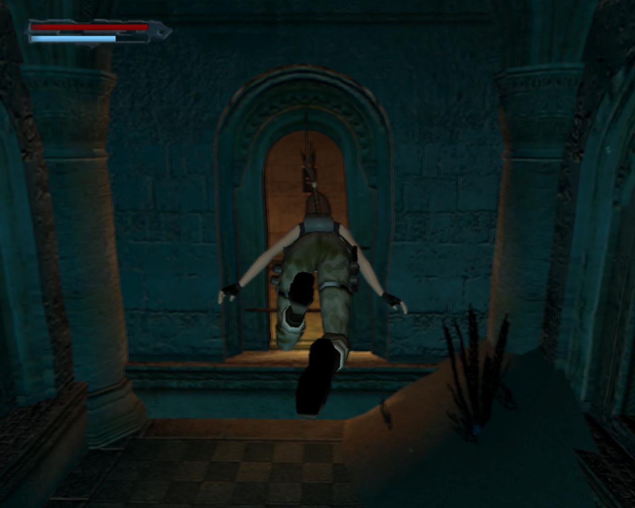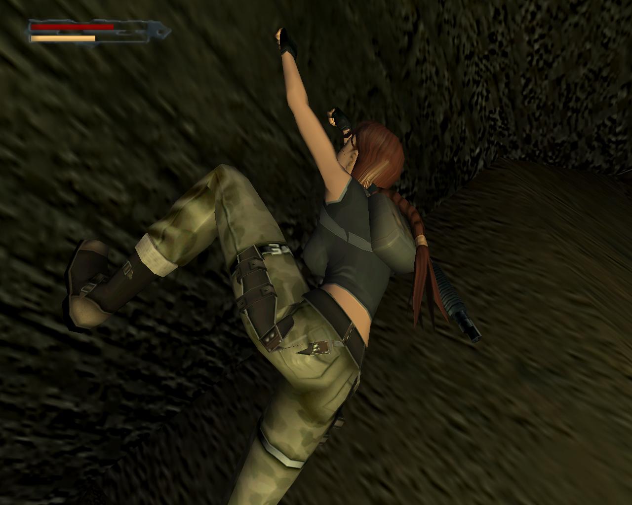 Emellett egy nagy egészségcsomagot is felvehetsz a fülkében. Menj vissza a mászható falhoz és mássz fel a kis peremre. Egy elég nehéz függeszkedés következik... A kupola egy része sérült; ezekben a repedésekben meg lehet kapaszkodni. Mássz fel amíg lehet, majd miután Lara megfordult, függeszkedj tovább elore és balra, hogy mielobb elérd a kis peremet. Ess le rá és gyujts erot az ennél is komolyabb mászáshoz, hiszen a java még csak most következik. Fordulj meg és kövesd végig az elotted álló utat a szemeddel: elore és balra kell majd függeszkedned. Tégy így, lehetoleg pillanatnyi megállás nélkül. Amikor erre a pontra érsz, látszólag véget ér az út, de ne ijedj meg, mert Lara megfordulva megkapaszkodik a kupola belso felén lévo repedésekben és fel tudsz mászni a kupola csúcsánál lévo résbe. Oldalazz el balra, és már meg is vagyunk. Nem is volt olyan hosszú az út, mint amilyennek tunt. Fordulj meg és balra egy zárt kaput láthatsz. Közelebb lépve magától kinyílik és egy kis folyosóra érsz, balra is, jobbra is egy kapuval. A jobboldali zárva van, de a baloldali egy lépcsot rejt. Szaladj fel rajt, be az újabb kapun.
