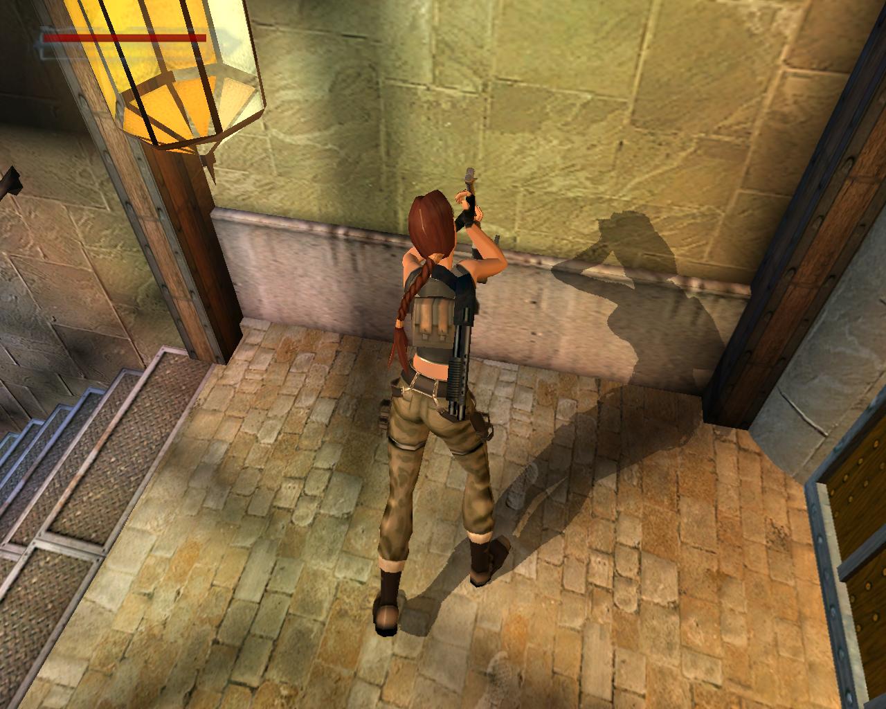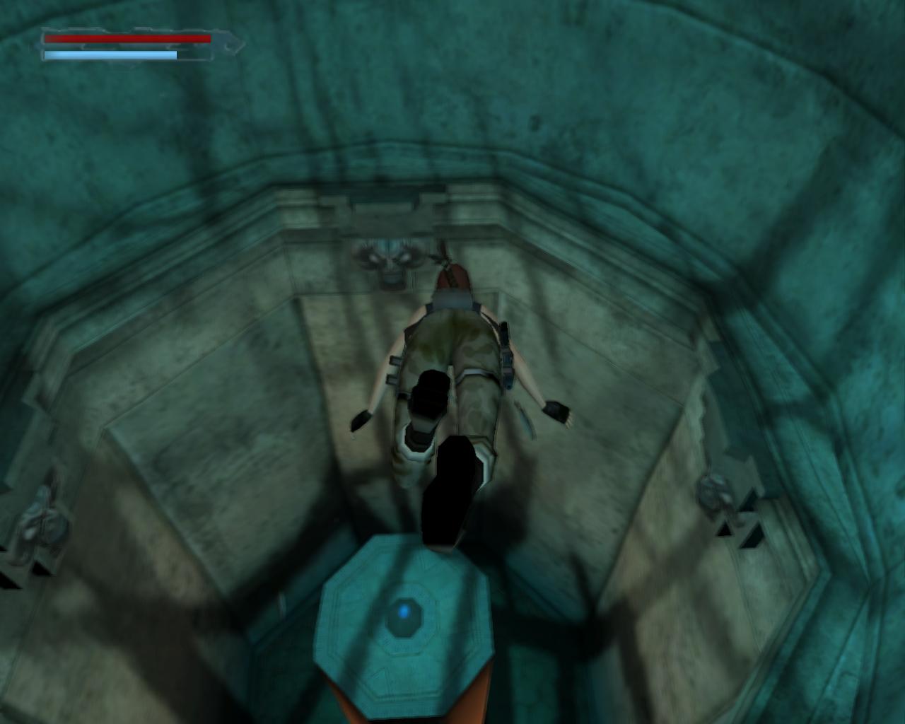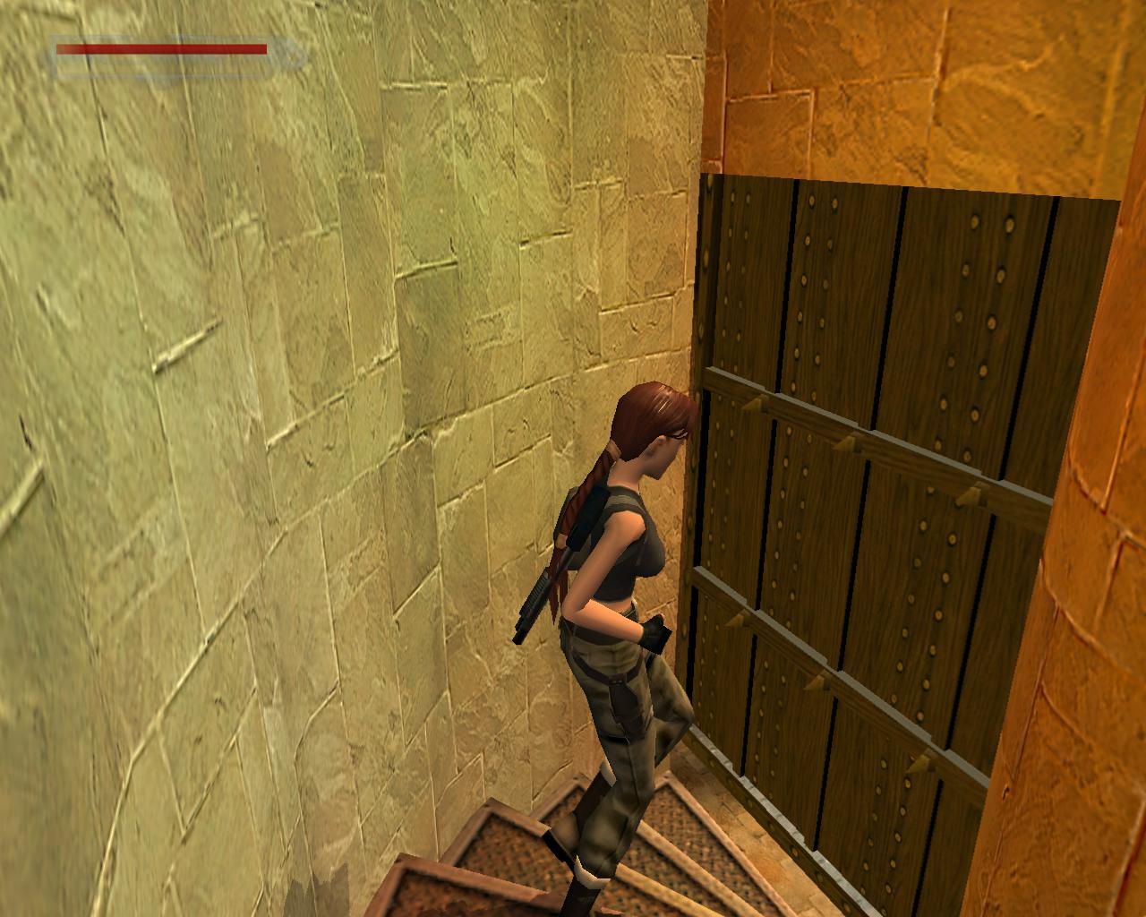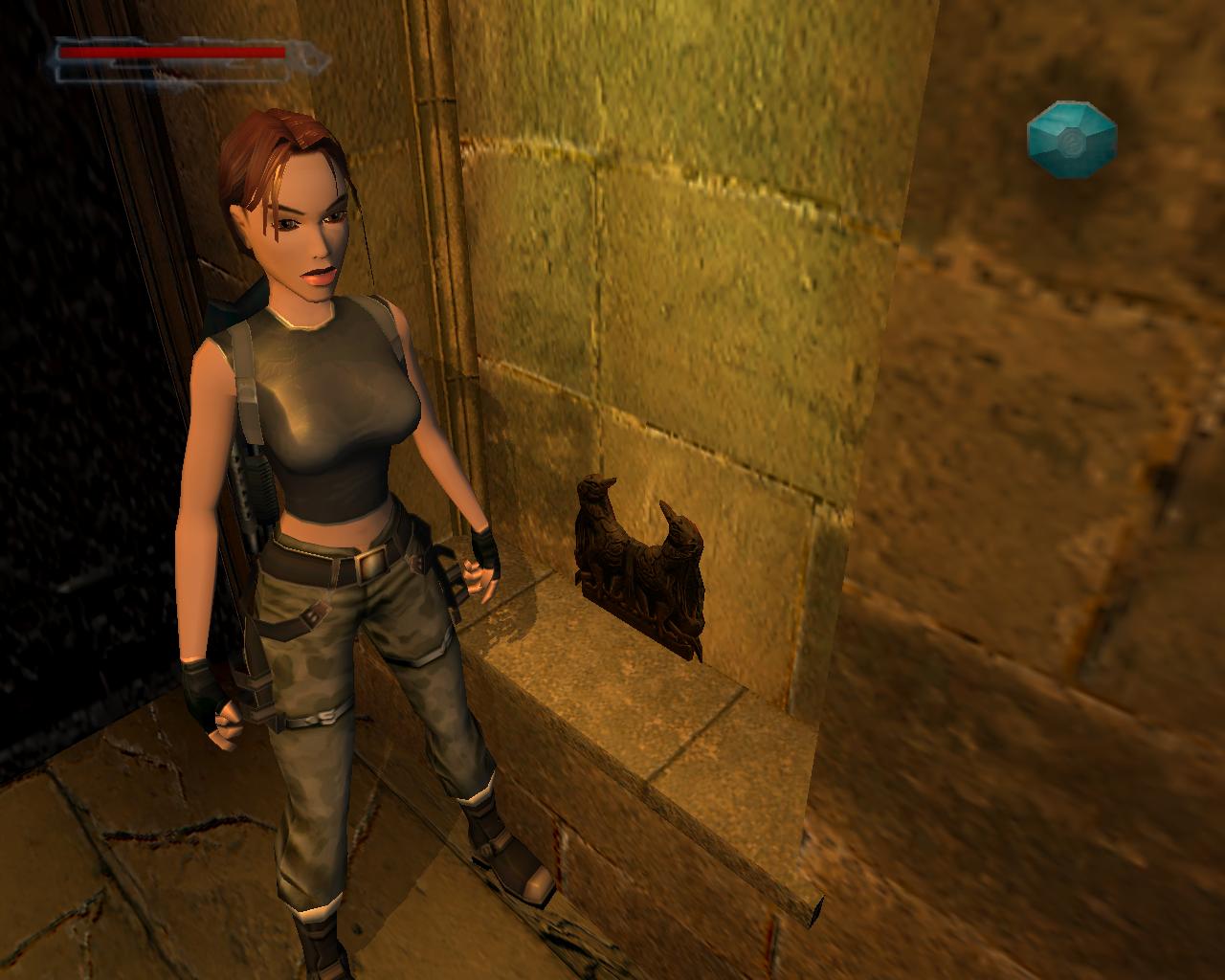 Emellett egy nagy egészségcsomagot is felvehetsz a fülkében. Menj vissza a mászható falhoz és mássz fel a kis peremre. Egy elég nehéz függeszkedés következik... A kupola egy része sérült; ezekben a repedésekben meg lehet kapaszkodni. Mássz fel amíg lehet, majd miután Lara megfordult, függeszkedj tovább elore és balra, hogy mielobb elérd a kis peremet. Ess le rá és gyujts erot az ennél is komolyabb mászáshoz, hiszen a java még csak most következik. Fordulj meg és kövesd végig az elotted álló utat a szemeddel: elore és balra kell majd függeszkedned. Tégy így, lehetoleg pillanatnyi megállás nélkül. Amikor erre a pontra érsz, látszólag véget ér az út, de ne ijedj meg, mert Lara megfordulva megkapaszkodik a kupola belso felén lévo repedésekben és fel tudsz mászni a kupola csúcsánál lévo résbe. Oldalazz el balra, és már meg is vagyunk. Nem is volt olyan hosszú az út, mint amilyennek tunt. Fordulj meg és balra egy zárt kaput láthatsz. Közelebb lépve magától kinyílik és egy kis folyosóra érsz, balra is, jobbra is egy kapuval. A jobboldali zárva van, de a baloldali egy lépcsot rejt. Szaladj fel rajt, be az újabb kapun.