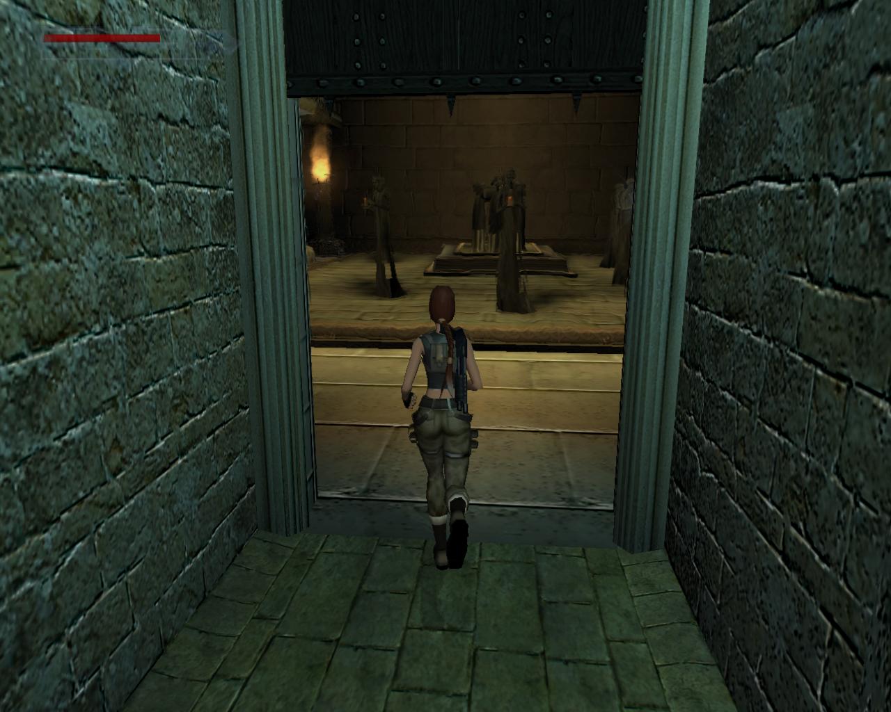 Lara belép egy terembe, ahol szobrok oriznek egy síremléket. Mindegyik egy képet tart a kezében. Lara odalép a kokoporsóhoz, amit szerzetes-szobrok tartanak a vállukon. Olvasni kezdi a rávésett szöveget: