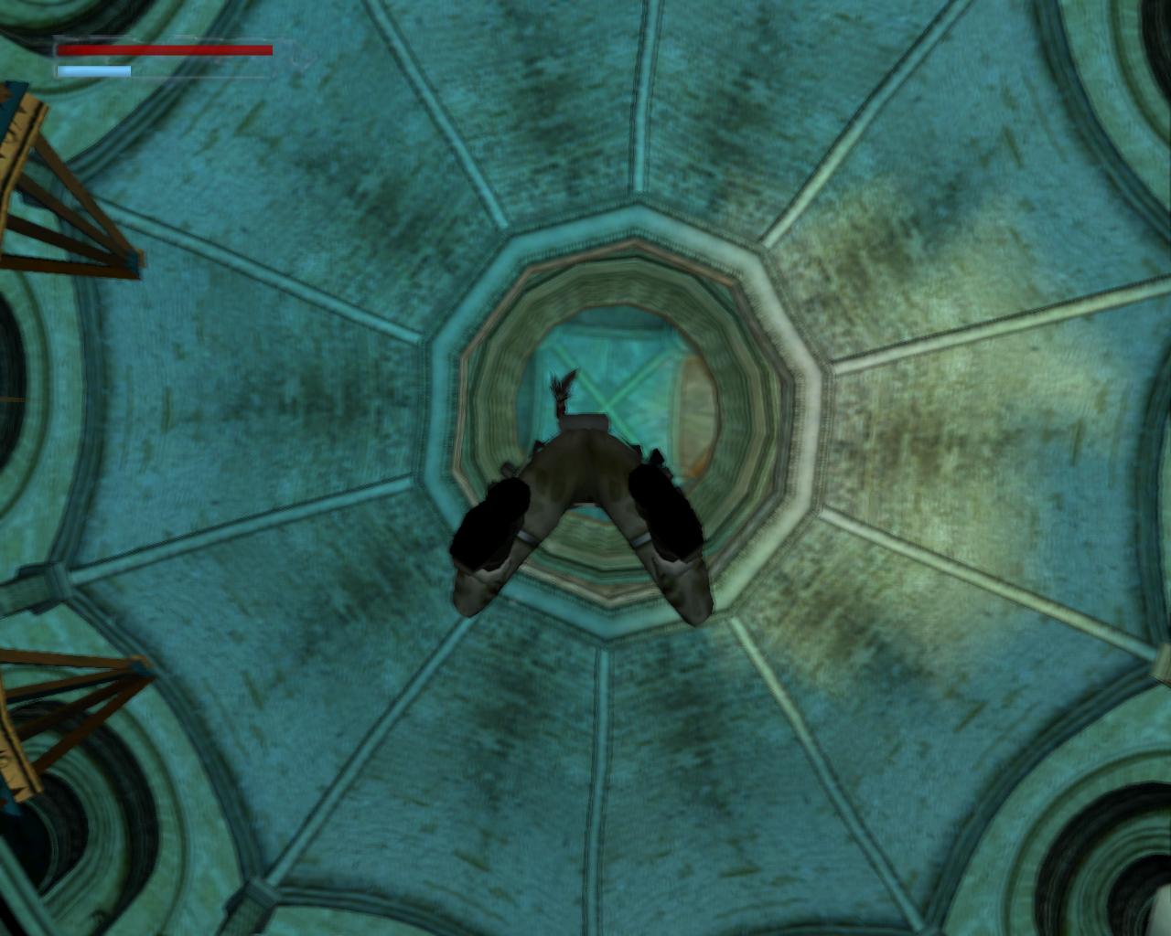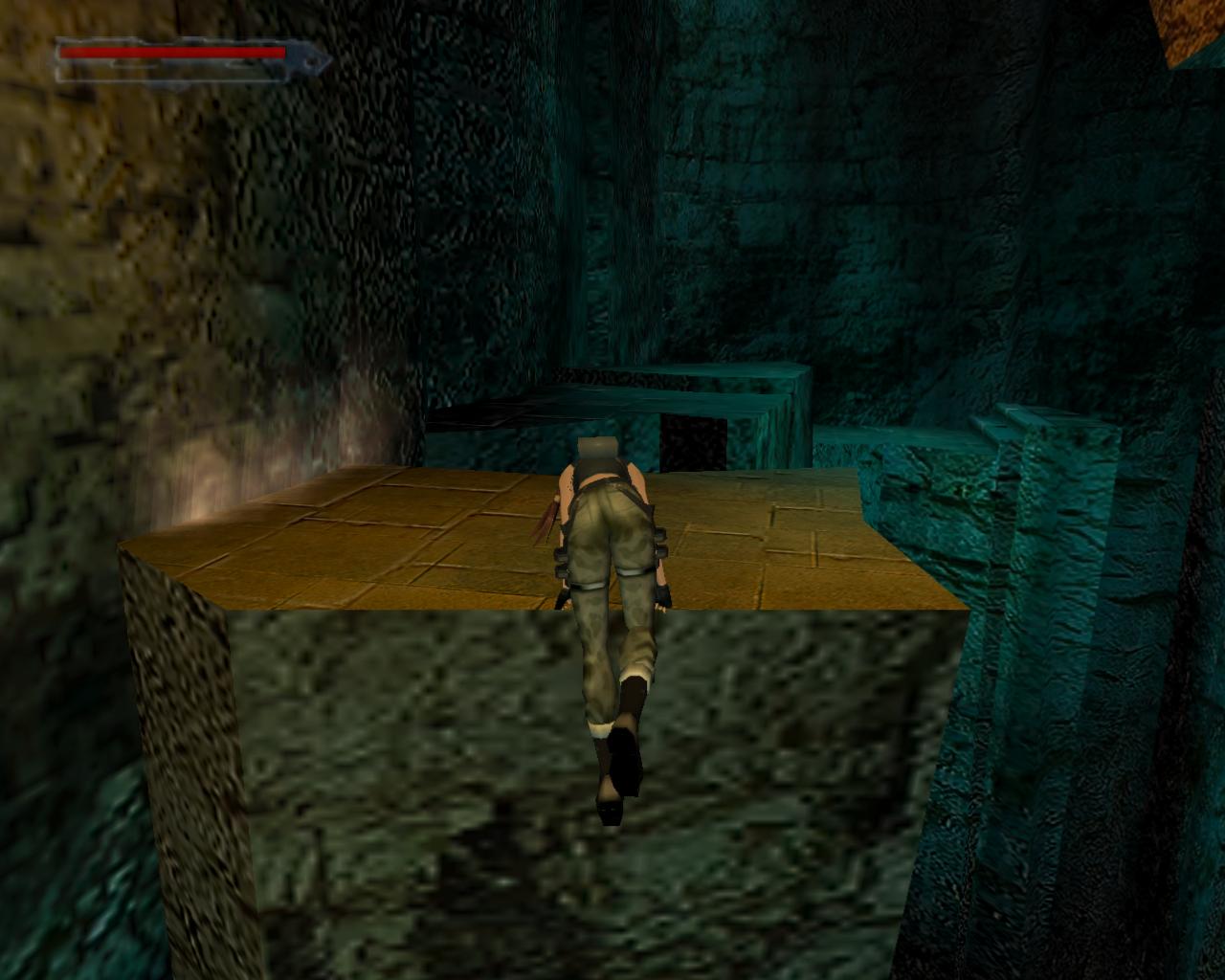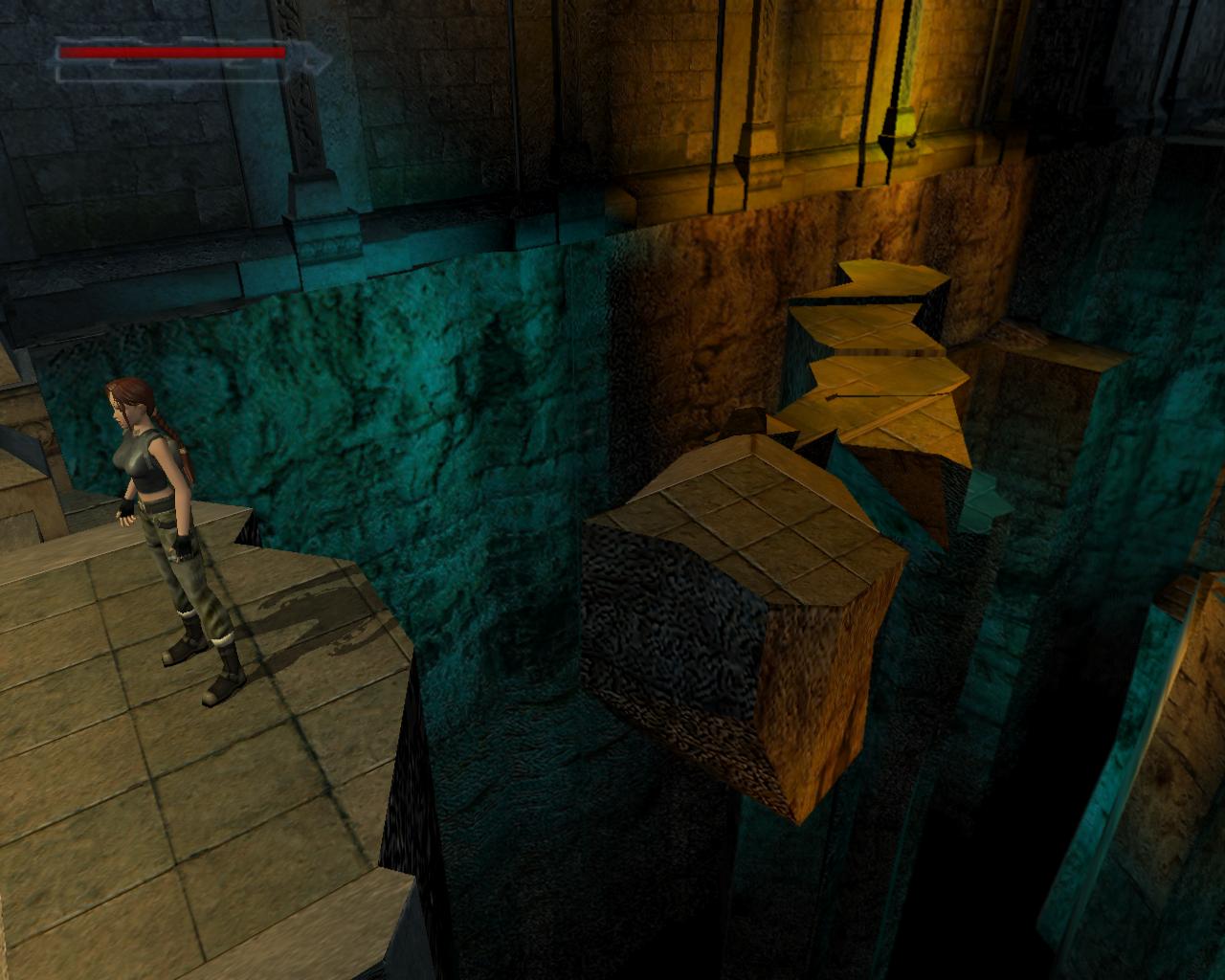 Menj vissza a lépcsohöz. Néhány lebego platform jelenik meg. A lépcso aljáról szökkenj át a szemközti padlólapra. Fordulj jobbra és ugorj át a közelebbi lebego platformra, majd kapaszkodj fel a következo ketto valamelyikére. Fordulj balra, sétálj a peremhez és ugorj át az újonnan megjelent padlólapokra. Menj a keskeny padló túlsó végéhez és most balra ugorj le az alacsonyabban lévo platformra. Újabb lebego platformok jelennek meg. Sétálj végig rajtuk, és jobbra kanyarodj a végén. Mialatt elgondolkozol, hogy most merre tovább, és újabb perem tunik elo. Ugorj hát fel rá. Jobbra van mégegy perem a terem szélénél, ahová át tudsz ugrani. Innen szökkenj le balra, fordulj jobbra, és ugorj át a biztonságosabb részre. Az üregeket kerülgetve juss vissza a kapuhoz és távozz a Tuz szentélyébol.