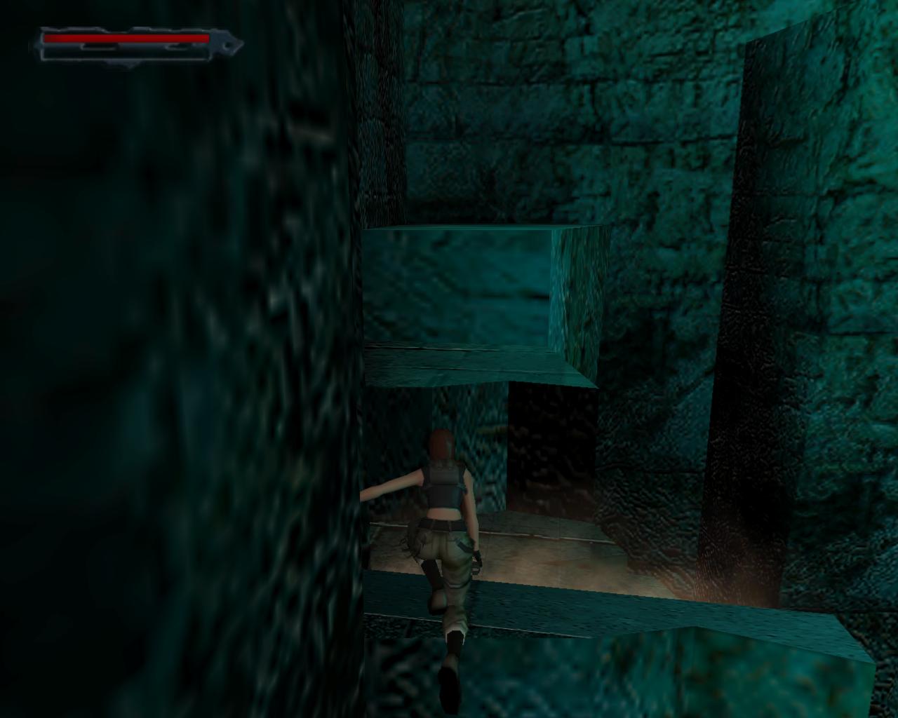 A folyosón indulj el az ajtó felé. Hirtelen víz zúdul be, és teljesen megtölti a folyosót. Ússz az ajtóhoz, és fel a résen az ismeros folyosóra, ahol annak idején a kötszereket vettük fel. Ússz ki a hídhoz, majd fel levegoért. Ha egyenesen úsztál fel, akkor szemben láthatsz egy takart kis peremet (a víz alól nézve ennek egyenes a pereme), amin kötszerek vannak. Úgy is idetalálhatsz, ha a falat követed körben, valamelyik irányba. Mássz ki oda, vedd fel oket, és ugorj vissza a vízbe. A kis perem alatt lefelé úszva rátalálsz a barlang nyílására, ahol még száraz lábbal jártál. Ússz be, el a gerenda mellett. Jobbra is van egy járat, de nem kell beúsznod oda, csak ha levegore van szükséged. Ússz fel egyenesen a fénybe...