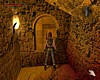 Menj a kis folyosóra a képekkel és foglalatokkal, amin keresztül eloször léptél be a nagy csarnokba. Helyezd el a megszerzett kristályokat a megfelelo helyükre. Minden egyes kristály egy pántot húz vissza a csapdákkal teli alagsorban lévo zárt ajtóról. Miután mindegyiket sikerült eltávolítanod, el is kellene jutnod hozzá. A Tuz Szentélyéhez vezeto három ajtó közül válassz ki egy kart, ami lejuttat az alagsorba. Csússz le a lejton, és a szaladj ki a kis folyosóból a nagy körfolyosóra. Indulj balra, ugord át a két lávás vermet, és balra meg is pillanthatsz egy táblát a falon. Közelebb érve a vele szemben lévo ajtót is láthatod. Nyiss be és szaladj le a csigalépcson, át a kapun. Itt egy kart találsz, ami kinyitja a melletted lévo kaput. A mögötte található lépcso egy nagy terembe vezet.