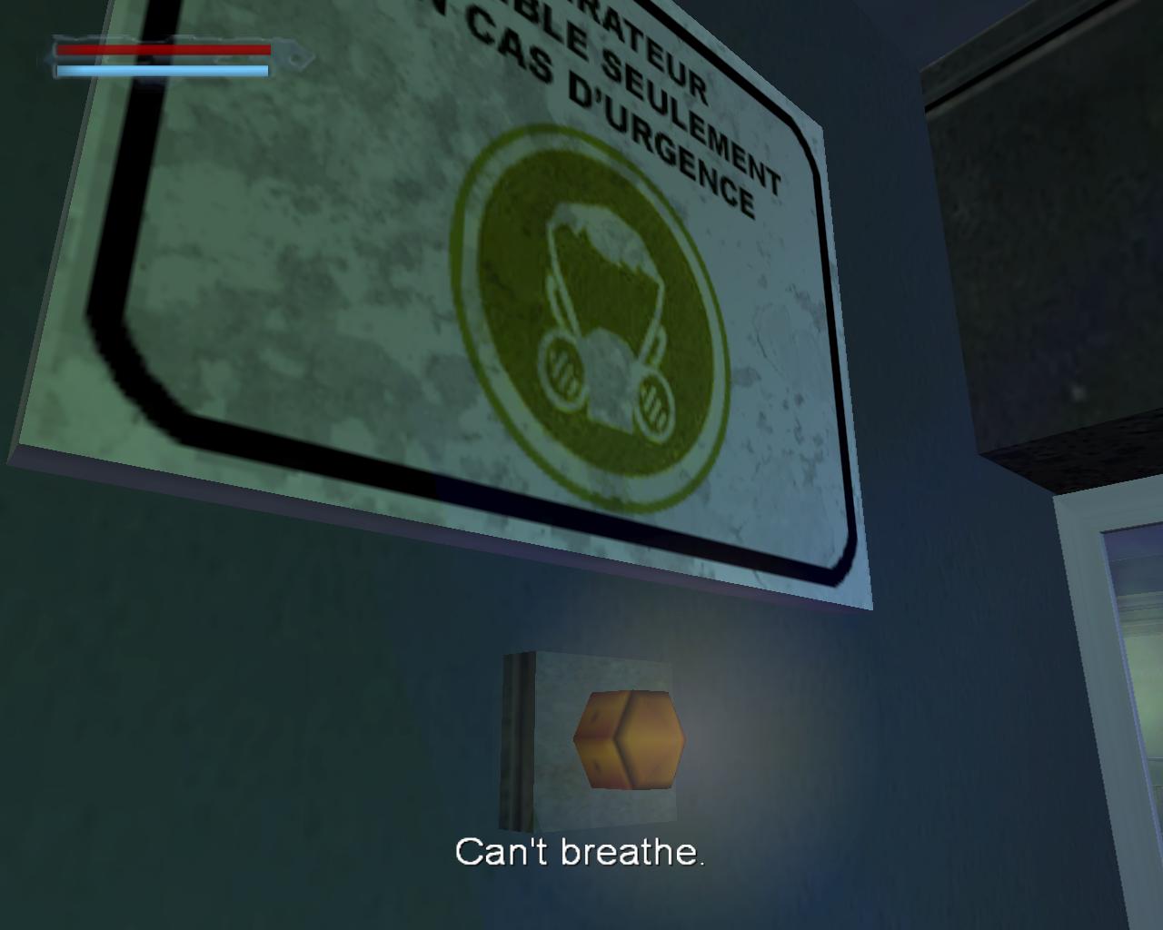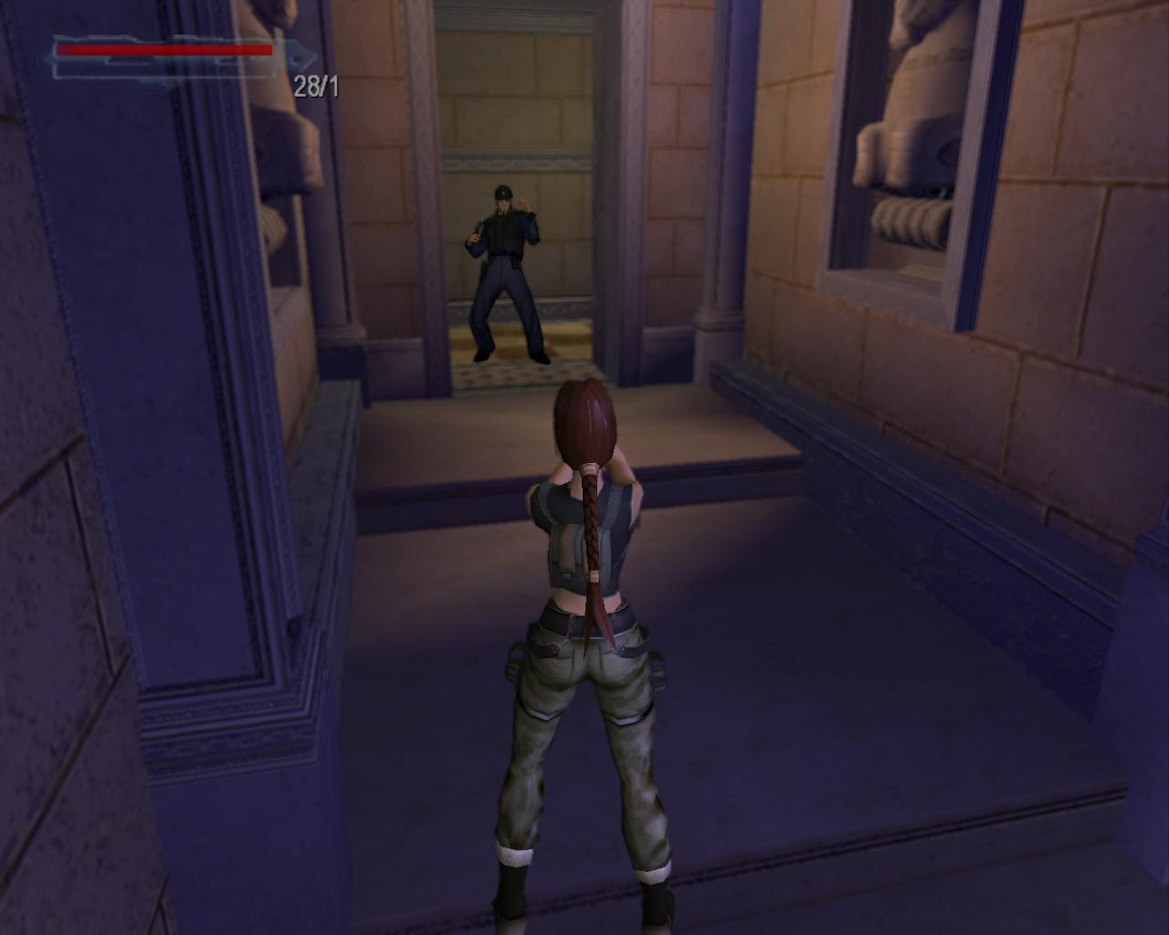 Lépj be a terembe, és a különleges egység egy tagja fog leesni. Sokkold le. Menj jobbra, és ki az ajtón. Légy óvatos a következo orrel. Sokkold le. Menj le a lépcson, és sokkold a következo srácot. Menj le a lépcsosorok valamelyikén. Menj jobbra, a folyosó végéhez. Van itt egy ajtó. Lépj be rajt. Ha levegore van szükséged, menj végig a jobboldali folyosón. A végén van egy mosdó. A levegod fel fog frissülni. Menj ki a folyosóra, és menj egyenesen. Ne felejtsd el a Sprint-gombot használni a gyors futáshoz.