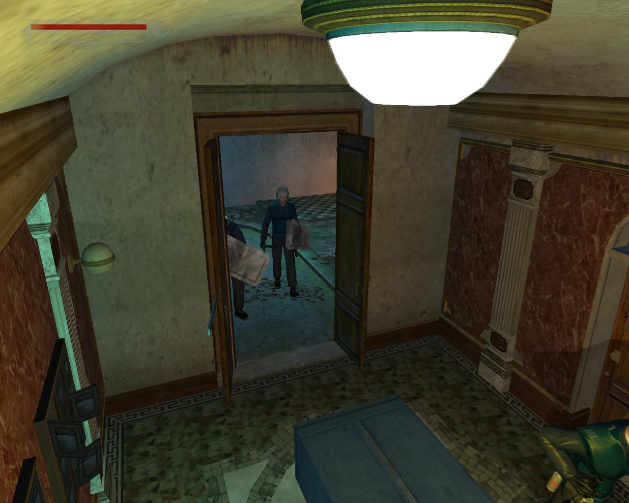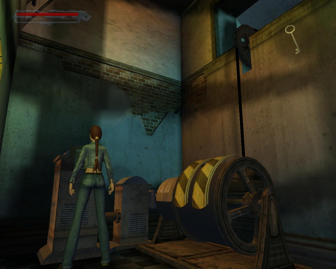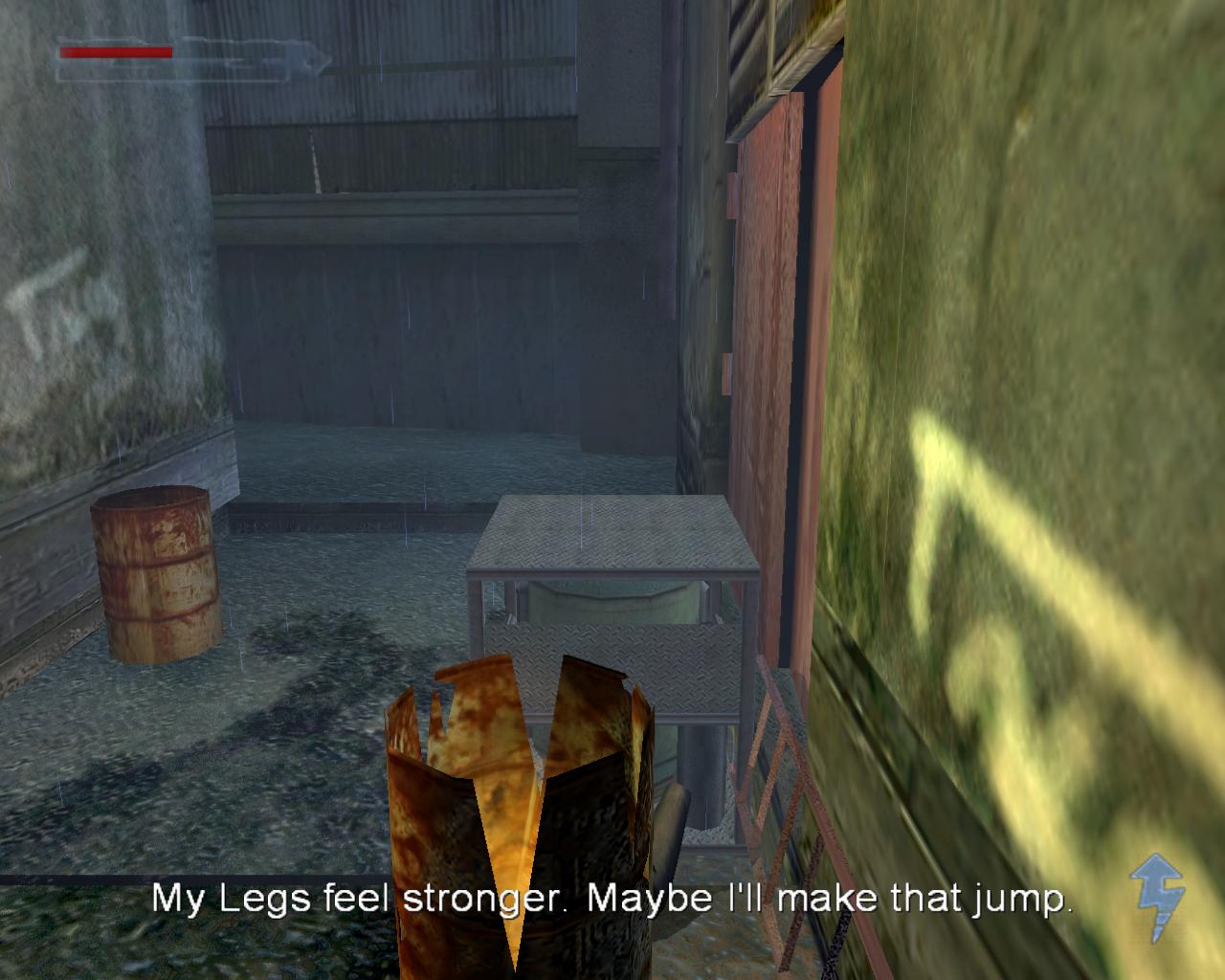 Ebben az esetben vissza kell menned, és az ajtó betörésével már elég eros leszel a feladat végrehajtásához. Miután a dobozt egészen a lépcso pereméig elhúztad, mássz fel rá, úgy, hogy a felvonó a bal oldaladon legyen, s szemben állj a kötszeres folyosóval. Ugorj elore, és kapaszkodj meg a korlátban. Húzd fel magad és ugorj át felette. A balra szemben lévo beugróban van egy ajtó, de zárva van. Jobbra van egy ajtó, amit ki tudsz nyitni. Belépve szemben látsz egy ajtót, ami még zárva van.