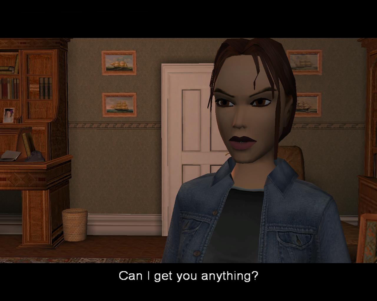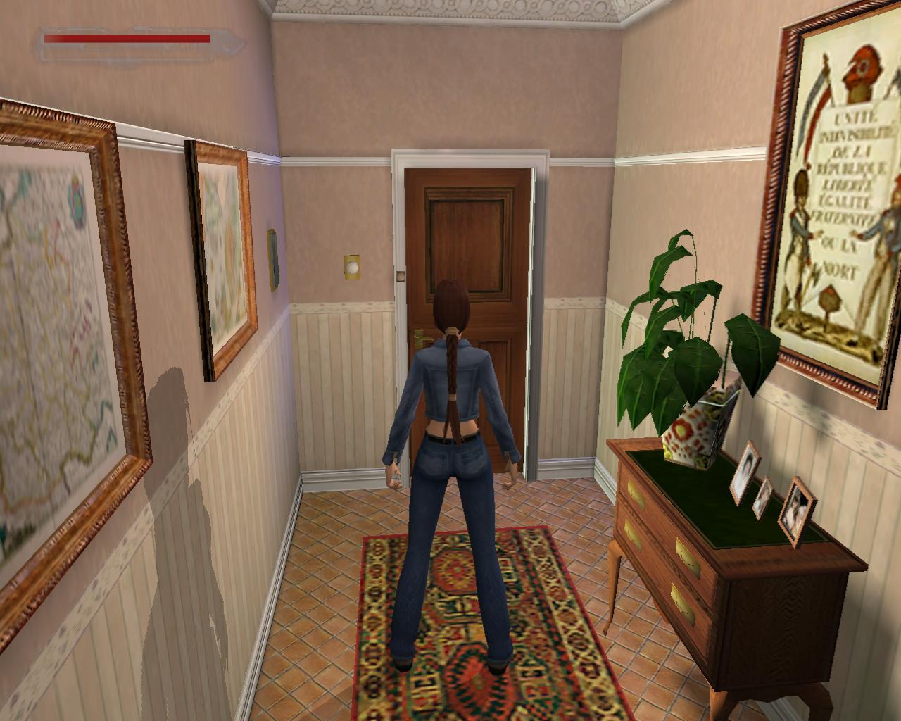 Fordulj jobbra. A kandalló jobb oldalán lévo bejárat az eloszobába vezet. Az eloszoba végén egy ajtó van. Menj oda és nyisd ki. (Ha nem voltál elég gyors, akkor a rendorök betörik az ajtót, és megadásra kényszerítik Larát, a játék véget ér.)