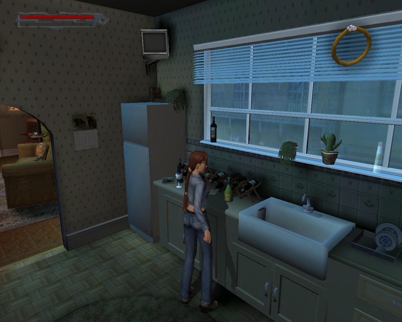 A nappali közepén állsz. Sietned kell, mert mint azt Carvier is mondta, a rendorség bármelyik pillanatban itt lehet. Fordulj jobbra. A konyhabejárattól balra van egy kis asztal. Találsz rajta egy gyurut. Vedd el. Fordulj jobbra és lépj be a konyhába. Nagyjából ebben az idoben egy rendorkocsi áll meg a ház elott. Ha még nincs meg a jegyzetfüzet, akkor vedd elo a jobbszélso konyhaszekrény fiókjából. Ha nem így teszel és megpróbálsz kimenni az eloszobából nyíló ajtón, akkor Lara figyelmeztet: