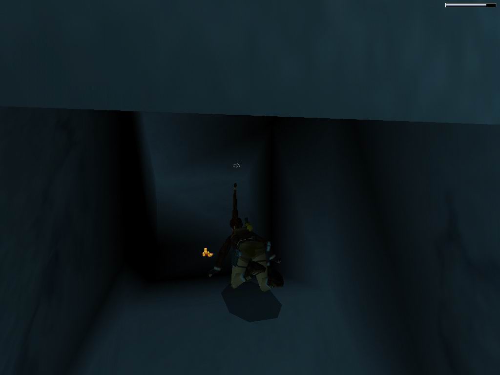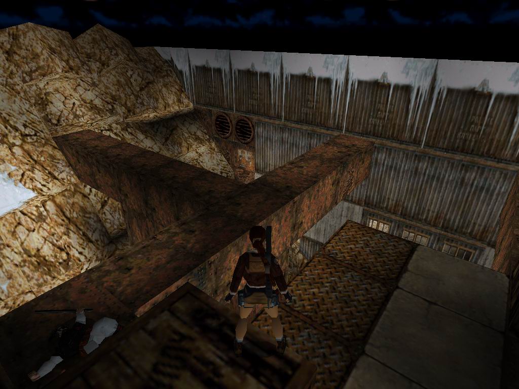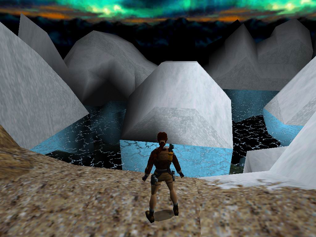 Menjünk oda, ahol a kötélpálya véget ér. Ugorjunk félre a hógolyó elõl, menjünk le és a miénk a géppuska. Menjünk vissza a szakadékhoz, lemenve az aljára, és befutva a folyosóra megleljük a második titkos helyet. Másszunk vissza, ahol a meghalt párduc fekszik, menjünk addig, amíg leesünk, és balra a rácsos terembe ránk támad a hóruhás õr. Végezzünk vele, vegyük fel a kulcsot, húzzuk meg a kart, mire a mellettünk lévõ ajtó kinyílik. Menjünk vissza a jégvirágos ablakokhoz, lõjük ki, használjuk a kulcsot a zárban, lõjük le az õrt. Ne menjünk még be, hanem forduljunk balra, fussunk a tolható dobozhoz. Toljuk be, menjünk be az emelkedõs részhez, kapaszkodjunk fel a fal oldalára, majd egyik oldalról a másikra ugorva haladjuk át a túloldalra. Jutalmunk az automata pisztoly. Menjünk az általunk megnyitott ajtóhoz, hátul találunk lõszert. Csússzunk le, lõjük le az õrt, és a párducot, húzzuk meg a kart, ami a szemközti ajtót nyitja ki. A középsõ platform bal oldalán lejuthatunk, ahol tárgyakat találunk. Szálljunk fel a motoros szánra, irányozzuk be magunkat és ugrassunk át a túloldalra. Végezzünk az õrrel, és a sassal. Továbbmenve kiérünk egy nyílt térre, ahol is egy motoros szános muksó vadászik ránk. Tegyük el láb alól, vegyük fel a cuccokat, és menjünk tovább a szánunkkal. Az alagútban is vár ránk egy õr, õt se kíméljük. Szánunkkal ugrassunk át a jeges falon, menjünk a leghátsó falig, és küzdjünk meg a motoros õrrel. Legyõzése után menjünk egyet vissza, és fel a szürke falon. Balra találunk egy kart. Amit húzzunk le, erre egy jó nagy hógörgeteg zúdul alá, ill. kinyílik az ajtó, amin a kijövõ õrt lõjük le. Bemenve az ajtón találhatunk egy másik kart, ami egy kaput nyit ki. Ugorjunk a vízbe, és ússzunk le a meder aljára, majd tovább. Kijutunk egy nagy jeges területre. Balra jussunk fel ameddig tudunk, itt egy jeges pallós rész találunk, amin csak egyszer tudunk végigfutni. Célunk a bal oldali oszlopra jutás. Odaérve felvehetünk egy teljes eü. csomagot, aminek hatására a lehulló hógolyók beszakítják a padlót, és jégemberkék szabadulnak el. Ugorjunk át a jobboldali hótömbre, és menjünk oda, ahol beúsztunk. Láthatjuk, hogy teljesen megfagyott a felülete, így feljuthatunk a cuccokért a szemközti falra. Csússzunk le teljesen, és kövessük a jegeseket, mígnem elvezetnek a középen jéggel körülvett harmadik titkos helyre. Láthatunk a leérkezési helyünknél, egy jeges ablakot, amit kilõve, és bemenve feljuthatunk a jeges falon. Közben ne feledkezzünk meg a párducról sem. Felérve menjünk be a közben megnyíló bejáraton, és tegyük el láb alól a fegyvereseket. Jobbra a sarokban húzzuk meg a kart, és lõjük le a benti õrt. Álljunk a szemközti kapu bal oldalára, töltsük fel magunkat 100%-ra, futás közben ugorjunk a csúszós rész felé, kapaszkodjunk meg, leesve lõszert, eü. csomagot, és az Uzi-t találjuk. Másszunk ki a jégfal segítségével. Menjünk vissza, ahonnan kiugortunk. Szálljunk fel szánunkra, és menjünk végig az úton, közben kerüljük ki a köveket, és üssük el az õröket. Az utolsó õrnél találjuk a Shaft "B" Kulcsot, amit a közeli zárnál használhatunk is. Tegyük ezt, lõjük le a párducot, és húzzuk le a kart, aminek a hatására kinyílik a zárt ajtó, bent lõjük le az õrt, és vegyük fel a tárgyakat. Végezzünk a ránk törõ õrökre. Az oszlopokkal körülzárt területen tudjuk, a csapóajtót kinyitni. Essünk le, úszkáljunk egy kicsit, és vége az elsõ pályának.