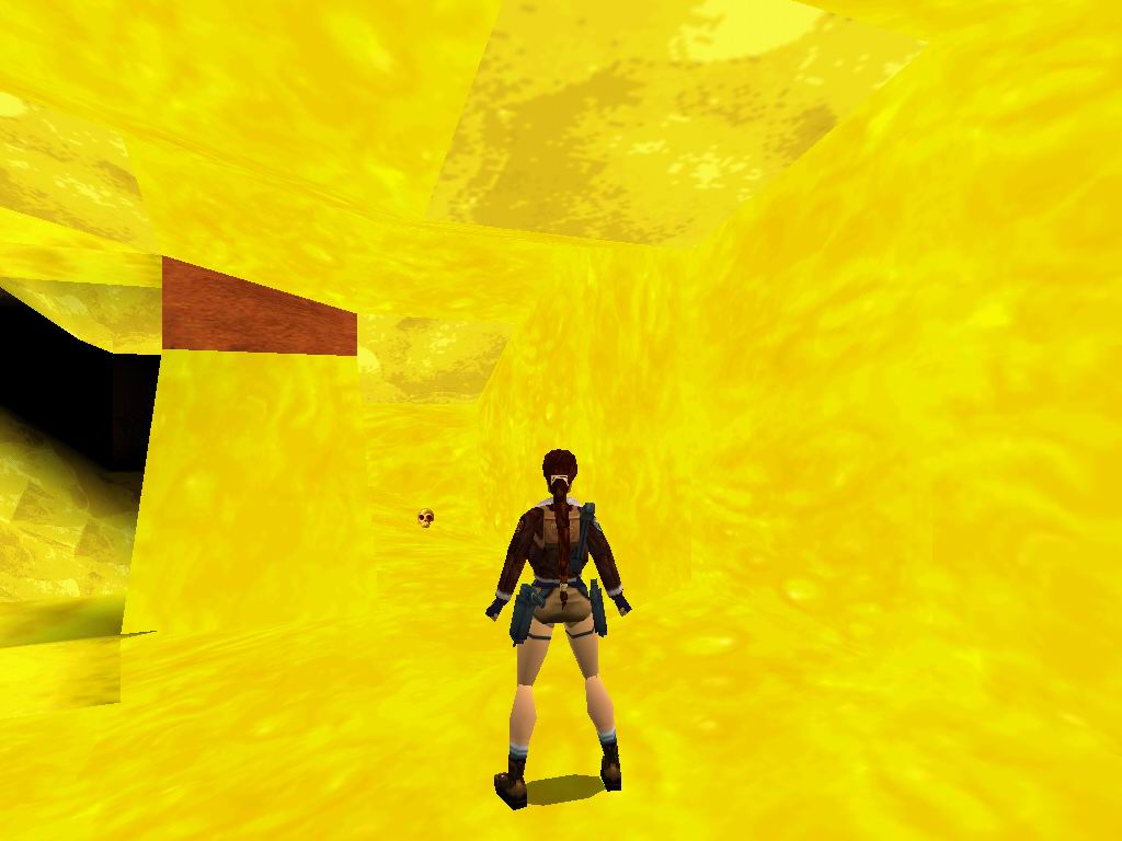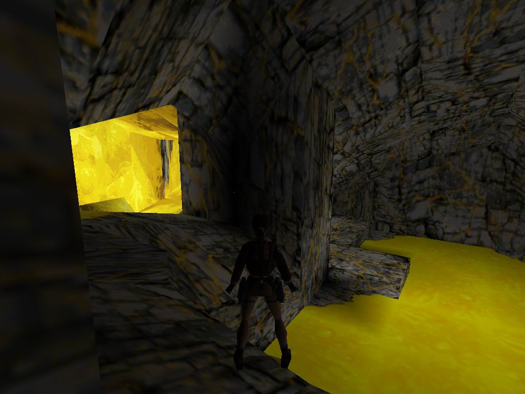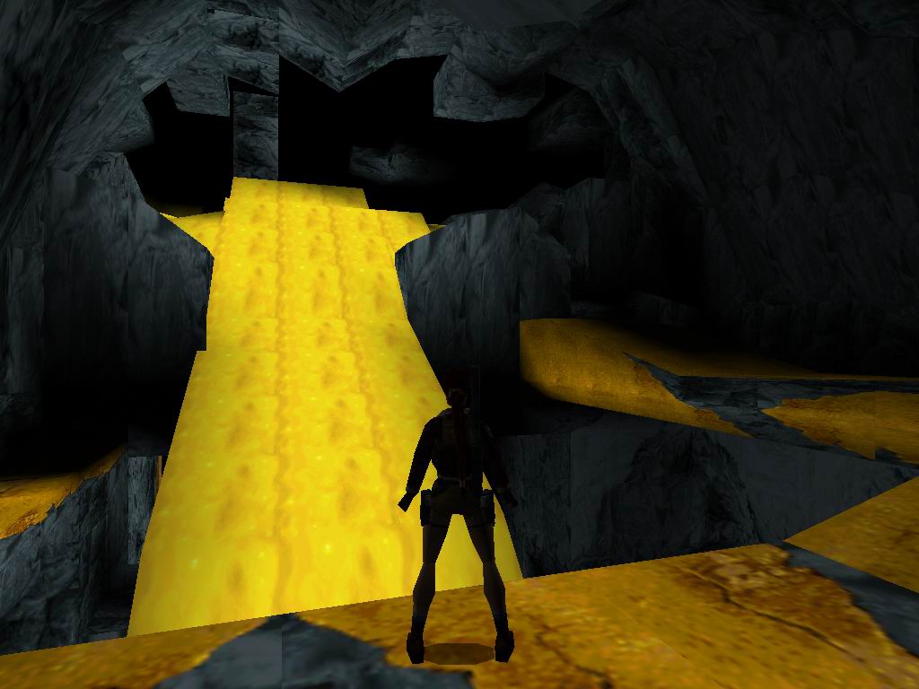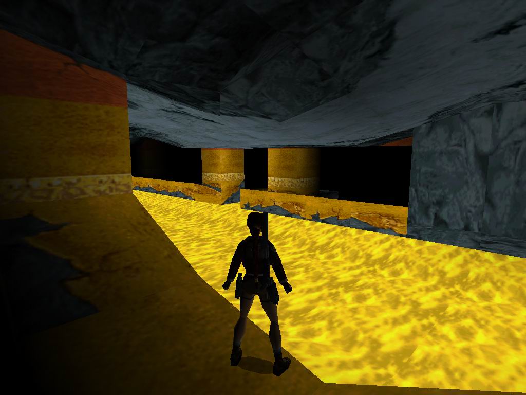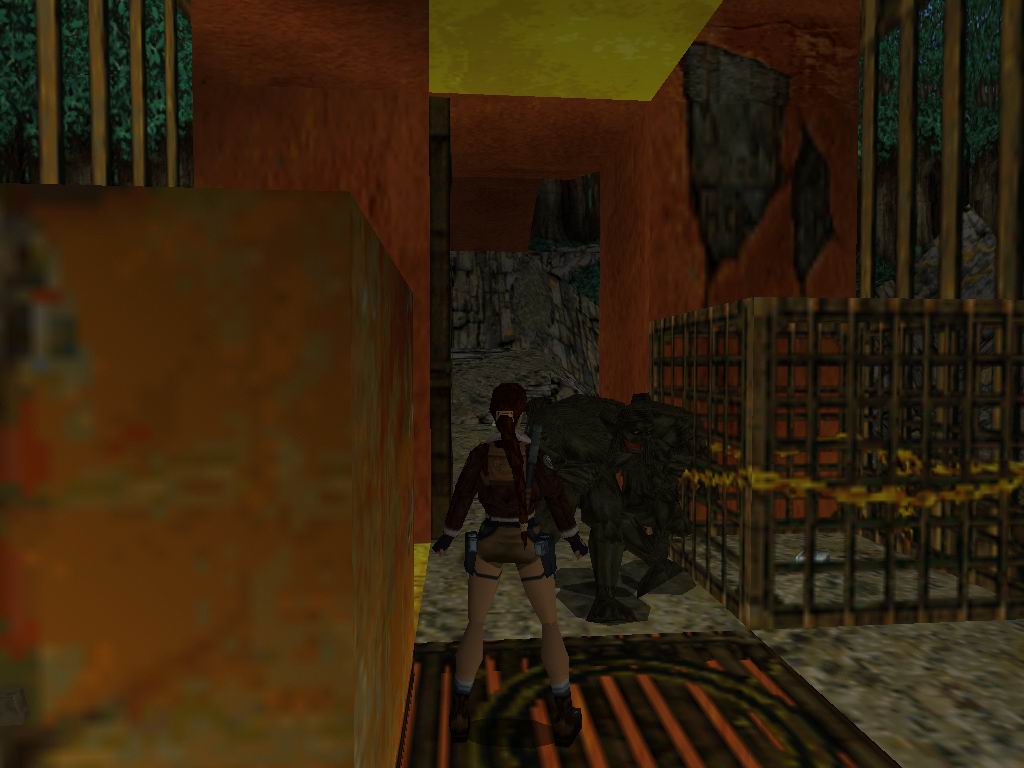 Láthatjuk, amin bõsz Jetik vetik ránk magukat, akiket a megérdemelt módon jutalmazzunk. Toljuk el a rácsos dobozt a sárga kockára, mire lenyílik a csapóajtó. Ne menjünk még ki, hanem derítsük fel a környezetünket. Vegyük fel a cuccokat, és tegyünk a Jetik kedve ellenére. Most már lemászhatunk a létrán. Lent vegyük az irányt jobbra kétszer, ugorjunk a vízbe, másszunk ki, és másszunk oda, ahova leérkeztünk, csak éppen egy ráccsal beljebb. Itt lõszereket találunk, másszunk ki jobbra, csússzunk le, és ugyanoda kijutunk, ahová leérkeztünk. Menjünk a jobb oldali falhoz, ugorjunk át középre, ha megfordulunk lõszert, zsákmányolhatunk, ugorjunk a csúszós részre, onnan tovább a lapos aranyra. Kiérve lõszert találunk, és egy éhes Jetit, akit ólommal etessünk meg. Essünk egy szinttel lejjebb. A következõ résznél az a lényeg, hogy kijussunk a rács fogságából. Ha megvan a folyosón elõször balra, menjünk, fel a létrán és kis bolyongás után még egy szinttel feljebb megtaláljuk az elsõ titkos helyet. Alattunk kinyílik a rámpa és visszaesünk a kapcsolókhoz, de sebaj már kinyitottuk az úton. Vissza a folyosóra, ott jobbra fel a folyosón. Menjünk ki a fák közé. Lõjük a Jetiket. Ha megvagyunk, álljunk rá a függõhidra, srégen szembe a jobboldali lecsúszós részhez. Ugorjunk rá, majd onnan tovább. Vegyük fel a cuccokat, ugorjunk tovább a lecsúszható részhez, majd kapaszkodva araszoljunk át balra. Menjünk, fel ugorjunk át a függõhidra, menjünk végig, onnan ugorjunk a második titkos helyre. Jussunk teljesen vissza az elsõ függõhídig. Menjünk addig, amíg meg nem látunk az ellenséget balra, lõjük le, majd menjünk oda, ahol volt. Szedjük fel a tárgyakat, majd ugorjunk vissza, menjünk be a rácsos terembe, szedjük össze a lõszert, húzzuk meg mind a három kart, mire a lenti téren jó kis csihi puhi kezdõdik. Lõjük le a gyõzteseket, majd vegyük fel középrõl az eü. csomagot. Erre egy megtermett Jeti ront ránk, tegyük el láb alól. Menjünk arra, amerrõl a jeti jött, közben szedjük fel a lõszereket. Menjünk ki a fákhoz, és szedjük fel az utunkba esõ tárgyakat. Szembe a függõhídról felkapaszkodva, és a létrán feljuthatunk teljesen a fák tetejéig, lõjük le a Jetiket. Másszunk vissza, és háttal csúszunk le az aranyszínû csúszdán. Vegyük fel a lõszert, ugorjunk szembe tovább. Az elsõ lecsapódó rámpán essünk le, menjünk fel tejesen a létráig, ott fel, majd egy hátraszaltóval, biztonságos terepre jutunk. Kapaszkodjunk fel, láthatunk egy arany ajtót szembe, ill. négy arany folyamot. Az arany leejtõkön biztonságos helyeket lelünk, amirõl tovább tudunk ugrani. Jussunk el az arany ajtóhoz. Szemben állva vele, a baloldalon csússzunk le, majd ugorjunk az arany fal felé. Ha mindent jól csináltunk, akkor kirobban a fal, és bejutunk mögé. Ott fáklyát, kis eü. csomagot, és párducot találunk. Álljunk úgy, hogy a kirobban ajtó a bal oldalunkon, legyen, és ugorjunk át szembe, forduljunk meg, és egy hosszú ugrással miénk a harmadik titkos hely. Jussunk vissza, ahol a fáklyát találtuk, onnan tovább a szárazföld felé, fel a lépcsõn majd ki a megnyílt arany ajtón. Csússzunk le, a túloldalon másszunk legfelülre, és a jobb oldali beugróban elhagyhatjuk a termet. Visszacsúszunk oda, ahova már egyszer megérkeztünk, ugorjunk át szembe. Menjünk "Mindig a sárga úton", a lombok között Jetiket, és lõszert találunk. Másszunk fel a létrán, kijutunk egy nyílt térre, ahol párducvadászatot tartunk. Másszunk fel a létrán, tegyük be a maszkot, ránkront egy sasfejû szörnyeteg, menjünk oda, ahonnan kijött és húzzuk meg a kart, mire kinyílik a kettõs kapu, fussunk oda, át az aranyhídon, húzzuk meg a kart, mire összezárul a híd, és a lény leesik. Fentrõl szórjuk, meg ólommal, míg meg nem döglend nagy kegyelmünkben. És végetért a játék mindazok számára, akik nem találták meg az összes titkot. Ha teljesen 100%-osak voltunk, akkor miután visszakaptuk a fõképernyõt, a játék indításánál, kapunk egy új képernyõt, ahol kiválaszthatjuk a nekünk tetszõ pályát. Természetesen minket ezek után már csak a legalsó pálya érdekel.