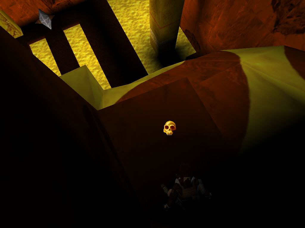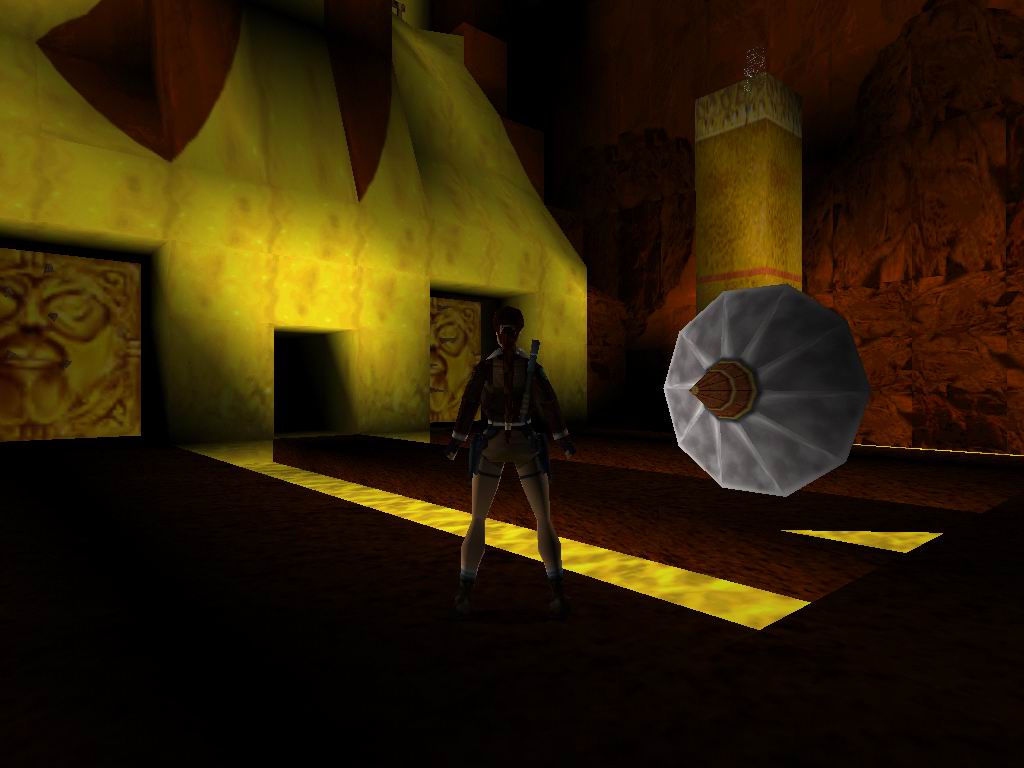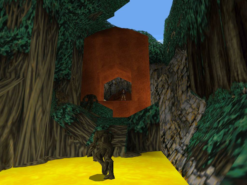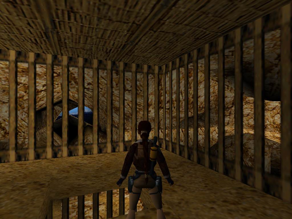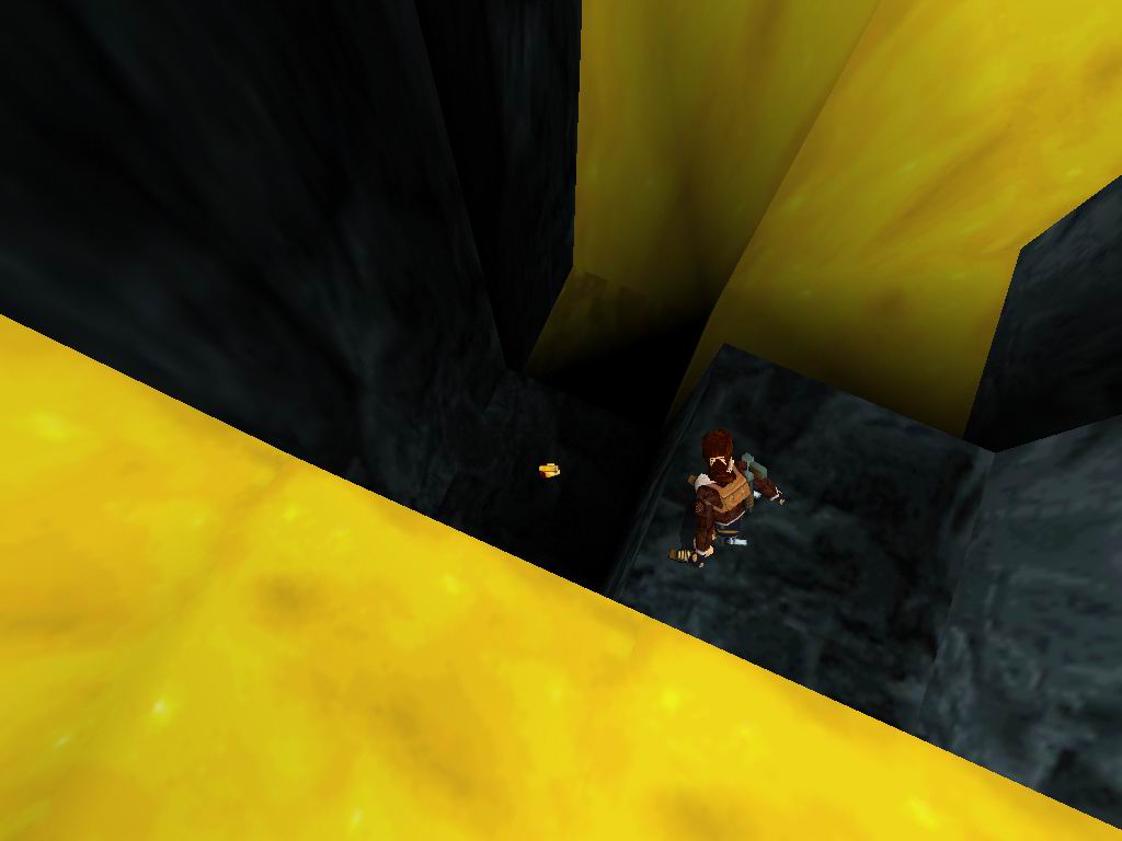 Láthatjuk, amin bõsz Jetik vetik ránk magukat, akiket a megérdemelt módon jutalmazzunk. Toljuk el a rácsos dobozt a sárga kockára, mire lenyílik a csapóajtó. Ne menjünk még ki, hanem derítsük fel a környezetünket. Vegyük fel a cuccokat, és tegyünk a Jetik kedve ellenére. Most már lemászhatunk a létrán. Lent vegyük az irányt jobbra kétszer, ugorjunk a vízbe, másszunk ki, és másszunk oda, ahova leérkeztünk, csak éppen egy ráccsal beljebb. Itt lõszereket találunk, másszunk ki jobbra, csússzunk le, és ugyanoda kijutunk, ahová leérkeztünk. Menjünk a jobb oldali falhoz, ugorjunk át középre, ha megfordulunk lõszert, zsákmányolhatunk, ugorjunk a csúszós részre, onnan tovább a lapos aranyra. Kiérve lõszert találunk, és egy éhes Jetit, akit ólommal etessünk meg. Essünk egy szinttel lejjebb. A következõ résznél az a lényeg, hogy kijussunk a rács fogságából. Ha megvan a folyosón elõször balra, menjünk, fel a létrán és kis bolyongás után még egy szinttel feljebb megtaláljuk az elsõ titkos helyet. Alattunk kinyílik a rámpa és visszaesünk a kapcsolókhoz, de sebaj már kinyitottuk az úton. Vissza a folyosóra, ott jobbra fel a folyosón. Menjünk ki a fák közé. Lõjük a Jetiket. Ha megvagyunk, álljunk rá a függõhidra, srégen szembe a jobboldali lecsúszós részhez. Ugorjunk rá, majd onnan tovább. Vegyük fel a cuccokat, ugorjunk tovább a lecsúszható részhez, majd kapaszkodva araszoljunk át balra. Menjünk, fel ugorjunk át a függõhidra, menjünk végig, onnan ugorjunk a második titkos helyre. Jussunk teljesen vissza az elsõ függõhídig. Menjünk addig, amíg meg nem látunk az ellenséget balra, lõjük le, majd menjünk oda, ahol volt. Szedjük fel a tárgyakat, majd ugorjunk vissza, menjünk be a rácsos terembe, szedjük össze a lõszert, húzzuk meg mind a három kart, mire a lenti téren jó kis csihi puhi kezdõdik. Lõjük le a gyõzteseket, majd vegyük fel középrõl az eü. csomagot. Erre egy megtermett Jeti ront ránk, tegyük el láb alól. Menjünk arra, amerrõl a jeti jött, közben szedjük fel a lõszereket. Menjünk ki a fákhoz, és szedjük fel az utunkba esõ tárgyakat. Szembe a függõhídról felkapaszkodva, és a létrán feljuthatunk teljesen a fák tetejéig, lõjük le a Jetiket. Másszunk vissza, és háttal csúszunk le az aranyszínû csúszdán. Vegyük fel a lõszert, ugorjunk szembe tovább. Az elsõ lecsapódó rámpán essünk le, menjünk fel tejesen a létráig, ott fel, majd egy hátraszaltóval, biztonságos terepre jutunk. Kapaszkodjunk fel, láthatunk egy arany ajtót szembe, ill. négy arany folyamot. Az arany leejtõkön biztonságos helyeket lelünk, amirõl tovább tudunk ugrani. Jussunk el az arany ajtóhoz. Szemben állva vele, a baloldalon csússzunk le, majd ugorjunk az arany fal felé. Ha mindent jól csináltunk, akkor kirobban a fal, és bejutunk mögé. Ott fáklyát, kis eü. csomagot, és párducot találunk. Álljunk úgy, hogy a kirobban ajtó a bal oldalunkon, legyen, és ugorjunk át szembe, forduljunk meg, és egy hosszú ugrással miénk a harmadik titkos hely. Jussunk vissza, ahol a fáklyát találtuk, onnan tovább a szárazföld felé, fel a lépcsõn majd ki a megnyílt arany ajtón. Csússzunk le, a túloldalon másszunk legfelülre, és a jobb oldali beugróban elhagyhatjuk a termet. Visszacsúszunk oda, ahova már egyszer megérkeztünk, ugorjunk át szembe. Menjünk "Mindig a sárga úton", a lombok között Jetiket, és lõszert találunk. Másszunk fel a létrán, kijutunk egy nyílt térre, ahol párducvadászatot tartunk. Másszunk fel a létrán, tegyük be a maszkot, ránkront egy sasfejû szörnyeteg, menjünk oda, ahonnan kijött és húzzuk meg a kart, mire kinyílik a kettõs kapu, fussunk oda, át az aranyhídon, húzzuk meg a kart, mire összezárul a híd, és a lény leesik. Fentrõl szórjuk, meg ólommal, míg meg nem döglend nagy kegyelmünkben. És végetért a játék mindazok számára, akik nem találták meg az összes titkot. Ha teljesen 100%-osak voltunk, akkor miután visszakaptuk a fõképernyõt, a játék indításánál, kapunk egy új képernyõt, ahol kiválaszthatjuk a nekünk tetszõ pályát. Természetesen minket ezek után már csak a legalsó pálya érdekel.