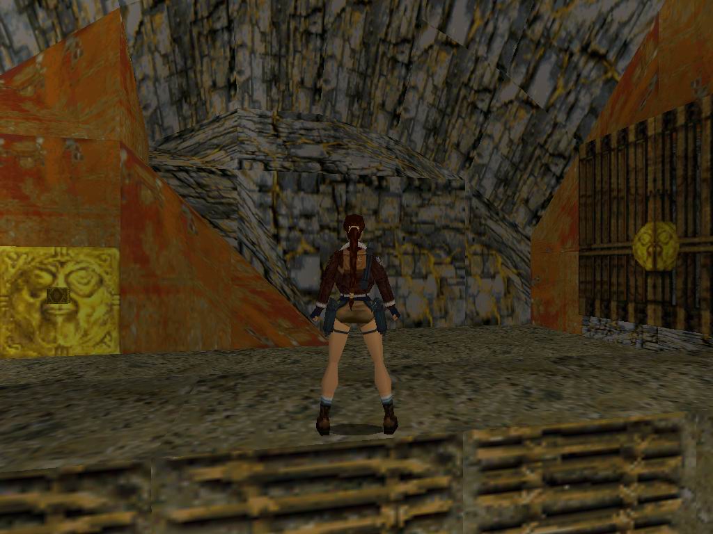 Lefelé csúszva ugorjunk elõre és kapaszkodjunk meg. Szedjük fel a lenti tárgyakat, majd a csúszós résznél, fussunk be balra, a tolható rácsot toljuk, be mielõtt felnyársal a felénk közeledõ fal. Miután elment, menjünk vissza és szedjük fel a lõszereket. Menjünk, ki végezzünk a farkasokkal, majd vegyük fel középen a Mask Of Tornarsuk-ot. Menjünk be a baloldalon kinyíló kapun. Essünk bele a vízbe, úszzuk át, menjünk ki belõle, és irtsuk ki a patkányokat. Vegyük fel az összes tárgyat, majd a középsõ rácsos dobozt húzzuk el, menjünk be, majd a folyosó végén fel a létrán. Toljuk be az utunkba álló követ, majd ugyanezt jobbra, így elõkerül alóla az elsõ titkos hely. Kerüljük meg az építményt, fussunk el a csontváz elõtt, majd miután kigurult a kõ menjünk be. Ugorjuk át a csapdákat, majd az oszlopnál húzzuk meg a kart. Így kinyílt a kettõs kapu. Szedjük fel a fenti tárgyakat, és menjünk le, majd át a kapun. Húzzuk meg a kart, és lõjük le a ránk támadó fegyvereseket. Baloldalon másszunk fel a kõre, majd onnan át a következõ terembe, célunk a fenti folyosóra felmászni. Ha megvan a kanyarba jobbra leesve, találjuk a gránátvetõt. Jussunk vissza, derítsük fel a sziklákat, tárgyakat takarnak el. Menjünk felfelé a köveken, egy idõ után láthatunk köveket középen az arany áradatban, beugorva oda a második tikok helyre lelünk. Ezek után jussunk ki a kövek közül, vigyázzunk az ingázó pengére ne érintsen meg. Vegyük fel a jobb oldali nagy eü. csomagot. Kiérve a nagy terembe, a jobb oldali köveken jussunk tovább. Lõjük ki a medvét, ugorjunk a vízbe, másszunk ki, szedjük fel a cuccokat, menjünk tovább. Ugorjunk a középsõ kõre, vegyük fel a lõszert, ugorjunk a sekély vízbe, adjunk a medvének, vegyük fel a lõszereket, majd vessük bele magunkat a vízbe. Szedjünk össze mindent, ami a víz alatt van. Kapaszkodjunk ki, itt is vegyünk mindent fel. Ugorjunk át a létrára, másszunk jobbra. Itt találhatunk egy kapcsolót, amit bekapcsolva két golyó kezd felénk gurulni. Másszunk le a megnyílt ajtón, szedjük fel a lõszereket, lõjünk le mindenkit, majd húzzuk le a kart, mire megnyílik egy eddig zárt kapu. Menjünk oda, ott is húzzuk le a kart, mire mindent elönt a víz, szedjünk fel minden tárgyat a víz alól, és lõjük le a barrakúdákat. Vegyük fel az arany tárgyat, és azt illesszük bele a kapunál lévõ foglalatba. Jussunk tovább itt három szilárd rész láthatunk, a középsõnél egy forgó penge ingázik, míg a másik kettõnél, ha elõször közel megyünk, elindul felénk. Ha kicsaltuk a két nagy falat, vegyük utunkat bal oldali felé, átugorva az arany folyamot tárgyra lelhetünk, a másiknál pedig feljutunk a terem legtetejére. Ha ott állunk, ugorjunk át és le, majd létrán másszunk le a harmadik tikos helyre. Másszunk vissza, ugorjuk át a jobb oldalra, csússzunk le, másszunk fel a létrán, és ugorjuk át az aranyat. Másszunk le a létrán, essünk le, és gyorsan futás közben jussunk át a túloldalra, az eü. csomagért. Most már nyugodt szívvel lecsúszhatunk az elkerített folyosóra, és középen essünk át a következõ pályára.