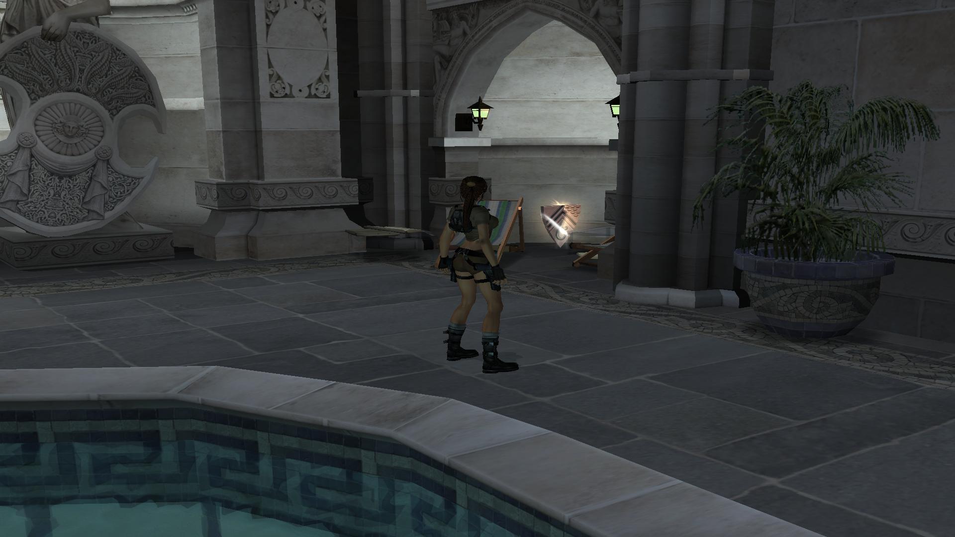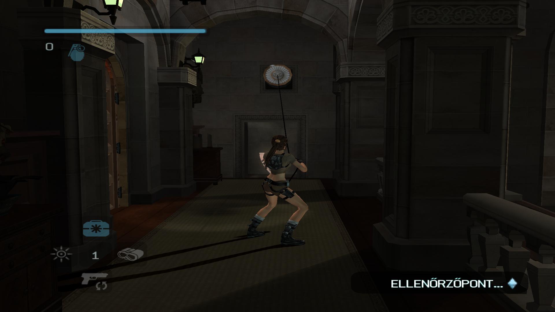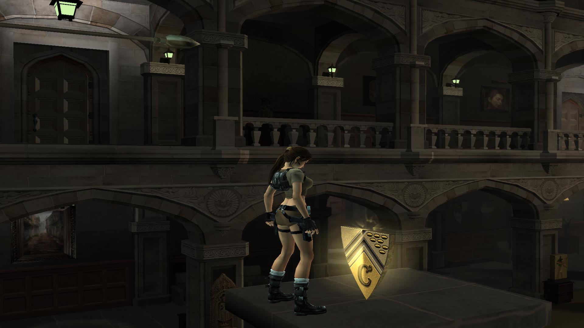 A másik szoborról rántsd le a golyót, és told rá a súlykapcsolóra. A csillár leereszkedett. Menj le a medencéhez, és mássz fel arra a halas szoborra, amit a medence széléhez toltál. Csáklyázd meg a csillárt, rántsd magadhoz, engedd el gyorsan, majd kapd is el. Mássz fel rá, és átjutsz a túloldali kis erkélyre, ahol meglelted az 5. Ezüst pajzsot.