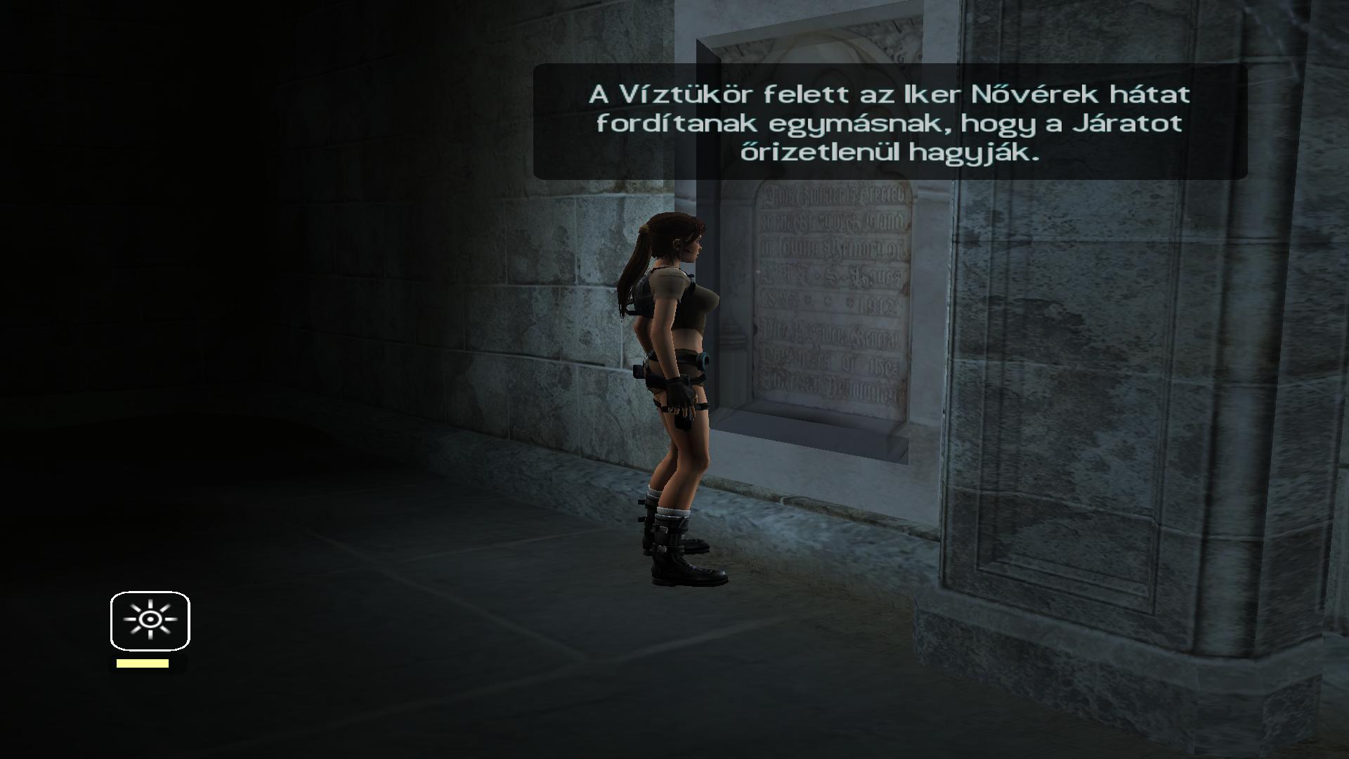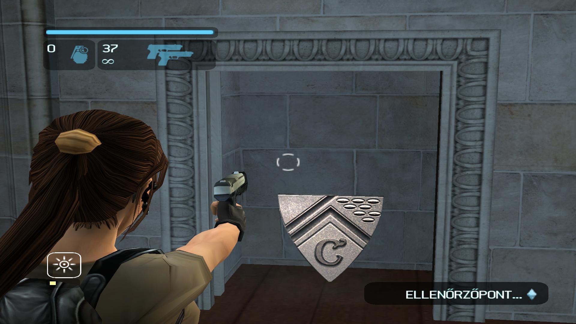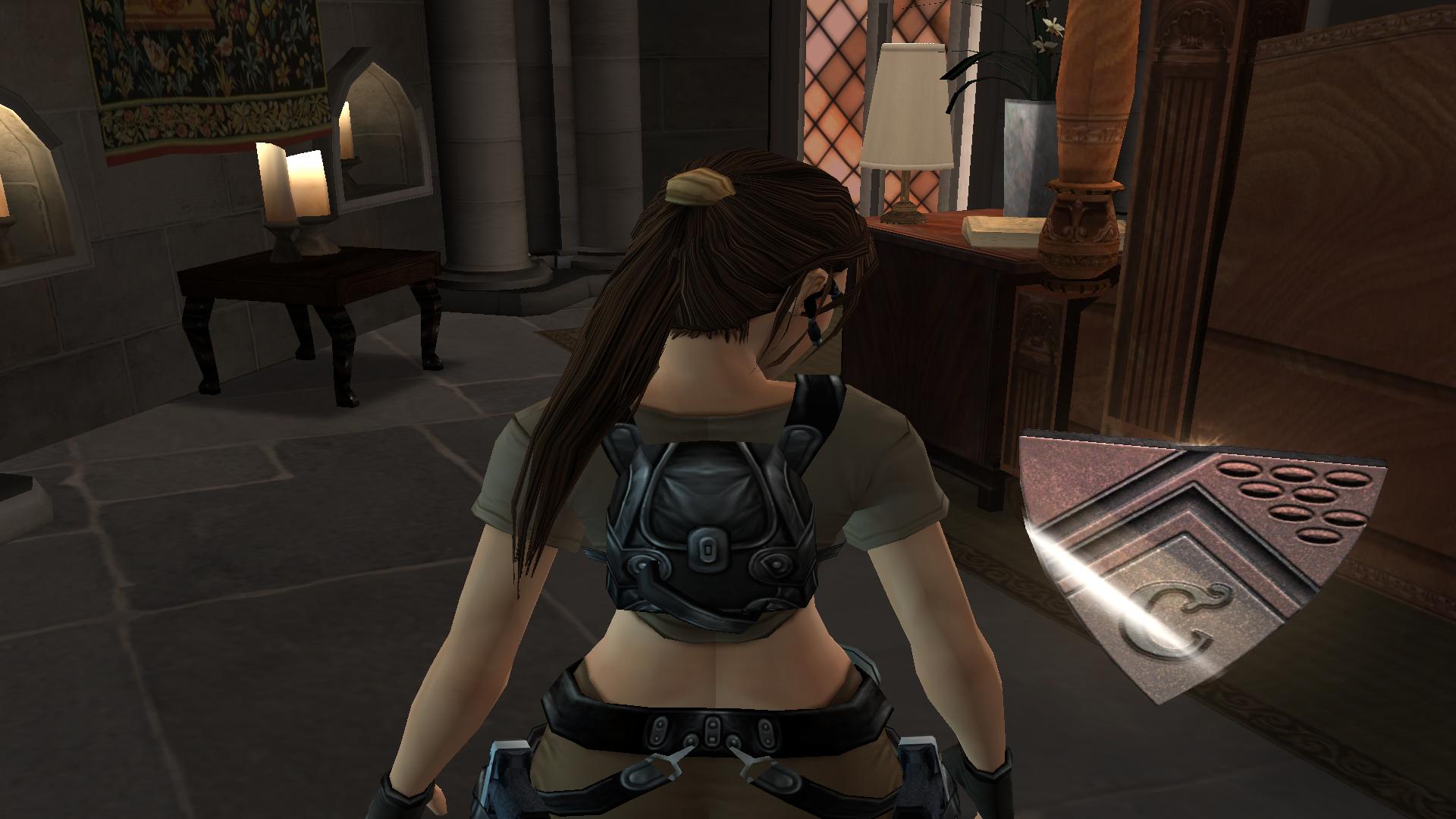 A másik szoborról rántsd le a golyót, és told rá a súlykapcsolóra. A csillár leereszkedett. Menj le a medencéhez, és mássz fel arra a halas szoborra, amit a medence széléhez toltál. Csáklyázd meg a csillárt, rántsd magadhoz, engedd el gyorsan, majd kapd is el. Mássz fel rá, és átjutsz a túloldali kis erkélyre, ahol meglelted az 5. Ezüst pajzsot.