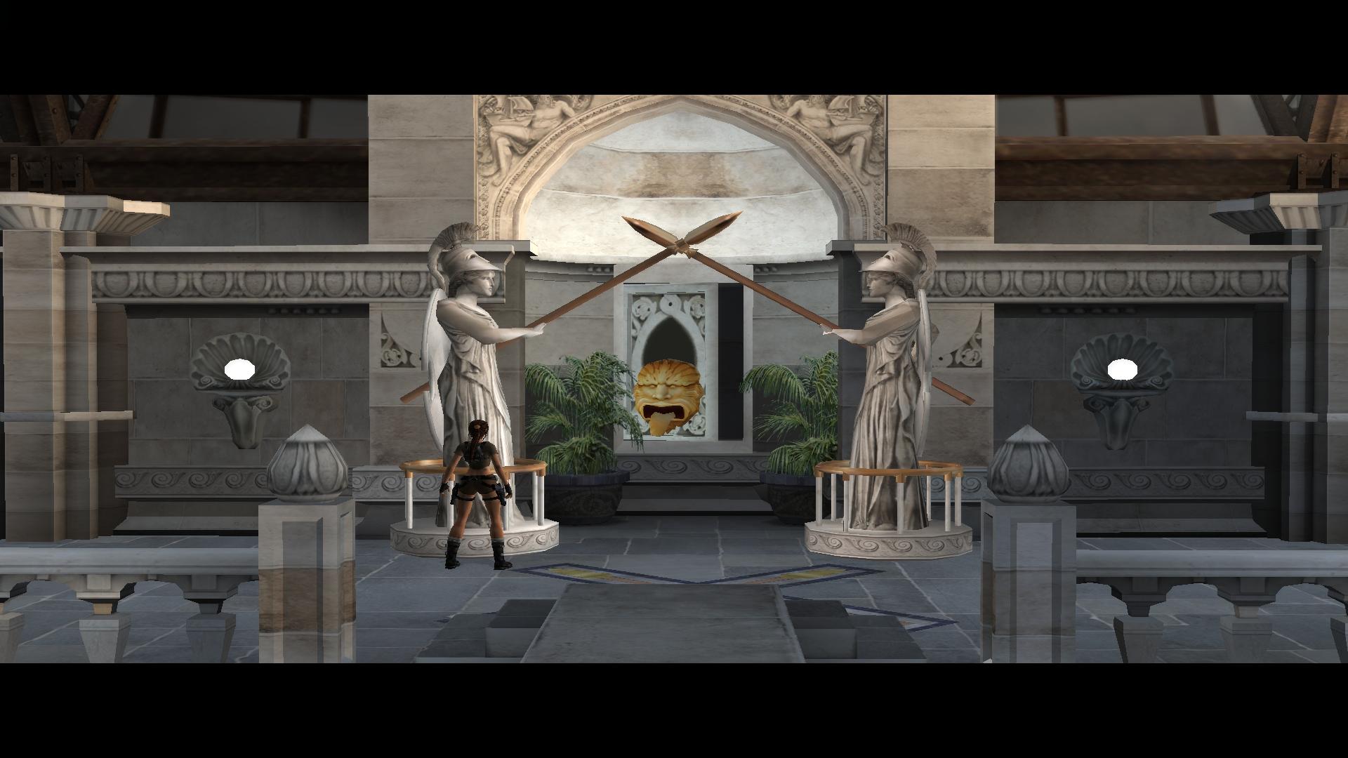 Forgasd el mindkét lándzsás szobrot befelé, és megjelenik egy újabb nyelves szobor. Meghúzva ennek is a nyelvét, lent a medencében kinyílik az egyik rács. Menj a karzat túloldalára, ugrás a rúdra, majd a csáklyával. Jól belengetve a kötelet, és amikor a legmagasabbra ér a lábad, akkor ugorj a másik rúdra, onnan pedig a másik karzatra. A ló szobornál vedd fel a Távcsövet.