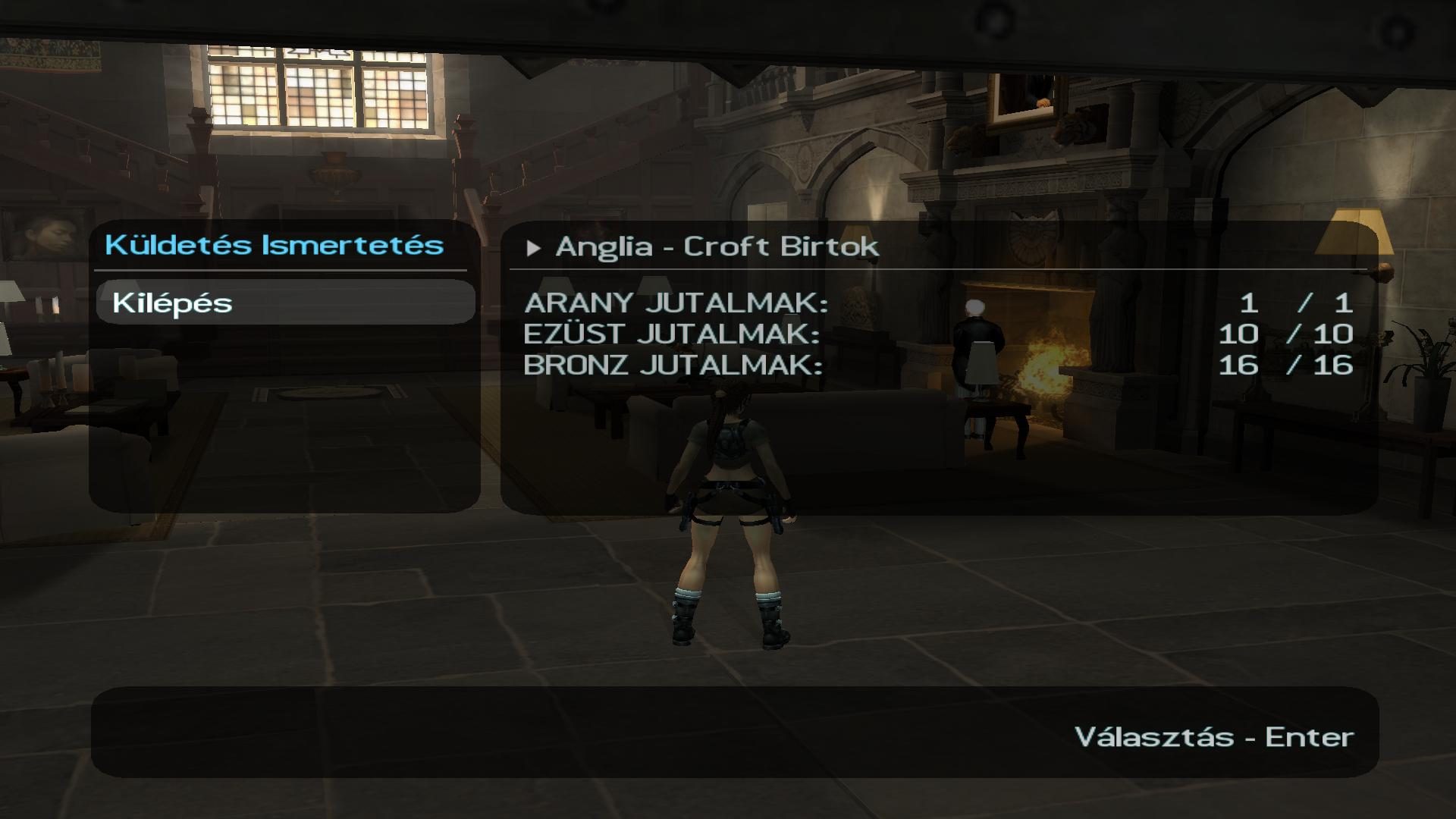 Menj most már ki innen, eleget tornáztál. Menj vissza a lépcsőházba, fel a baloldali karzatra, be jobbra az első ajtón, egészen a könyvtárba. Jobbra, az ajtó mellett nyomd csak be a kiálló könyvet. Eddig is kiálltak, de eddig nem voltak kezelhetőek. :) Menj fel az emeleti szobába, ott is van egy ilyen, azt is nyomd be, és kifelé, még a kis karzaton is ugyanezt tedd a harmadikkal. Lent a földszinten van a negyedik, és ha azt is megnyomtad, melletted kinyílt egy rejtekajtó, és meg is szerezeted a pálya utolsó, a 10. Ezüst pajzsát.
