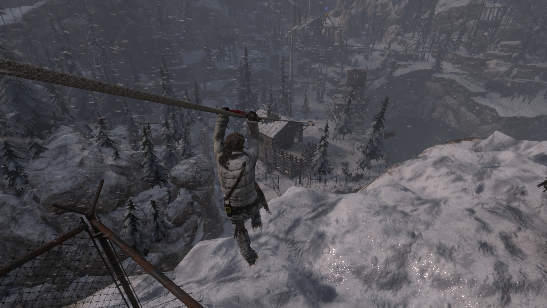 Felmászva a falra, lőj egy kötelet a szemközti részre, és kösd ki. Mássz át a kötélen, és a Vörös Zászló kitüntetést veheted ki egy ládikából. Ez a 17. relikvia.