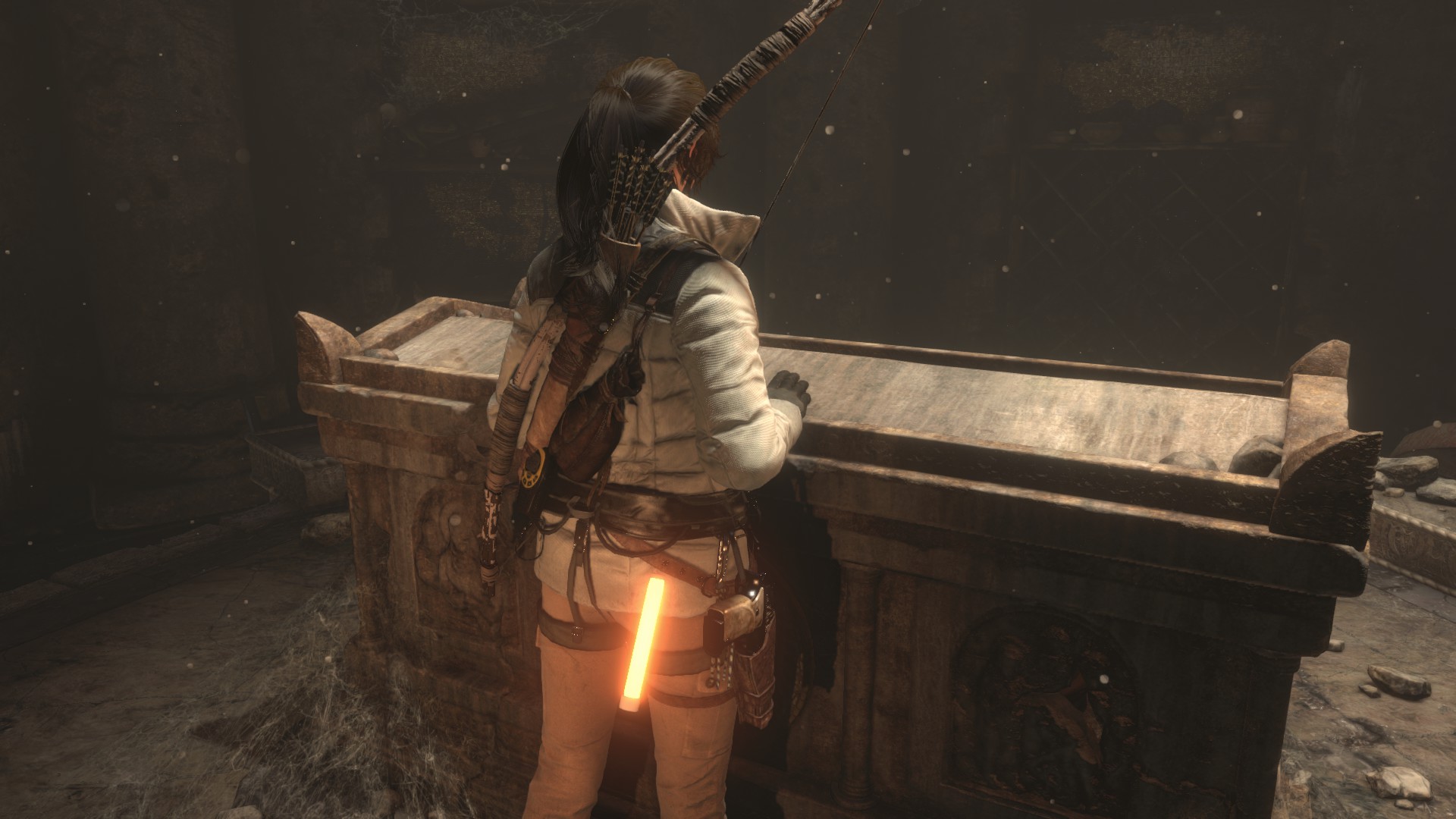 Visszafelé lőj egy kötelet a szemközti kis oszlopra, és mássz át oda. Vedd fel az xp-t a dobozból, majd továbbmenve a földből is kaparhatsz ki magadnak. Megint kötelet lőve jutsz tovább, most lecsúszva azon. Itt találod a Füstölőt egy kis ládikában. Ez a 11. relikvia.