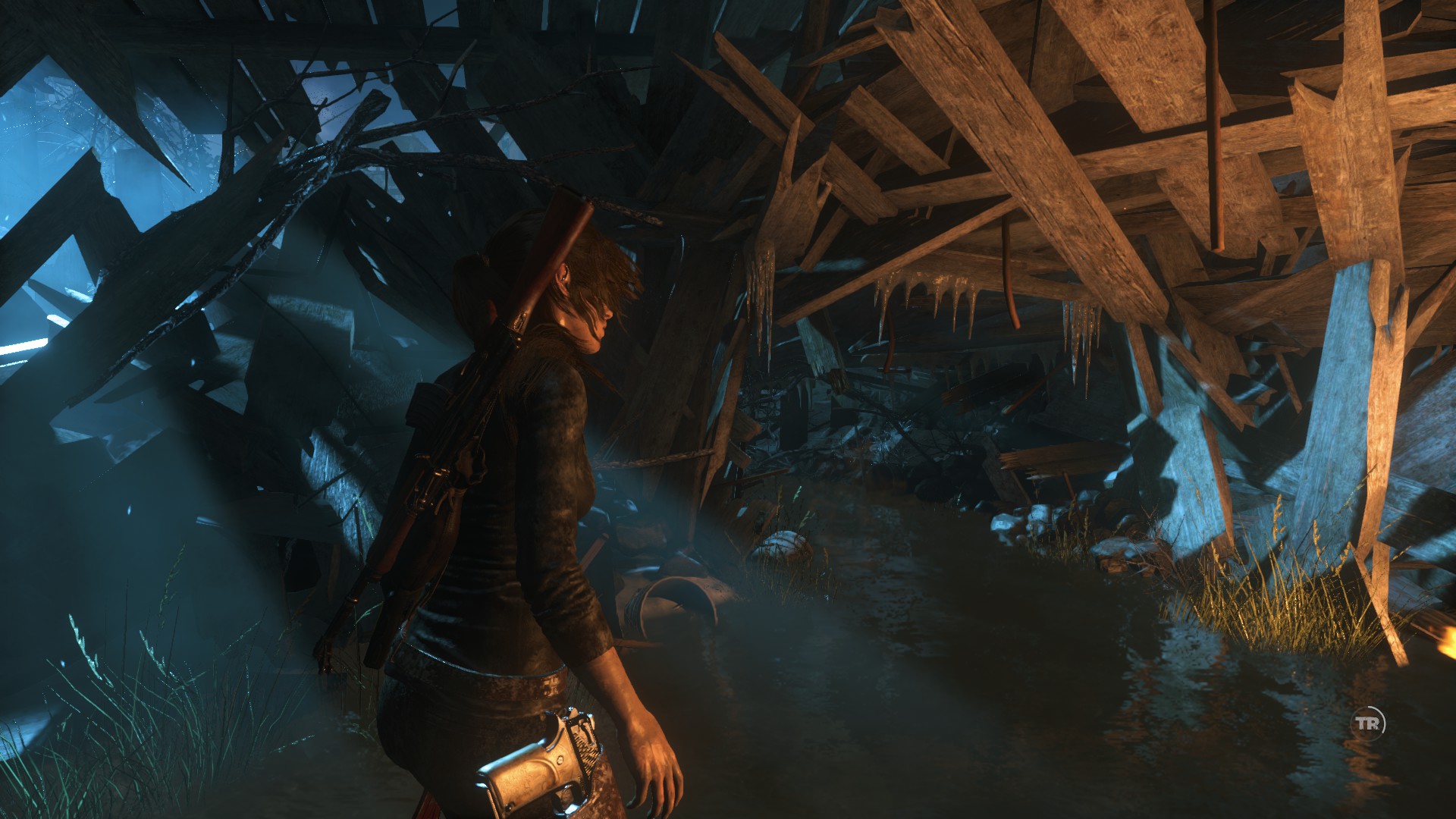 Rántsd ki kötéllel a deszkakaput. Az épület másik oldalán rántsd ki a köteles deszkákat, és bent xp-t vehetsz magadhoz. Az épület ajtaját is feszítsd ki, mert játékot találsz ott egy kis ládikában. Ez a 12. relikvia.