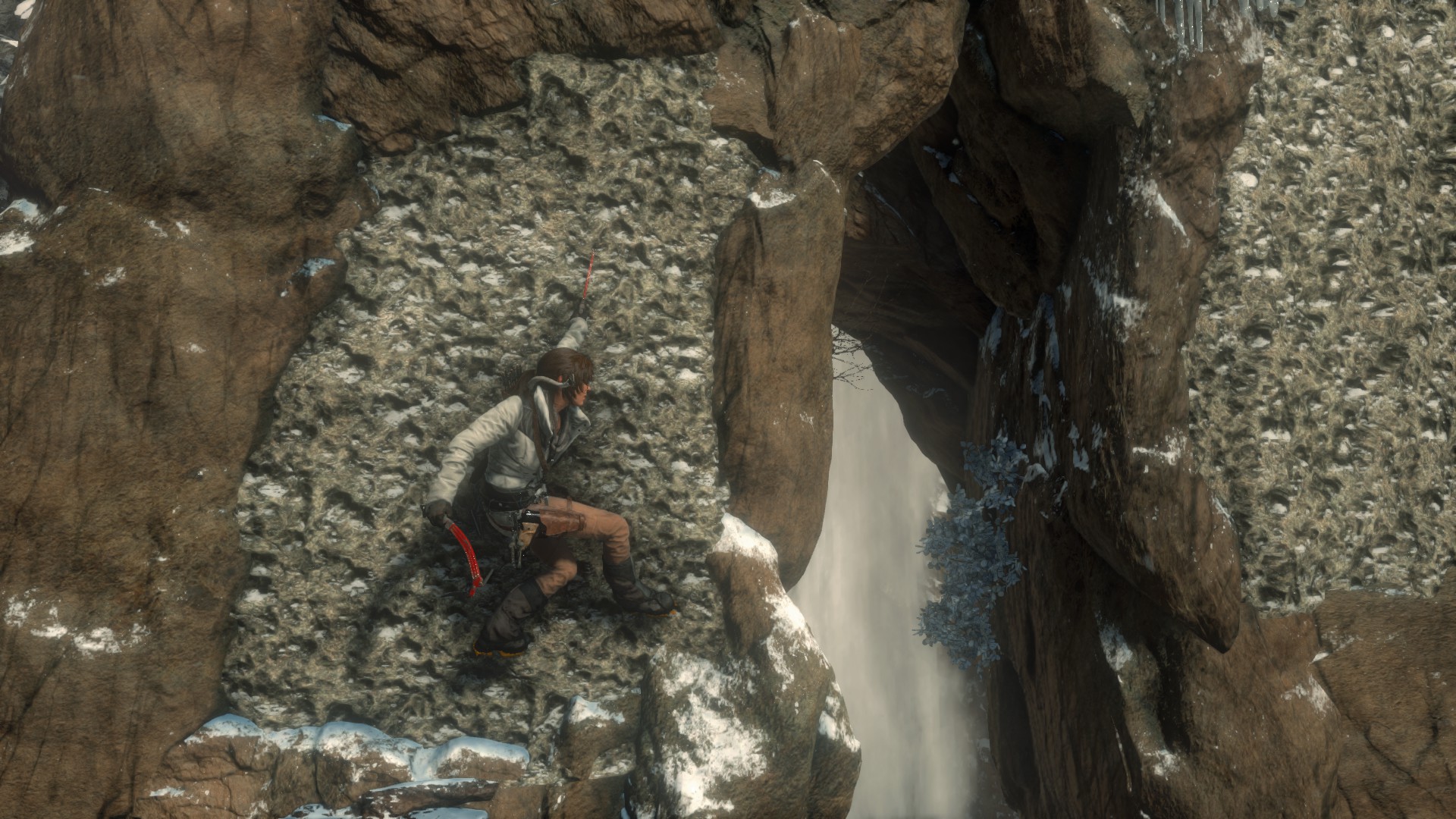 Menj most a befagyott patakon felfelé, egészen a hópárduc barlangjáig. Ha igaz, akkor fent csücsül egy sziklán. Végezz vele, majd menj be a kuckójába.