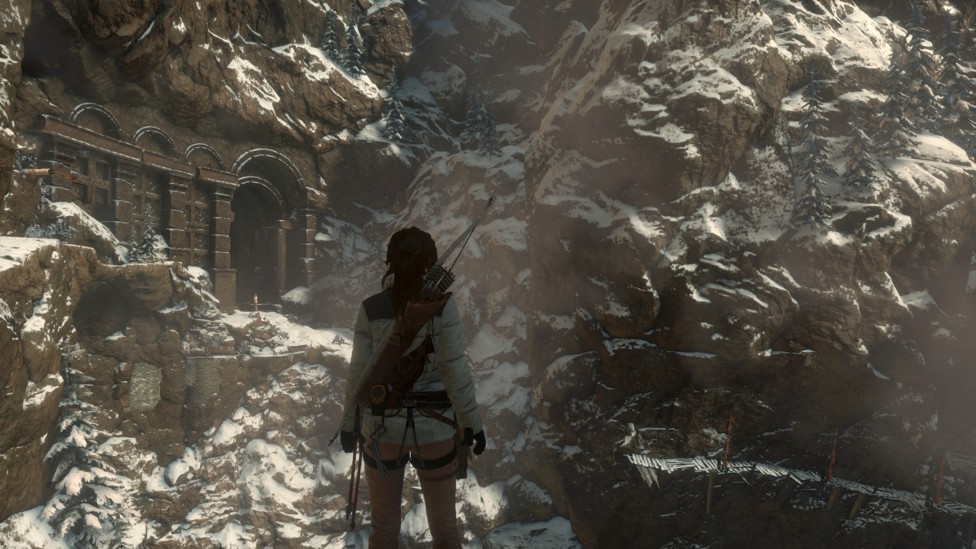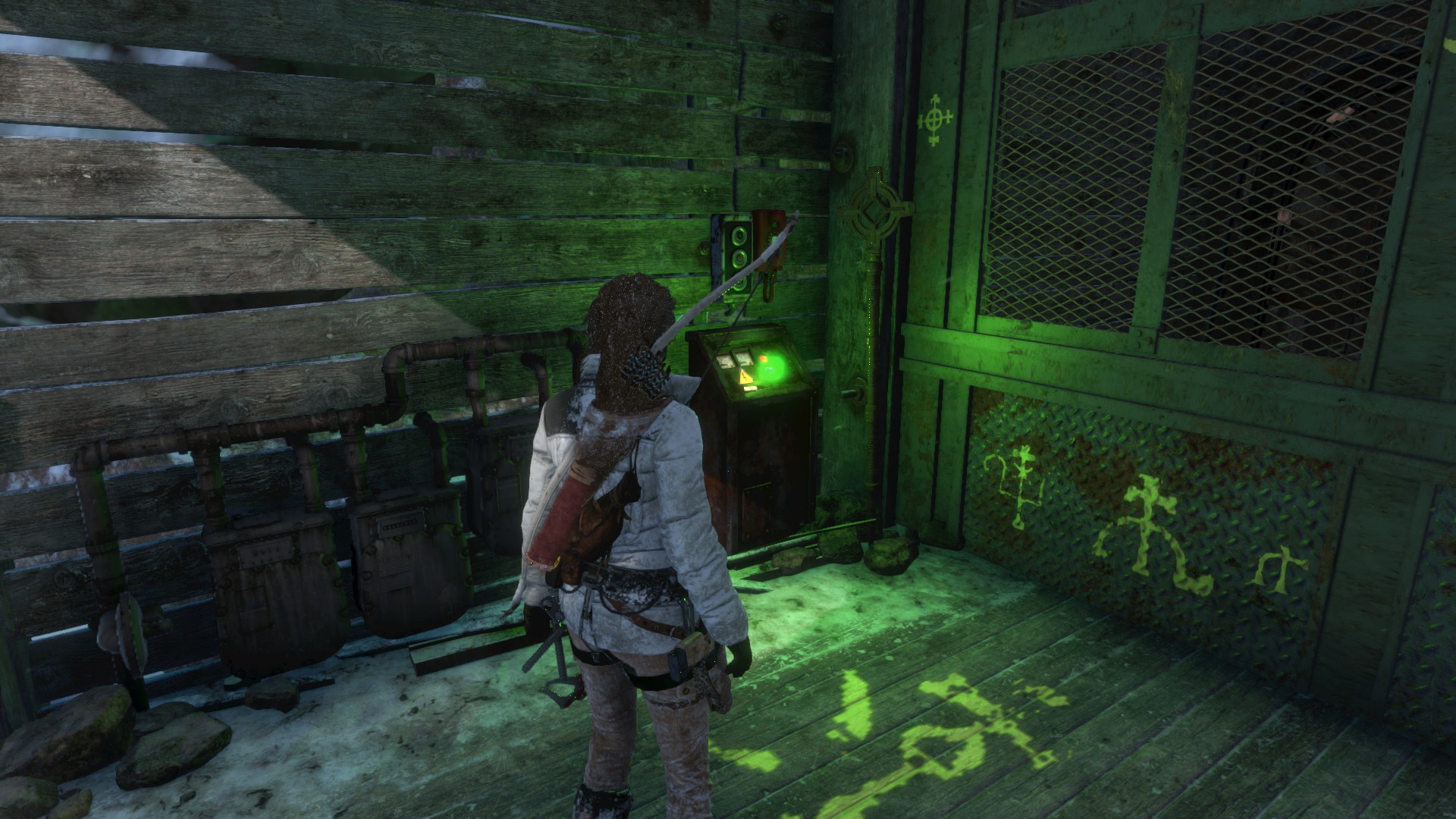 Fogd a másik kannát, és menj felfelé a befagytott patak jobb partján. Egészen fent, jobbra találsz egy barlangot. Robbantsd ki a bejáratot, bent öld le a farkasokat, és megtalálod bent a következő hátizsákoti. (6/4) Ha most nem sikerül, mert nincs kannád, akkor ne felejtsd ezt el, majd ha visszautazol ide, és lesz robbanófejes nyilad.