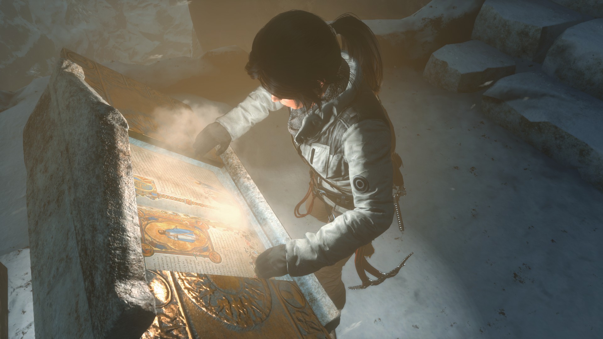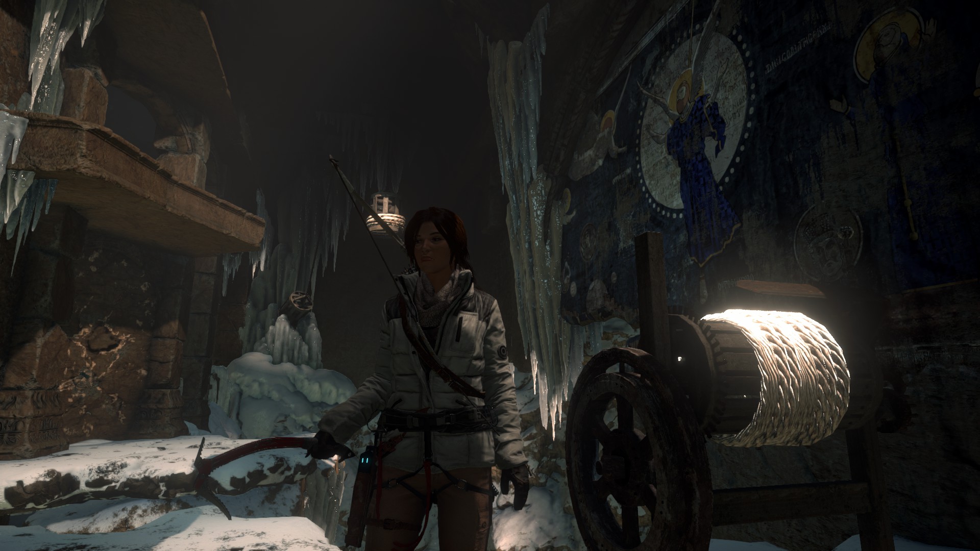 Lőj egy kötelet a súlyra, és húzd magad felé a tekerentyűvel, teljesen. A csiga másik oldalán tudod kiengedni a kötelet, így a súly belendül, kitöri a jeget, és kiszabadul a harang. Ha nem sikerül elsőre, majd sikerül másodszorra. :) Ugorj át a másik párkányra, és törd át a falat. Visszaértél a nagyterembe. Most a másik tekerentyűt forgasd meg, most már lehet, így kinyitva a másik oldalon a zsilipajtót. A szél besüvít, és kimenve a szabadba, az xp-s dobozon kívül, egy újabb kódexet olvashatsz meg. A feladat teljesítve, a jutalmad egy újabb képesség, a Belső erő.