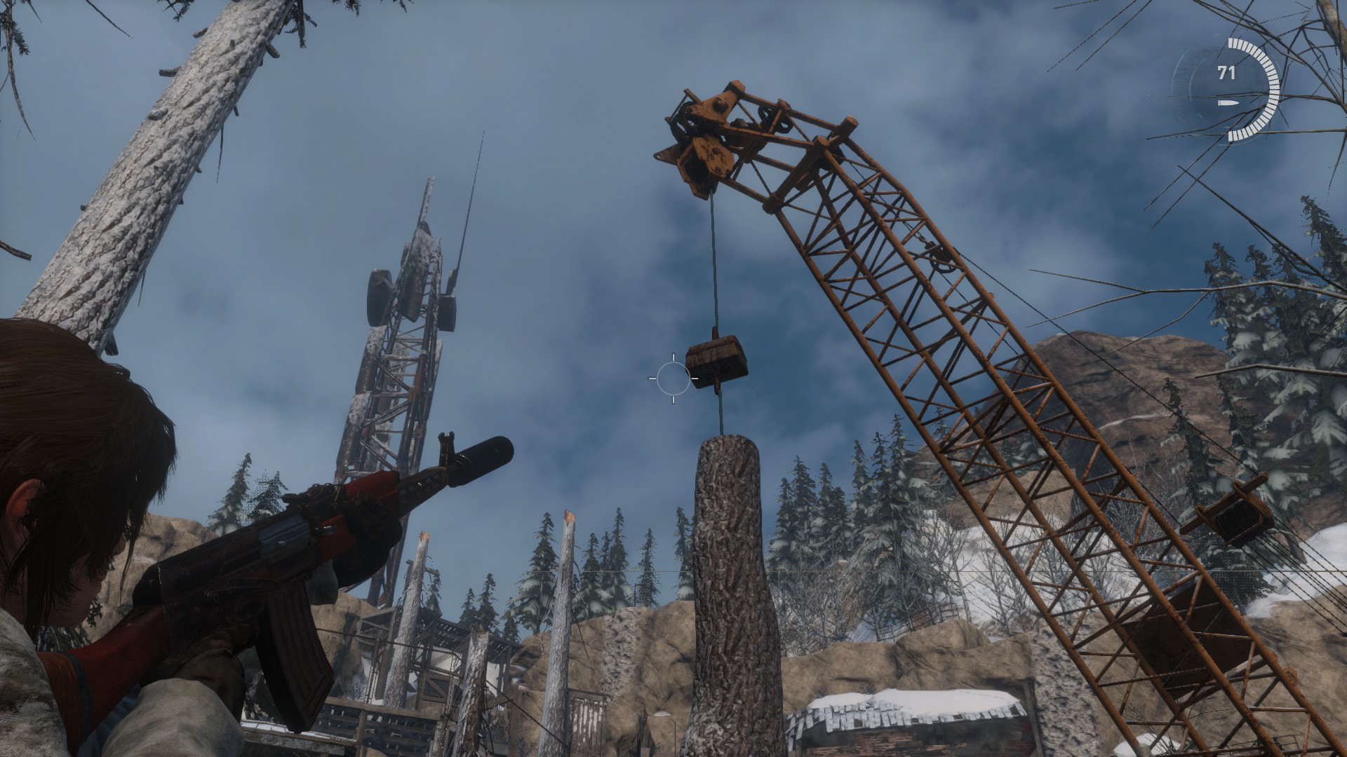 Mássz fel a falon, rántsd le a plafonon a csapóajtót, és mássz fel a létrán. Lőj egy kötelet a lengő darura, és lengj át a túloldalra. Újabb kötéllövés, lerántod az akadályt. Ugrás át oda, majd a gerendákon egyensúlyozva mehetsz tovább. Egy kis falmászás után feljutsz egy tartályhoz. Mássz fel a létrán, ugrását a szemközti épülethez. Csimpizz jobbra, és felmászva fojtsd meg a rádiózó fickót. Mássz fel a létrán, majd a ház peremén csimpizz balra. Felmászva a tetőre csússz át a kötélen, és balra találod a 13. vasládát, benne találod a géppisztoly harmadik részét. (4/3)