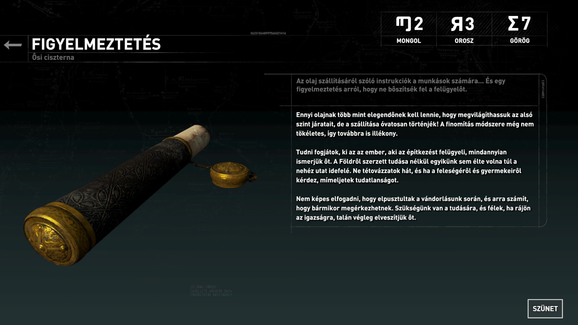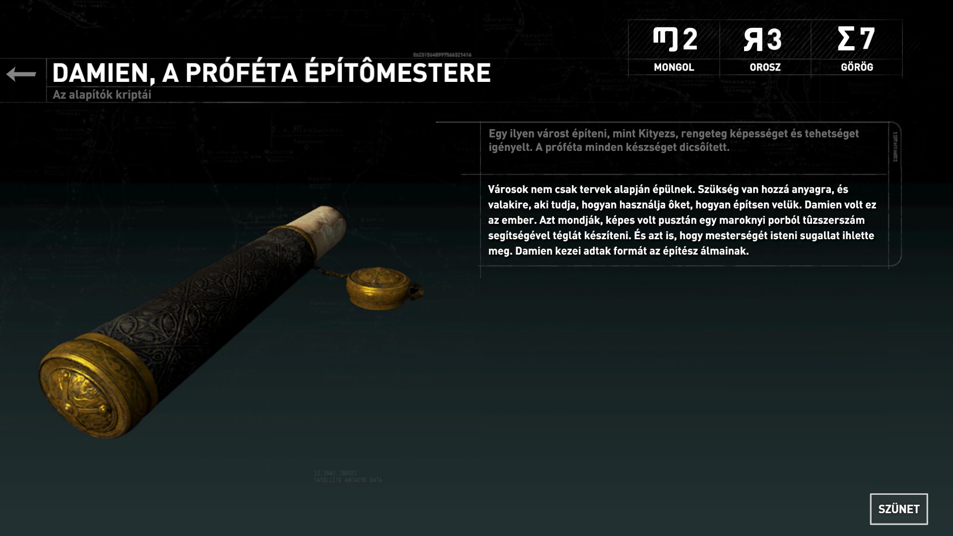 Az oszlop elolvasása után frissült a térképed, így újabb lóvékat áshatsz ki magadnak. Továbbmenve a szemközti épületben találod a 19. dokumentumot.
