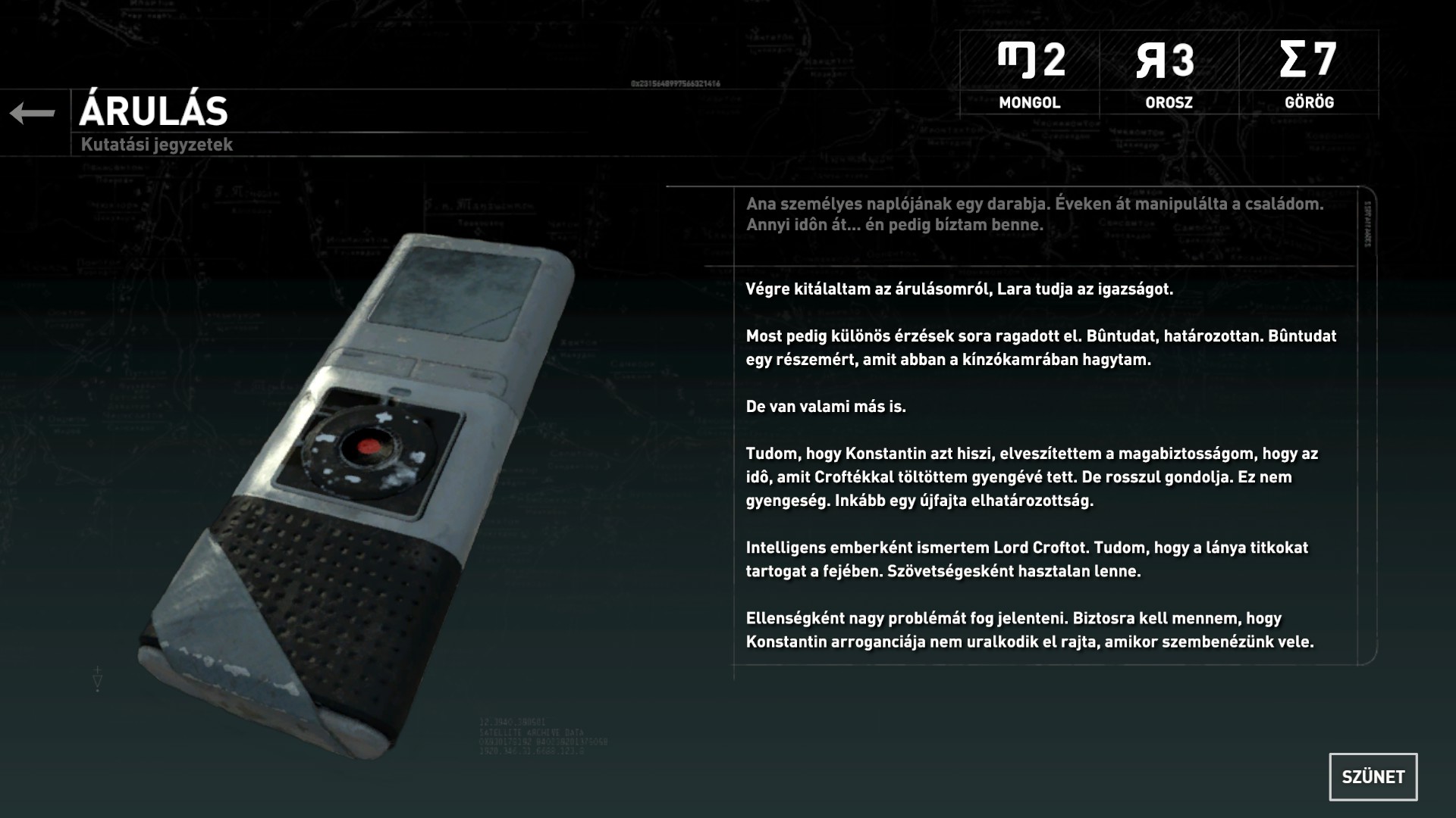 Találsz ott benzinesüveget is, gyújtsd hát fel az akadályt. De a cső felett, akkor nem ázik el. Ugorj át a túloldalra, majd először balra ugorj, ott találod egy kis asztalkán a 21. dokumentumot.