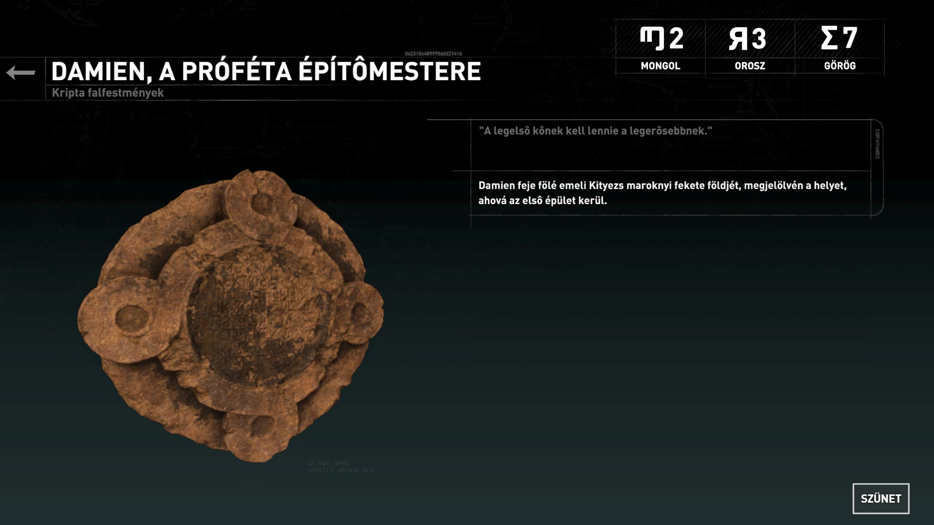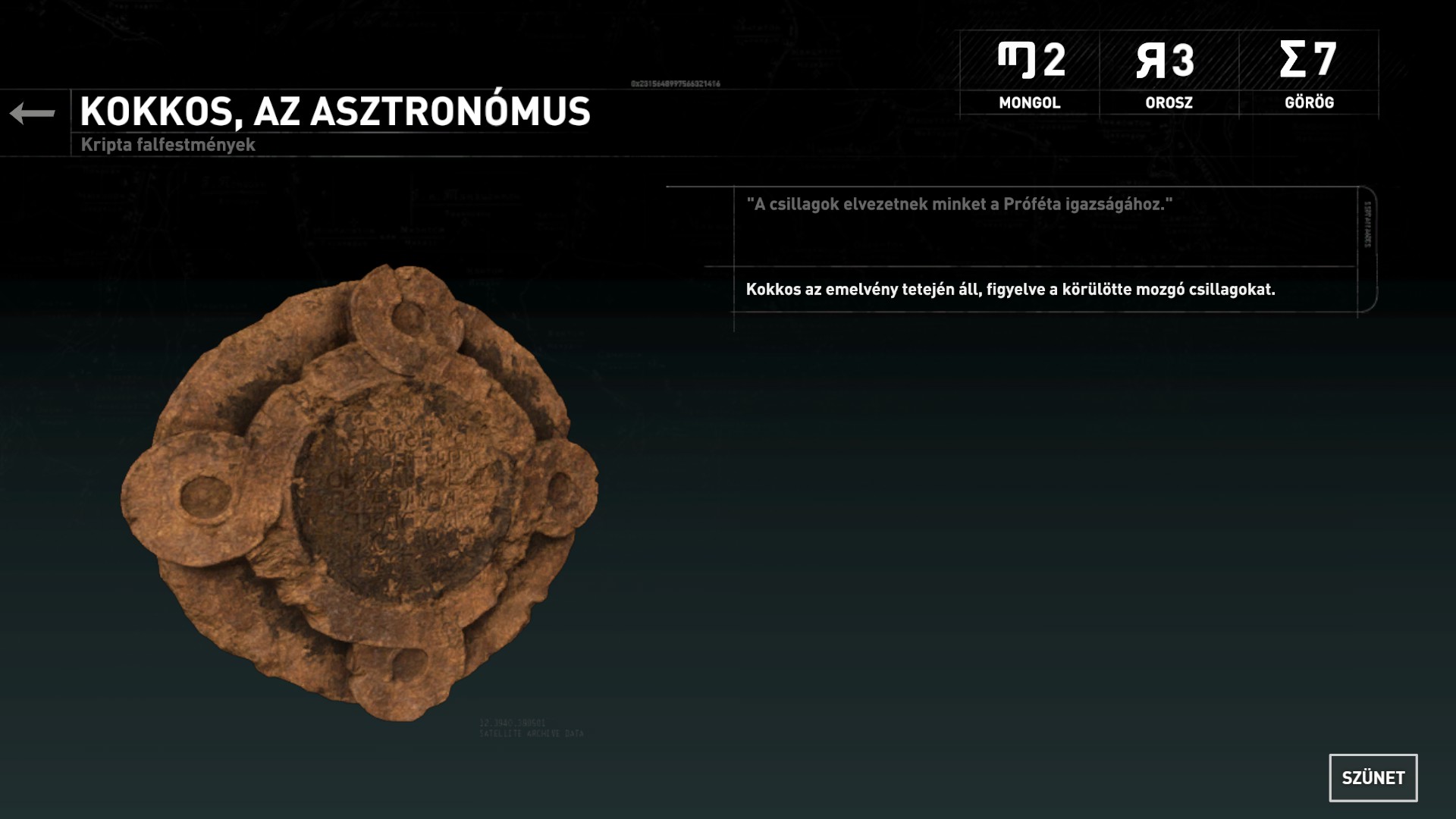 Balra mindjárt vedd fel a csonti elől az érméket, nem kell az már neki. Találsz bent egyébként minden finomságot, gombákat, érclelőhelyeket. Törd át a falat, tanulj görögül a kerek fali íráson, (12/1)