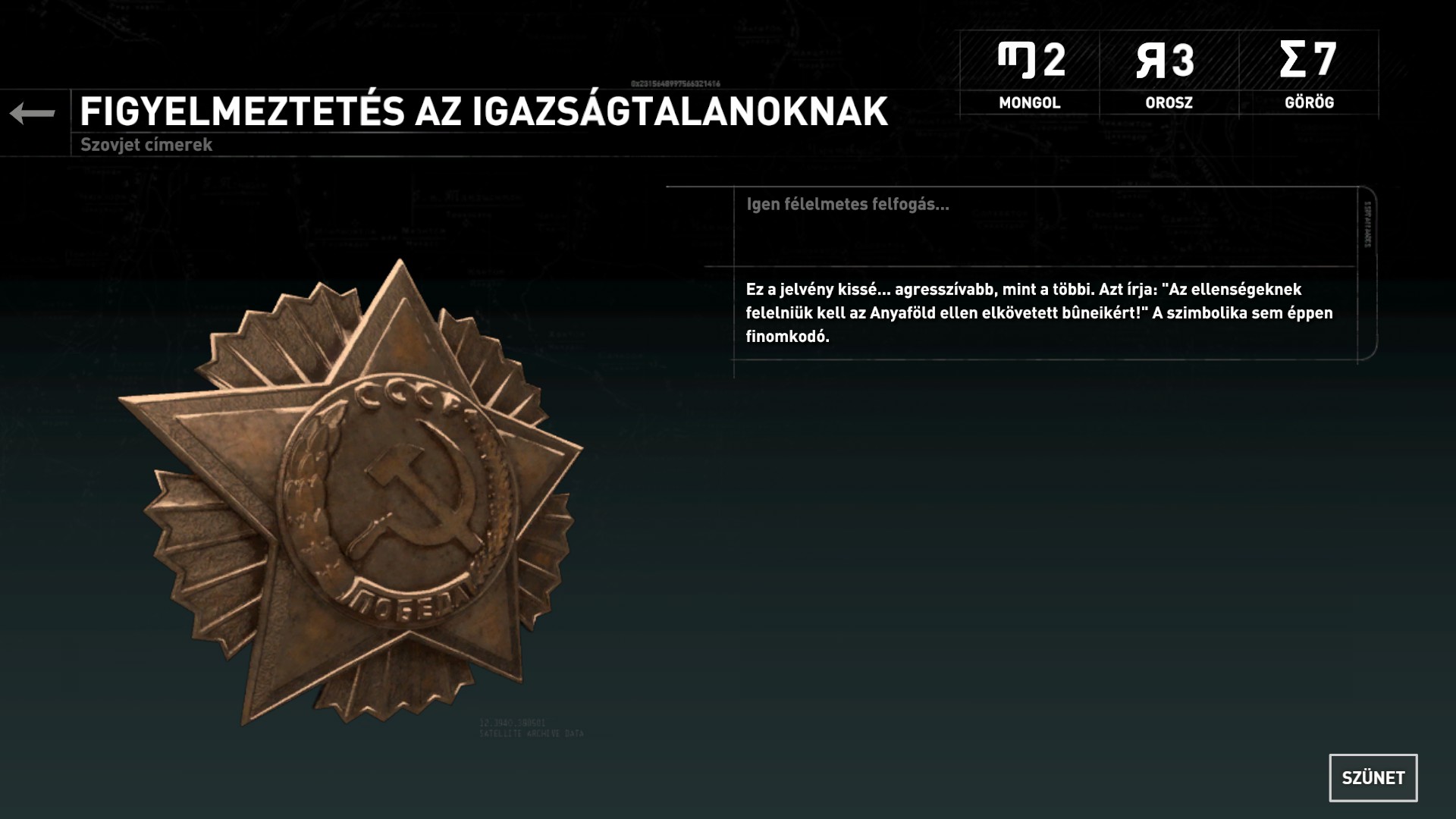 Egyébként egy hulla mellett egy kis ládikából kiveheted a Szovjetunió Hőse emlékérmét. Ez a 16. relikvia.