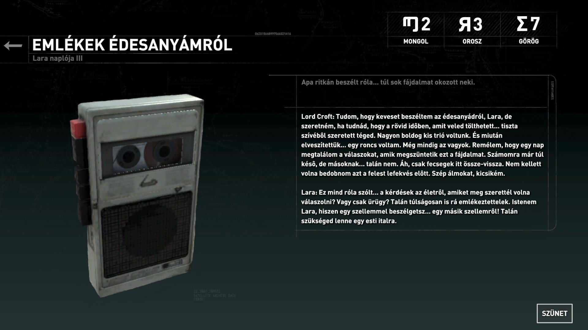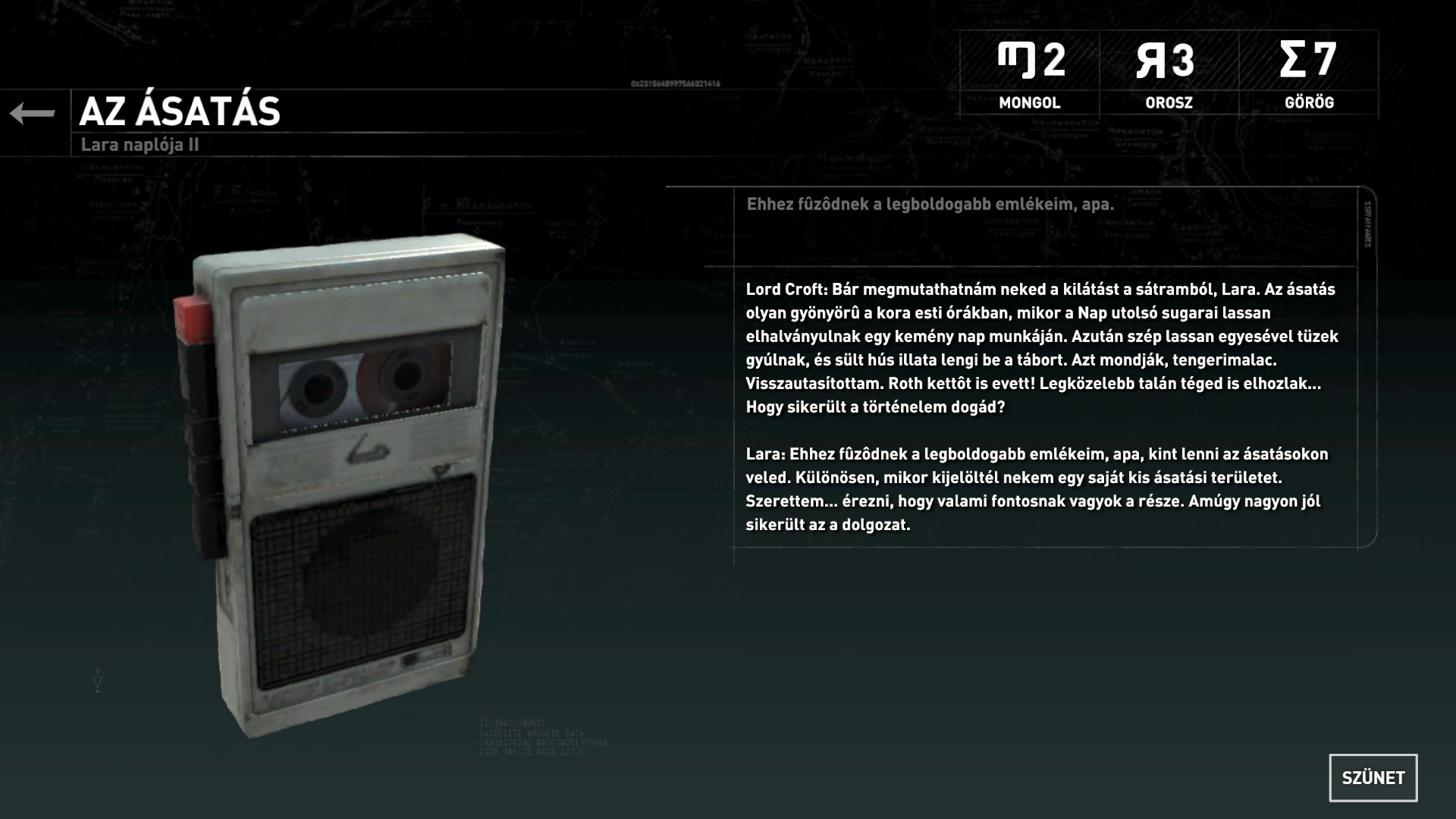 Lemenve a tábortűzhöz megpihenhetsz. Ugorj át a szemközti részre, mássz fel a lezuhanó csillénél, Szembe átugorva menj fel a lépcsőkön, és a vasszekrény mellett megtaláltad a 22. dokumentumot.