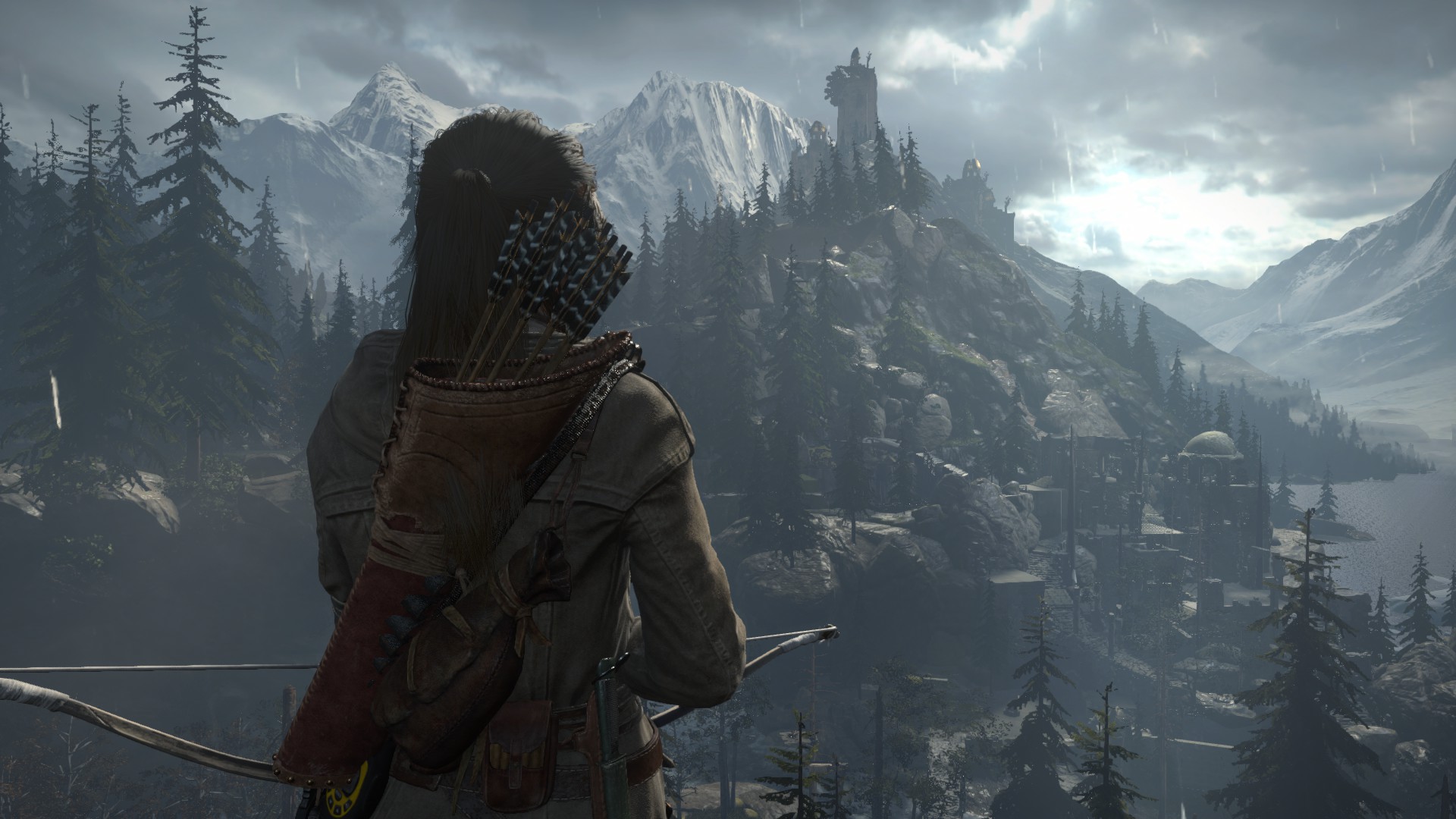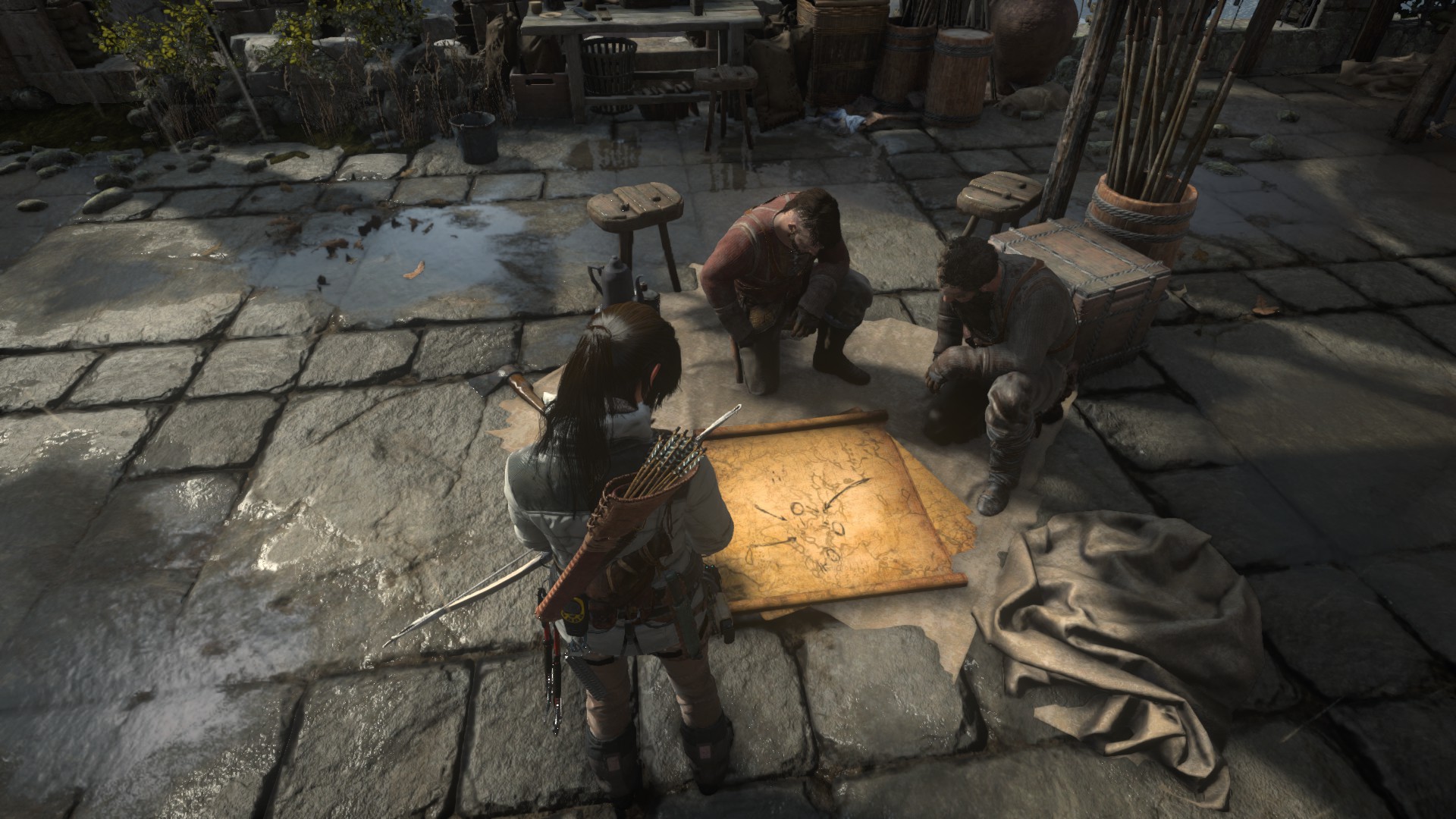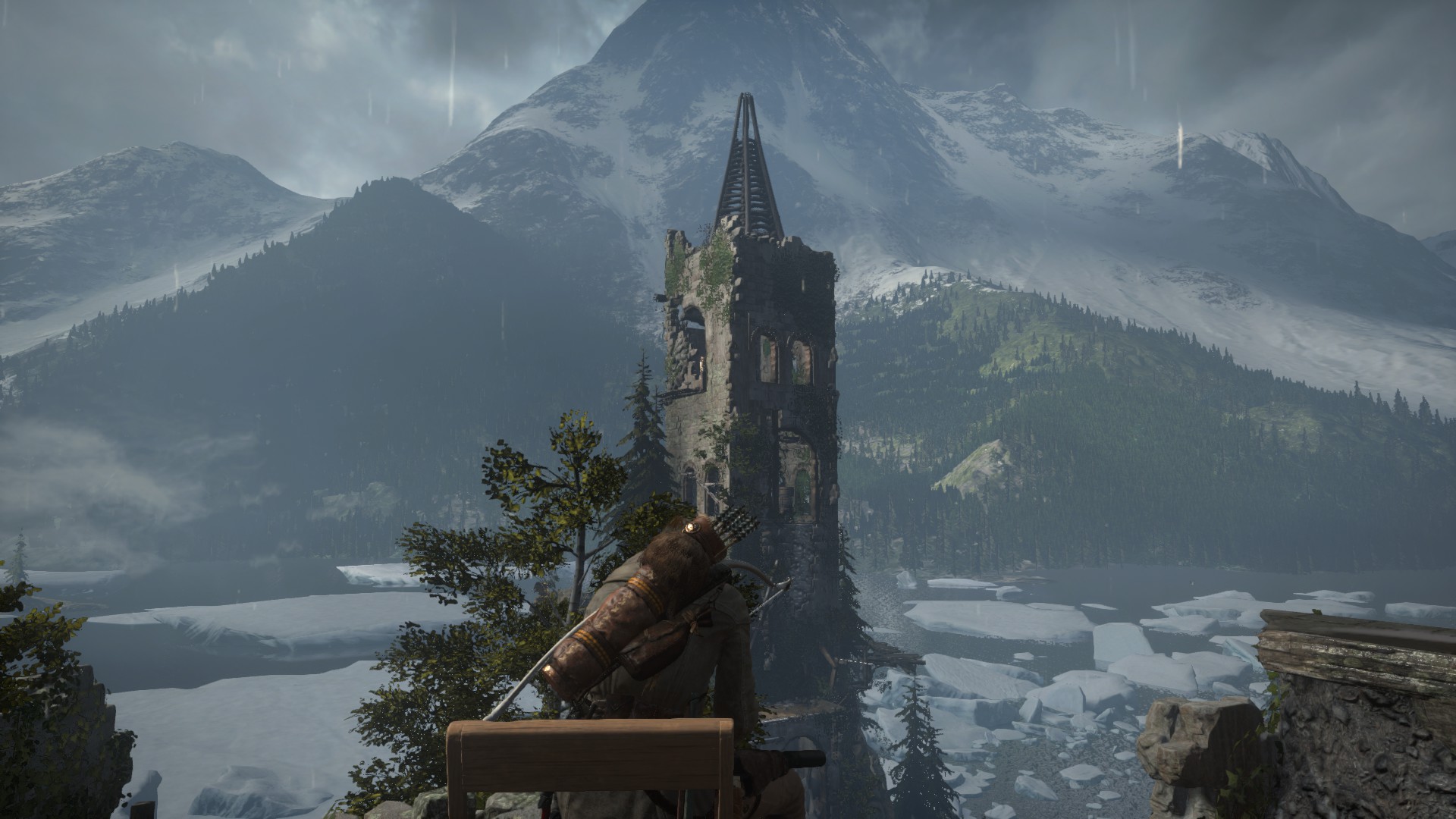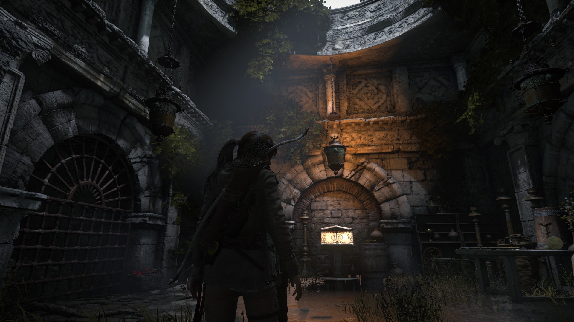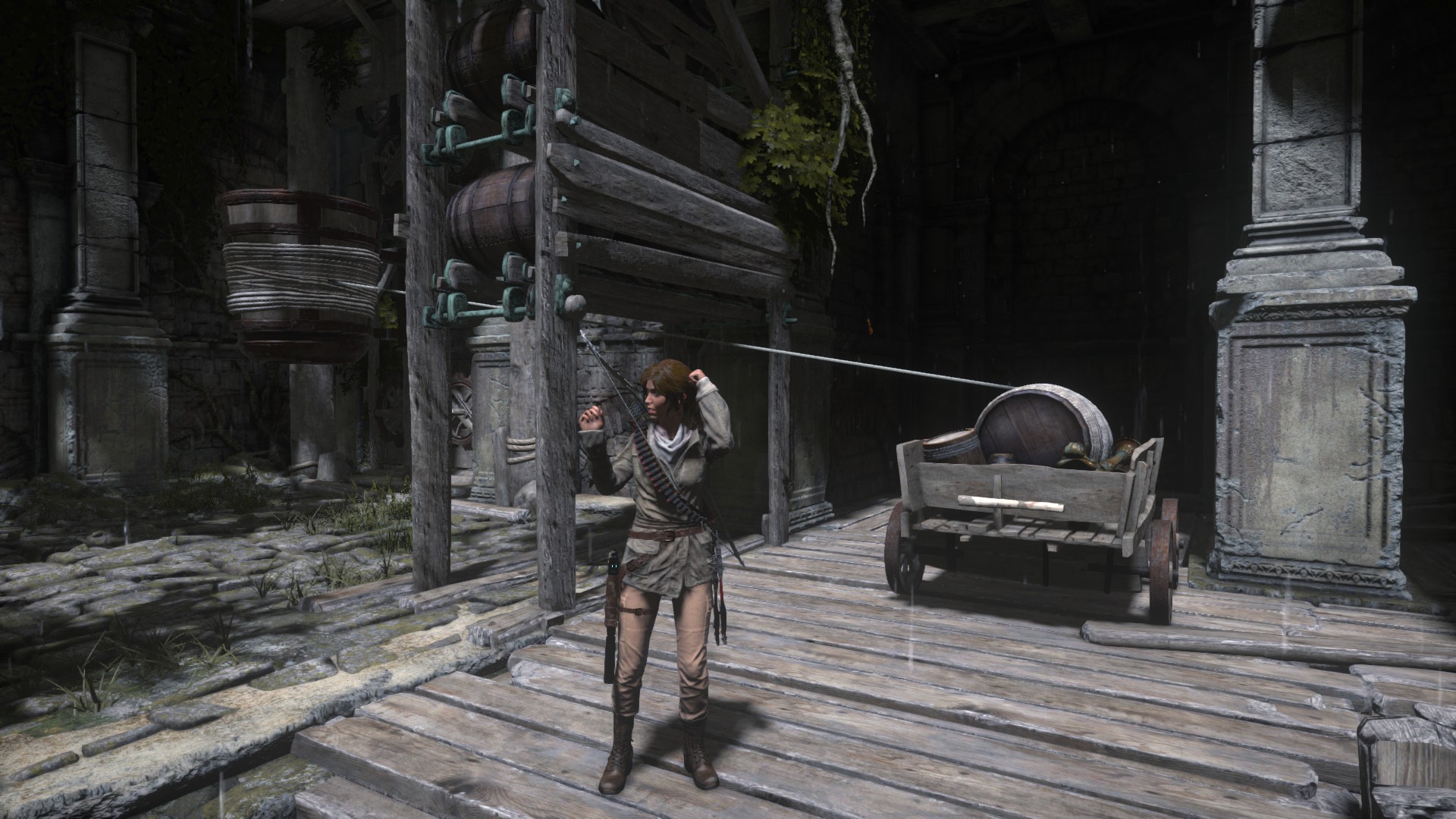 Menj ki ebből a sírból. Menj lefelé az úton, és látsz balra egy tornyot, egy szigeten. Lőj a túloldalra egy kötelet, és csússz le rajta. Mássz fel a falon, ugrás szemközti platformra, majd a rúdon át jutsz a mászható falra. Most lefelé kell kapaszkodni, az alsó falon meg jobbra, majd ugrás jobbra, a fali peremre. Juss fel a falon ugrással, majd újabb rúd, újabb deszkapalánk, és újabb falmászás következik. Csimpizz jobbra, majd megint a csákány lesz a soros. Ugrás a majdnem leszakadó fagerendára, és újabb falmászás után felveheted az Olajos flaskát, és a tüzes nyilakat.
