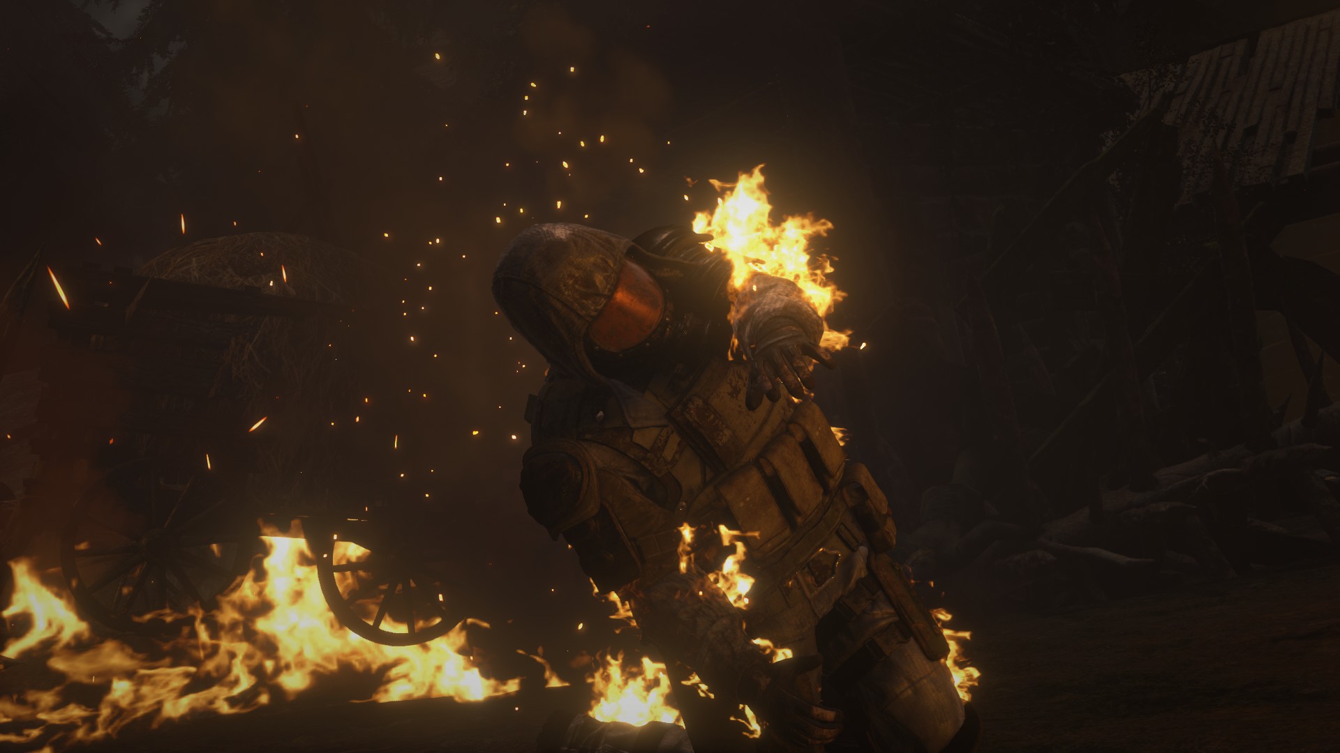 Kimenve jobbra tarts, majd lefelé menve az ösvényen, egy békanyálas kis tavon úszva egy veszélyes területre értél. Kimászva a vízből tűz vesz körül, mindent felgyújtottak. Három rabot is ejtettek, köztük naná, hogy a peches Jákobot is. A fegyveredért nyúlsz, de Jákob nemet int, félti a barátait. Az egyik túszt lelövik. Jákob elveszi a puskát a fegyverestől, és lelövi. Neked adja, harcolj te. Frankó kis barát. Mindenesetre most tiéd a Shotgun.