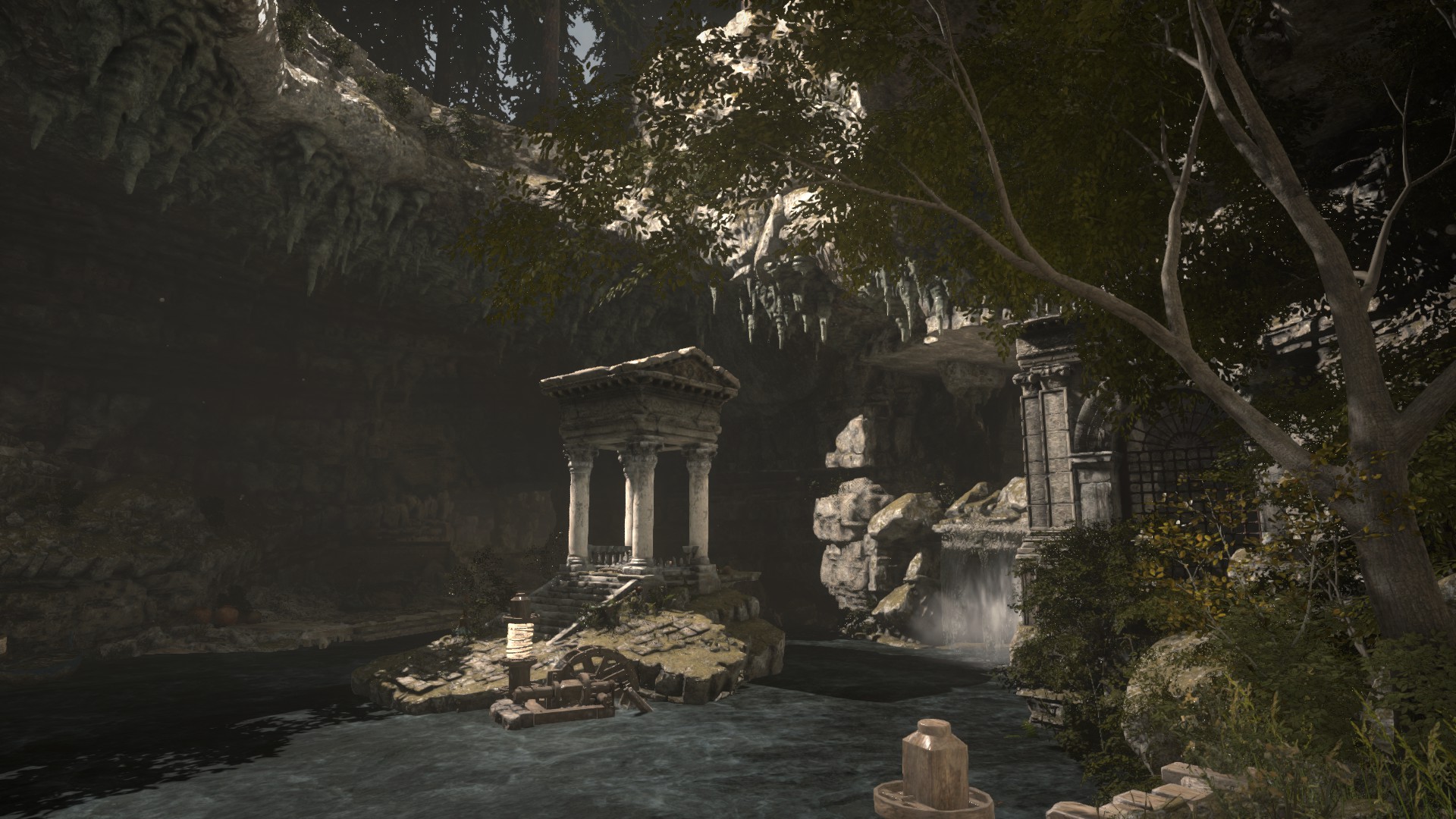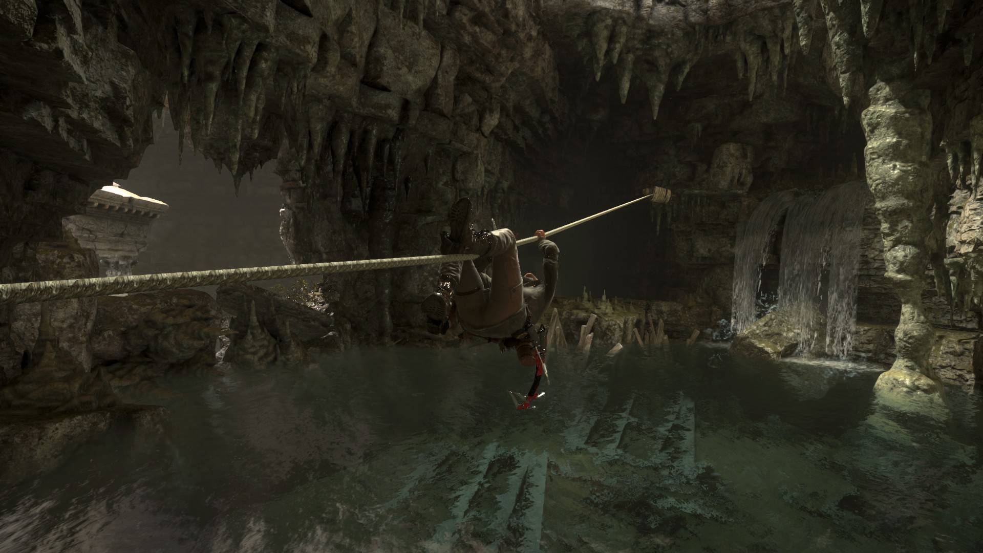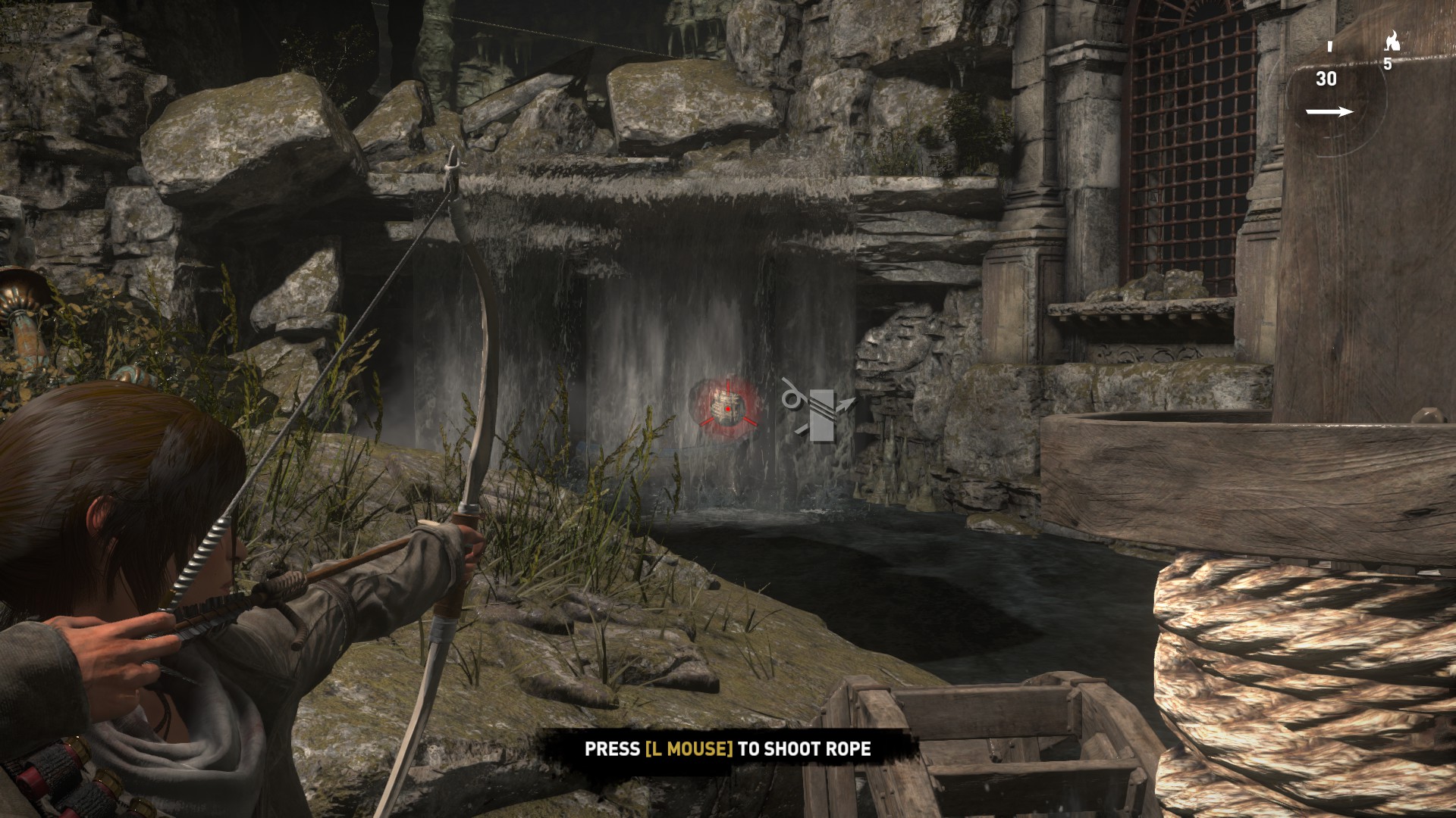 A falon felkapaszkodva törd át a falat, bújj át a sziklarésen, gázolj át a vizen, mássz fel a sziklafalon, majd ugrás a mászható falrészre. A fali peremeken kapaszkodva jutsz a kis vízesés mögé, és felfelé folytatva az utadat kiérsz a szabadba.