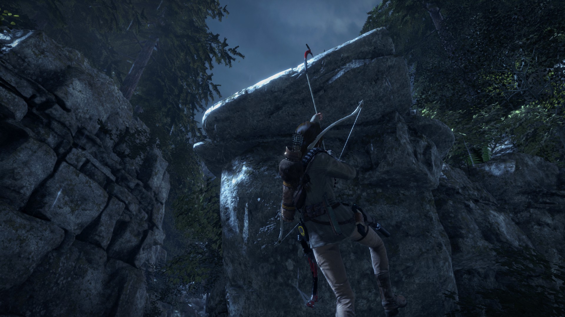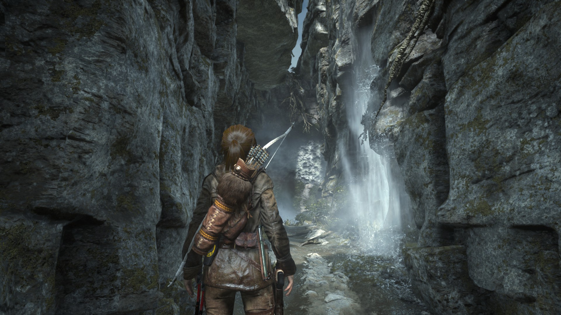 Lehajolva menj át az alacsony résznél, mássz át a fali résen, és áshatsz magadnak egy kis lóvét. Juss vissza, fel a nagyterembe. Lőj egy kötelet a szemközti részre, és mássz át rajta. Most a csáklyával kell átjutni, ugrás közben aktiváld. Jobbra, lent a sziklákon találod meg a hátizsákot.