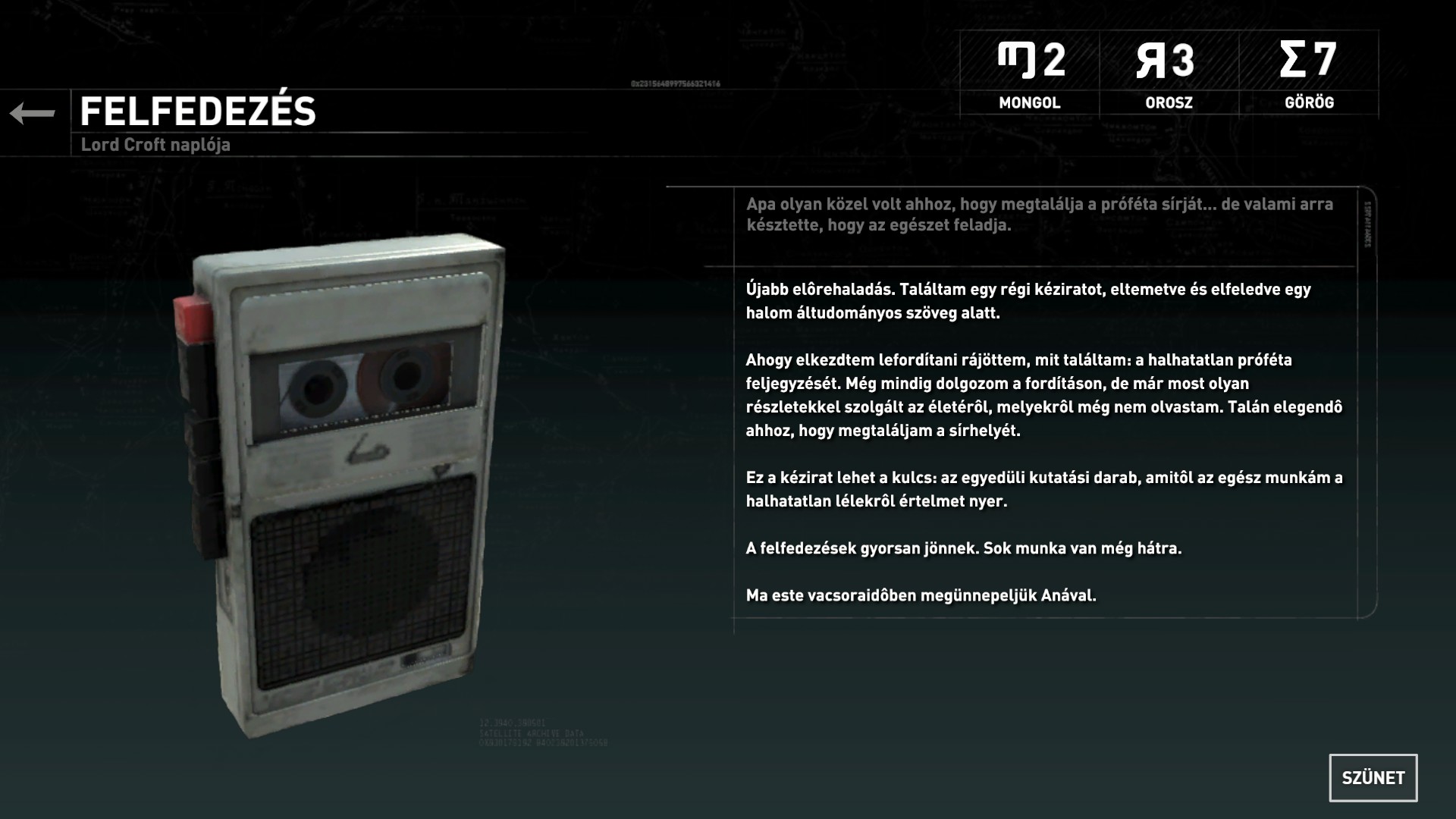 Menj át a fatörzsön, ugorj jobbra a sziklafal felé, közben persze a csáklyádat ne feledd el. :) Jobbra meg is van a 10. dokumentum. ![]()