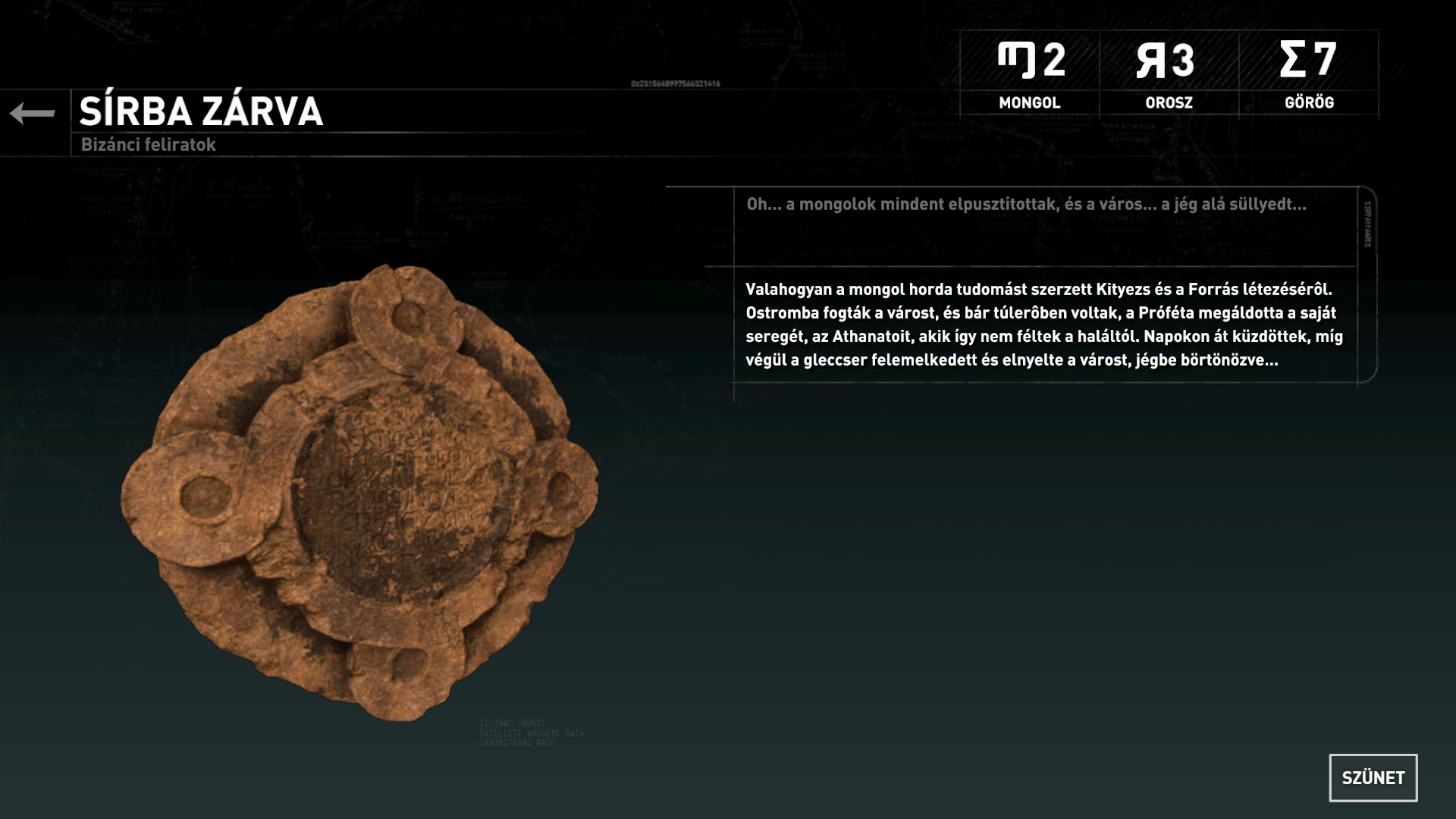Felszedhető cuccok: Kódex 1, Írás a falon 1, Kess 3, Felfedező hátizsák1.