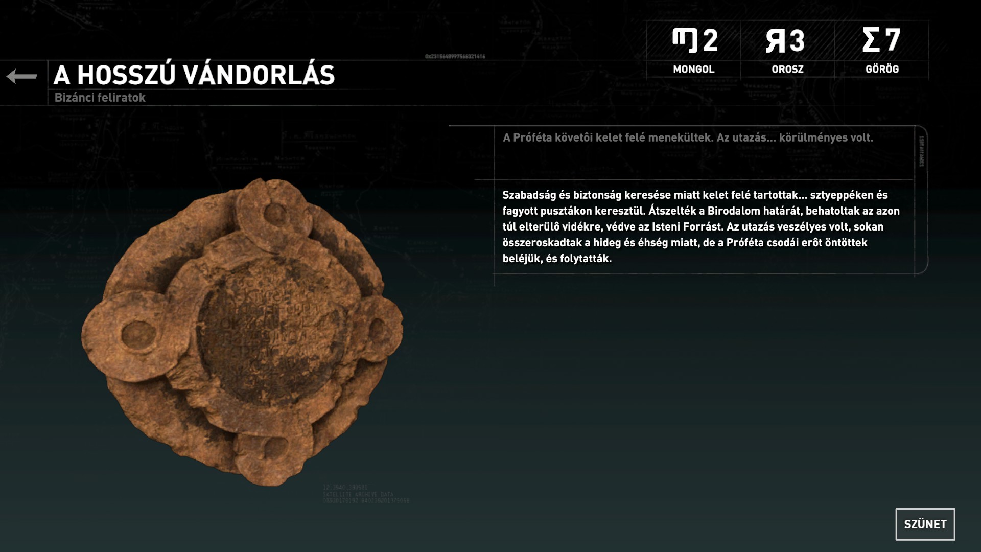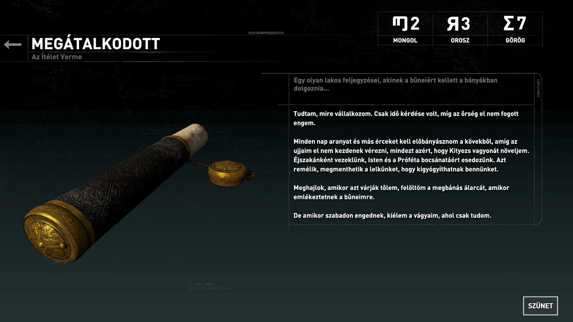 Nos, ide vissza kell majd térned, hogy az utolsó missziót is teljesítsd, de csak ha meglesz már az utolsó sírkihívás is. Most viszont a szemközti falon olvasd el az írást. (4/4)
