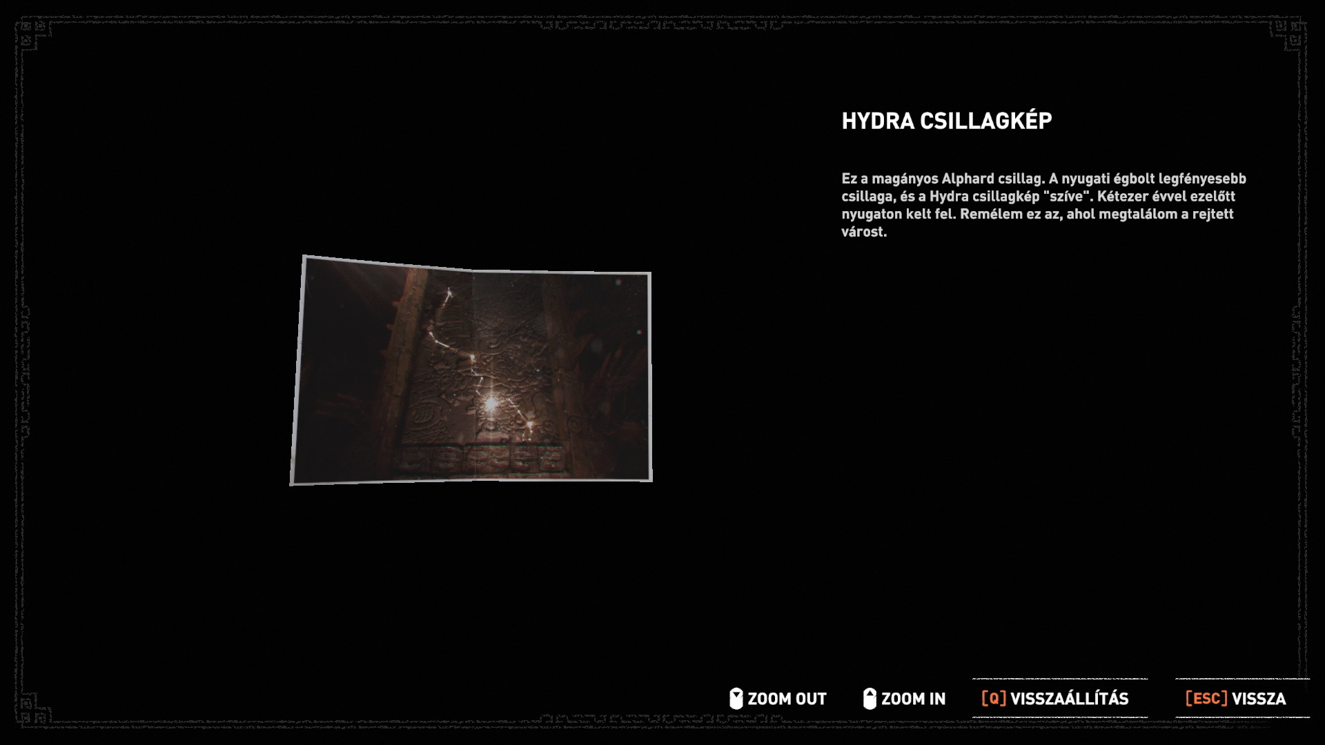 Menj fel a lépcsőn, vedd fel a gombákat. Mássz át a sziklarésen, a vízen átgázolva nézd meg jobbra az írást a falon, ez az 1. falfestmény 2/1.