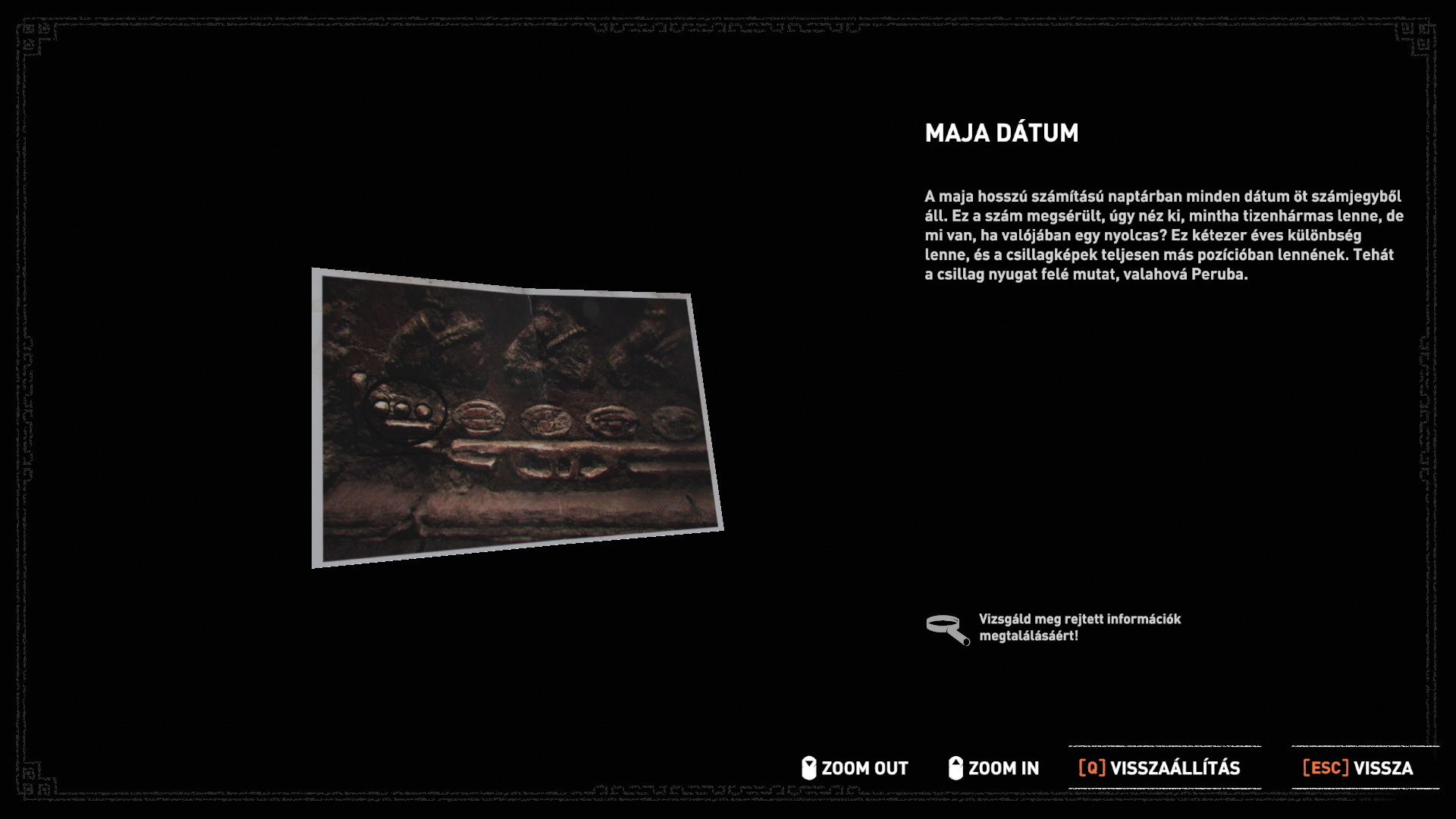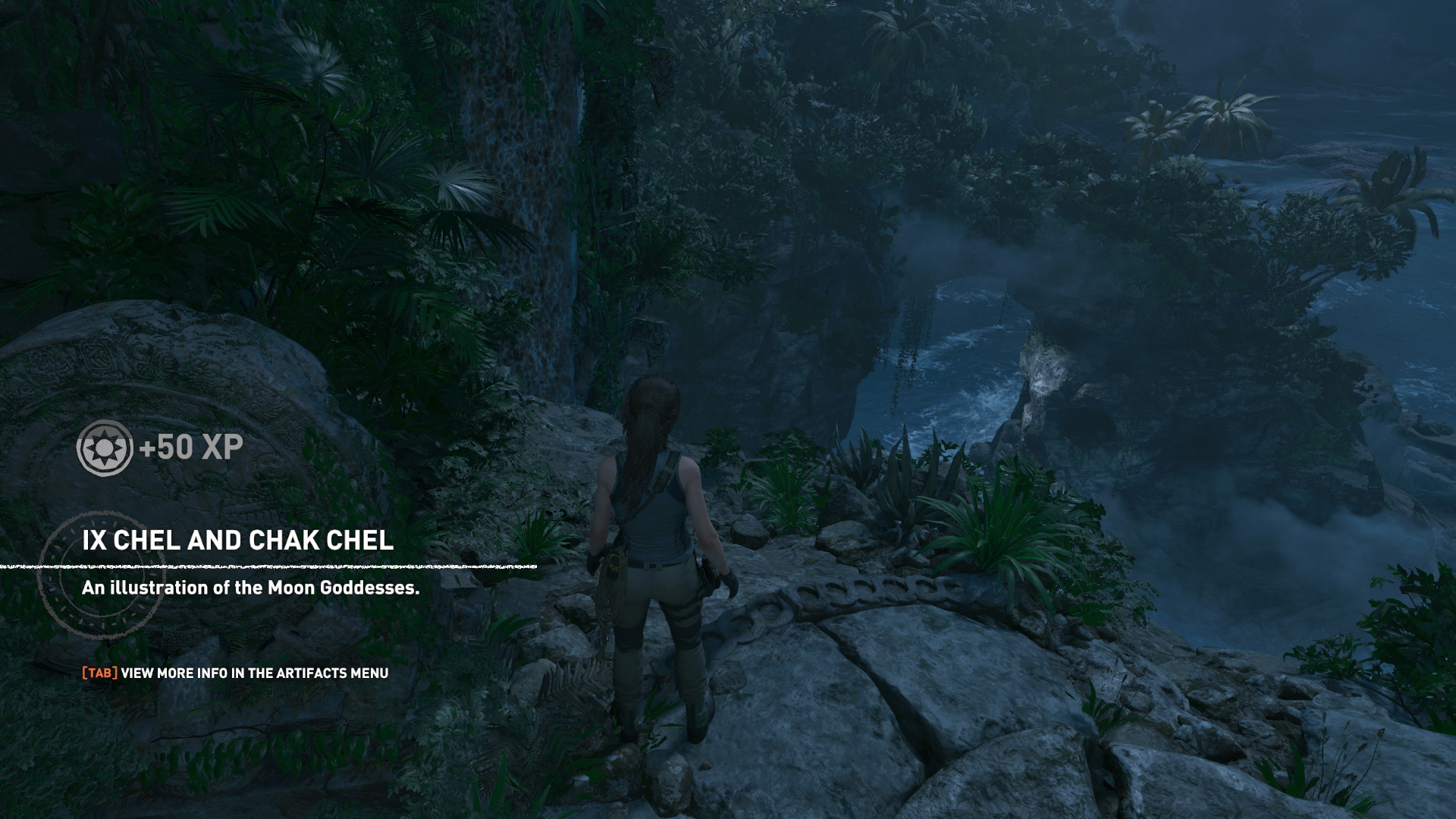 Indulj el a falig, kapaszkodj fel a sziklára, mássz fel, és fent, egy ugrással kapd el a magasabb sziklát. Mássz balra, majd felfelé, a végén egy ugrással elkapod a tető peremét és felmászhatsz. Menj a sziklaösvényen a kis piramishoz. Lara nem veszi észre a detonátort, de a barátja is későn kapcsol. Azért lefényképezi a fali képet, a Rejtett város rejtvényét, és a maja naptárat. Rálép a kapcsolóra, és a barlang összeomlik, alig tudnak kimenekülni.