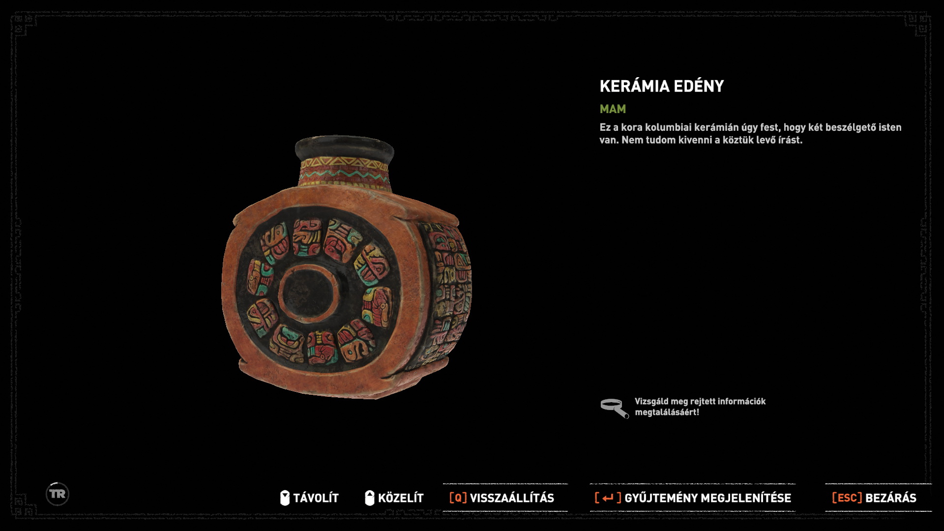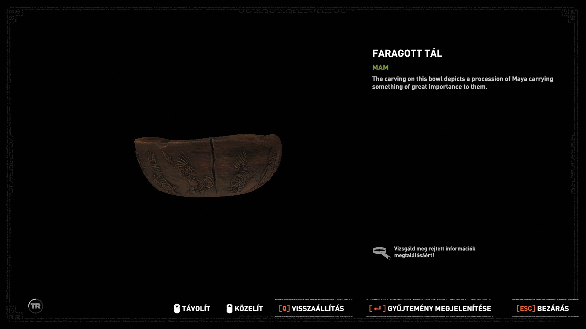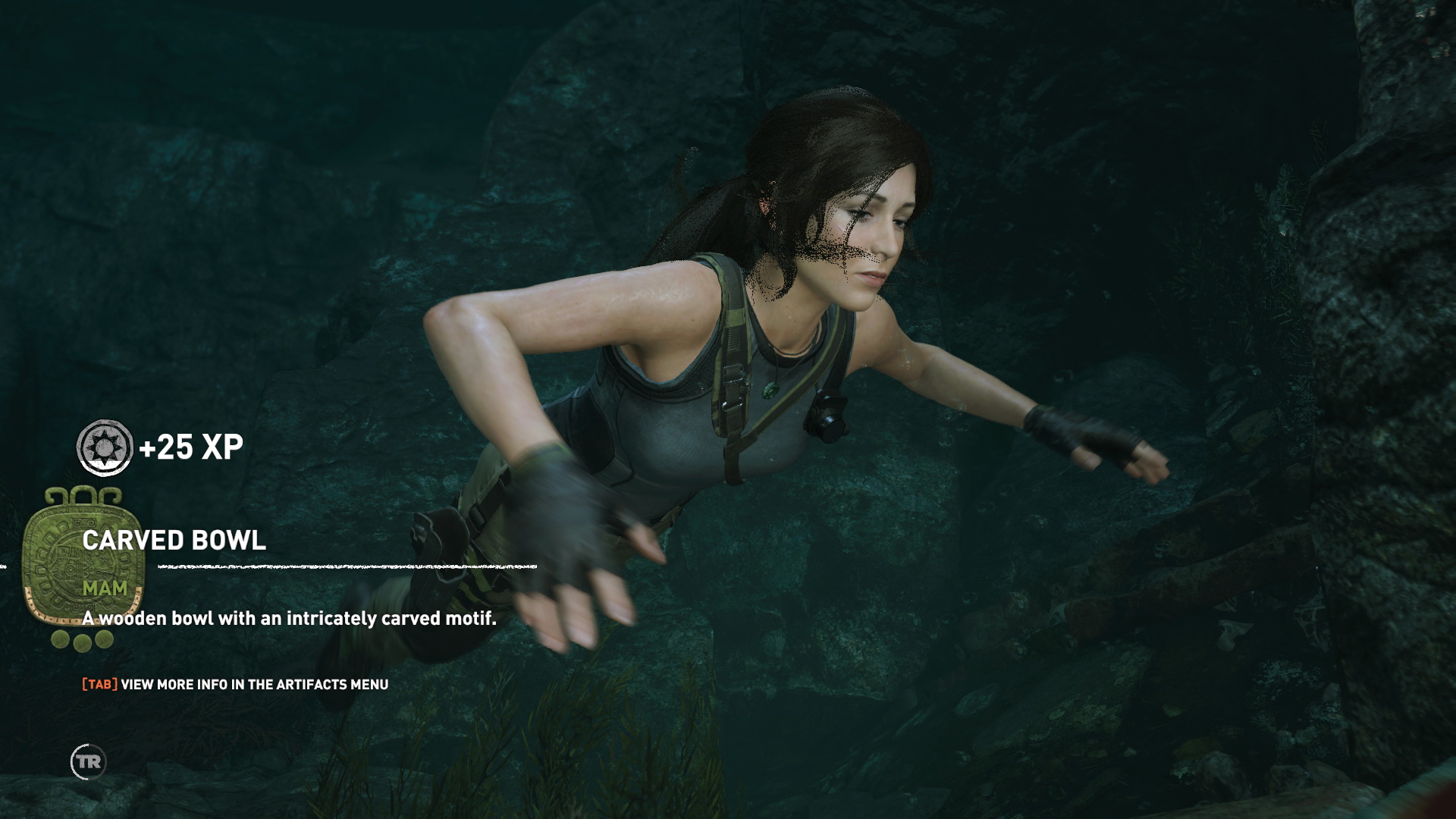 (kerámia kulacs). Az akadályt még nem tudod megnyitni, ugorj hát a vízbe. Ússz jobbra, vedd fel a vízi növényt, majd az xp-ket, vegyél levegőt, majd a vízben, a kis ládából emeld ki a 2. relikviát (Faragott tál).