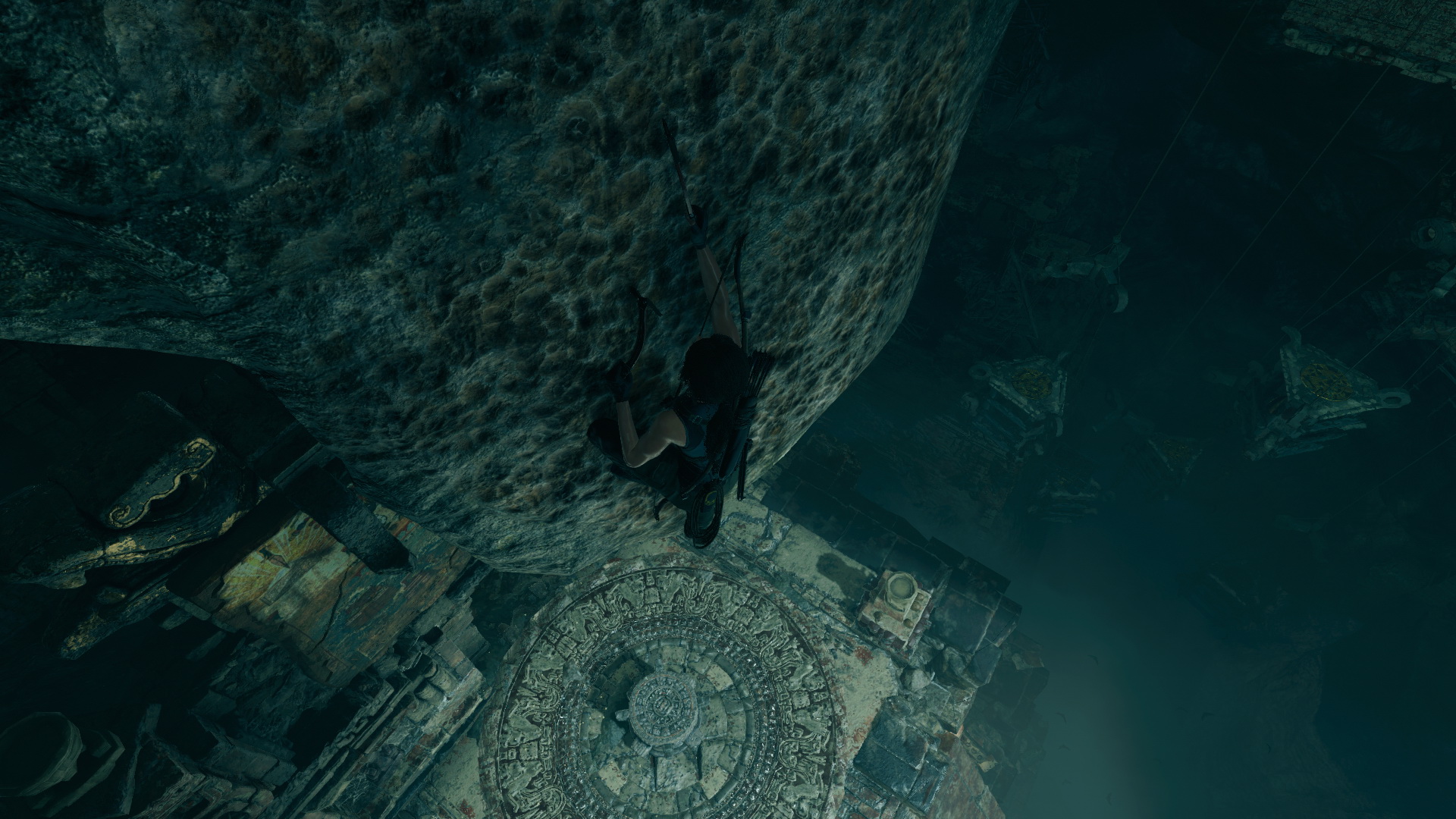 Jól nézz körül, bejárva a romokat, és felvéve a rengeteg cuccot. Ha megvan minden, ugrás a falra, ugrás fel, menj fel a lépcsőn, és olvasd meg az újabb követ. A kő mögött ugrás a szikára, mássz le, a kötél segítségével ereszkedj le, és ess le a kőpárkányra. Ugrás a szemközti sziklára, kapaszkodj balra, és ugrás a mászható sziklafalra. Újabb köteles ereszkedés, majd ismét ugrás a szemközti sziklára. Mássz fel, futás, ugrás a következő sziklapárkányt elkapva, kapaszkodj jobbra, majd le a falon. Ereszkedj le a kötélen, majd jobbra-balra belengetve, ugrás jobbra, a sziklafalra. Ott is mássz jobbra, majd le, le a kötélen, és a kötél gombját is nyomva, lengesd be előre-hátra, és ugrás a sziklapárkányra.