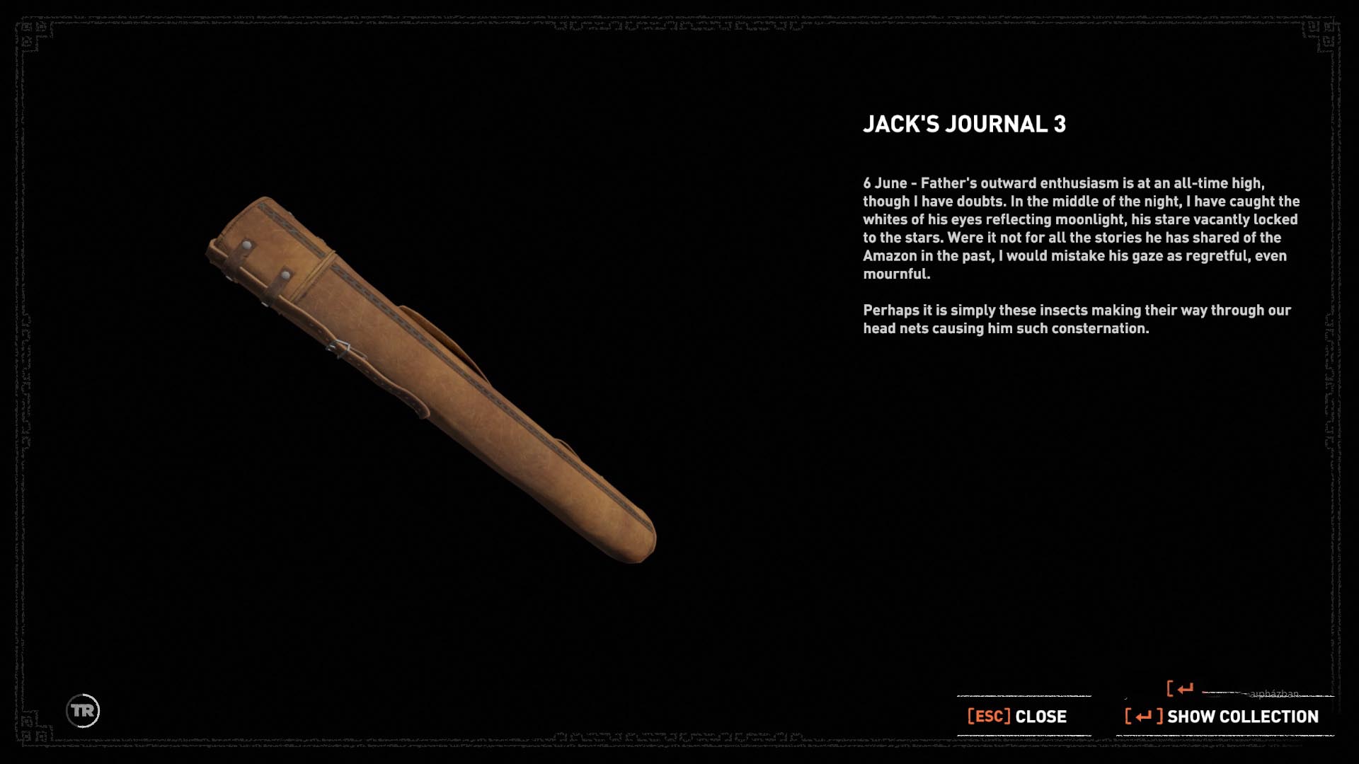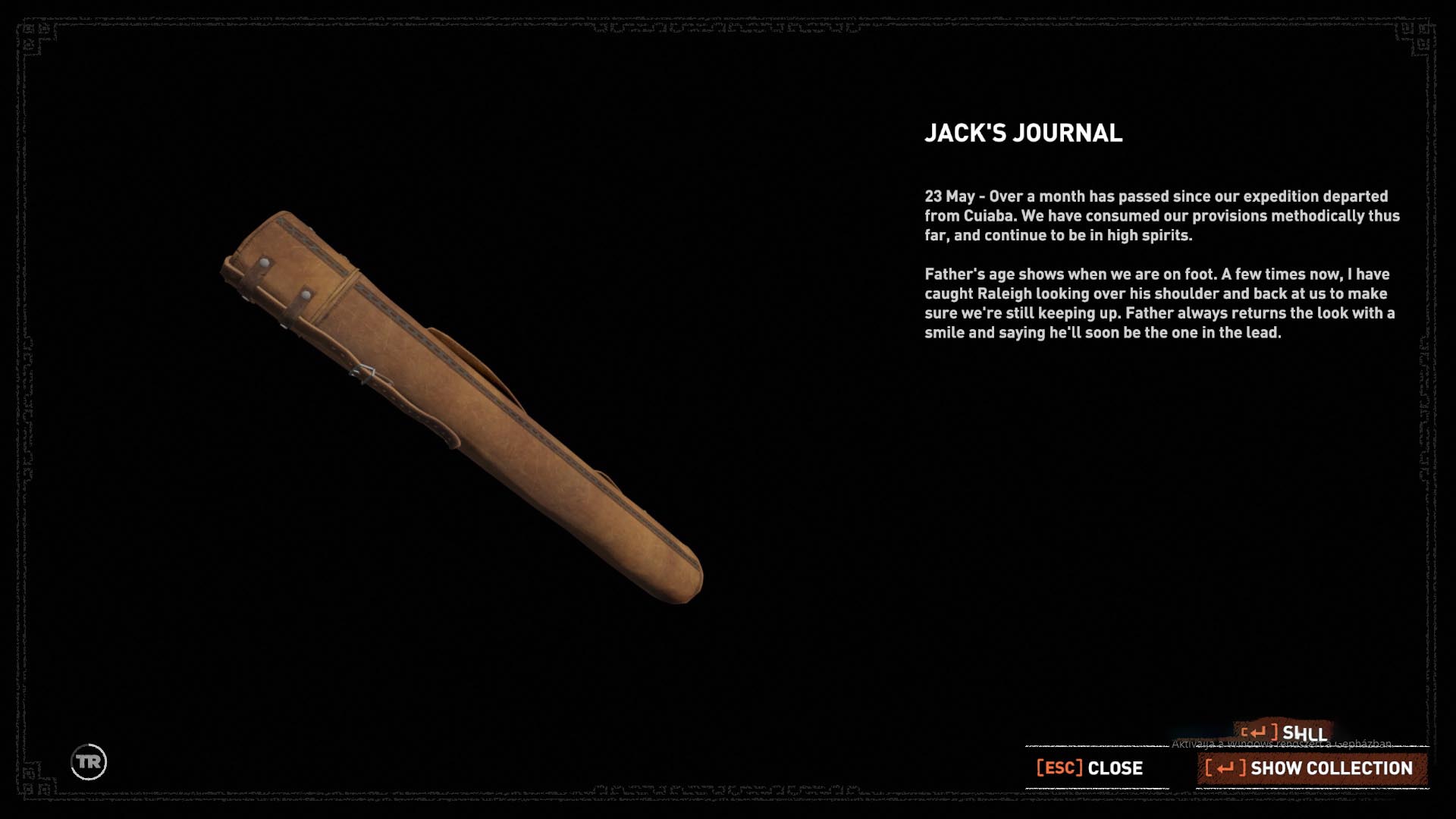 Ugorj a súlykapcsolóra, liftezz le, és a másik alól húzd ki a kocsit, majd ha felemelkedett, akkor told, ameddig tudod. A baloldali kocsit is húzd rá a fagerendára, hogy kinyíljon az oldalfala, és a mögötte levő köteles gerendától lőj egy nyilat az első kocsi előtti köteles részre. A második kocsi mellett kapaszkodj fel a falra, vágd el a csapda kötelét, gurulj át alatta, és megtaláltad a 11. dokumentumot, a Jack folyóiratát.