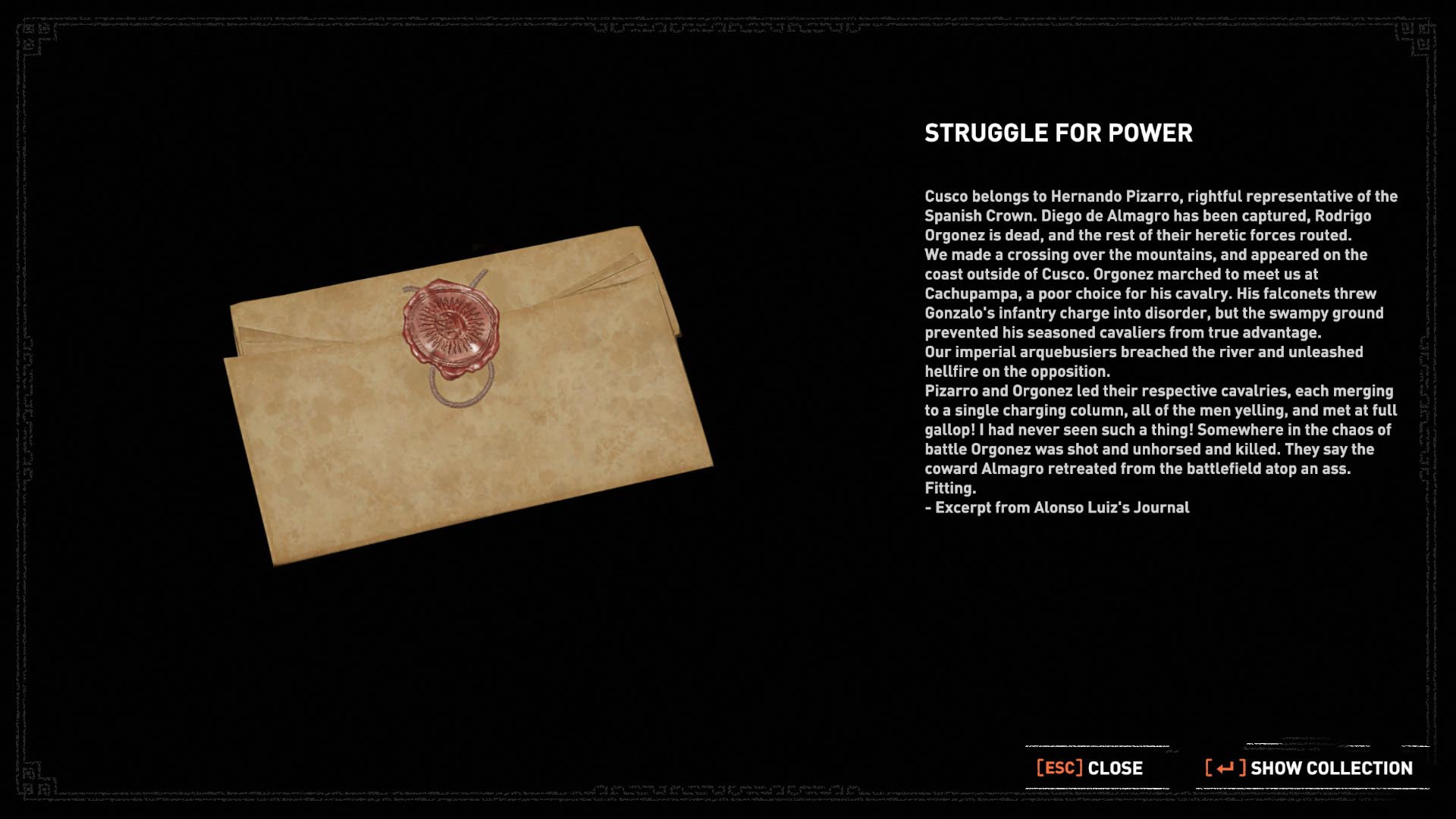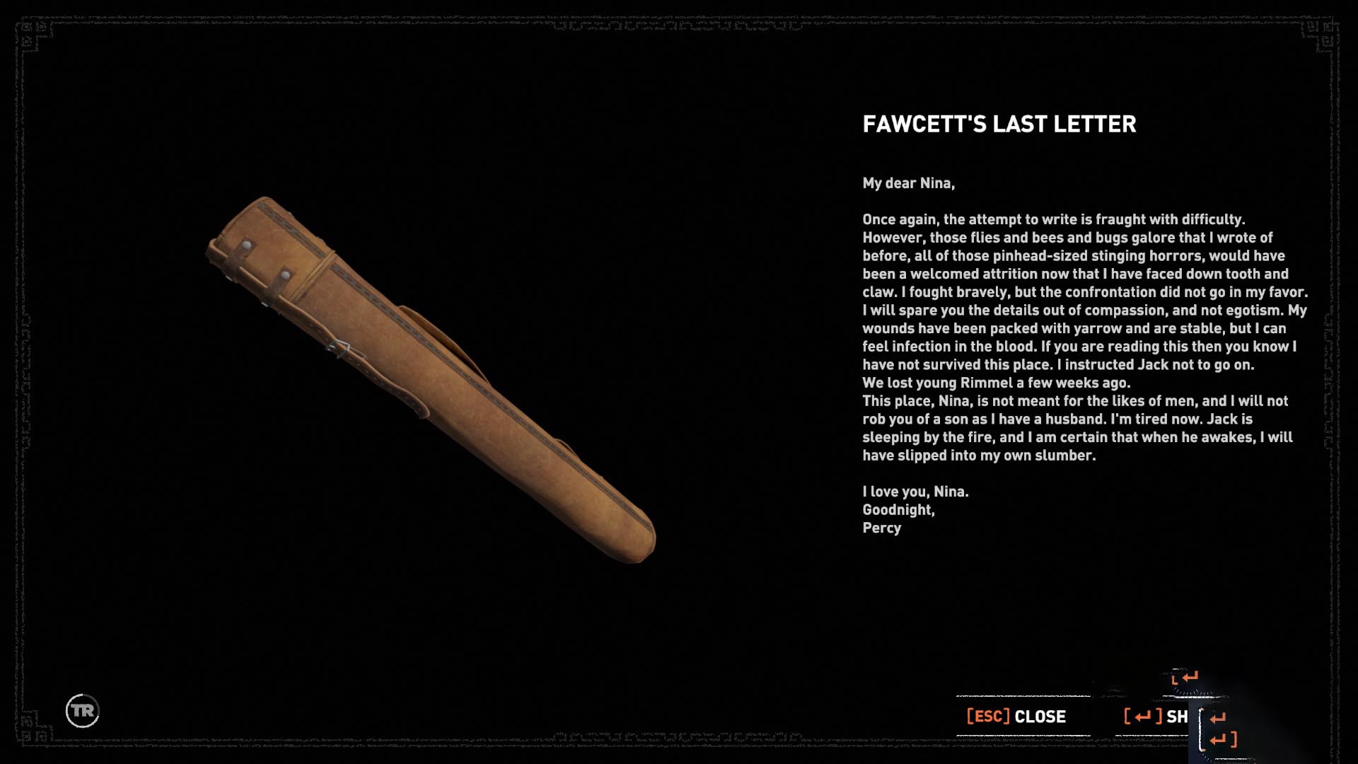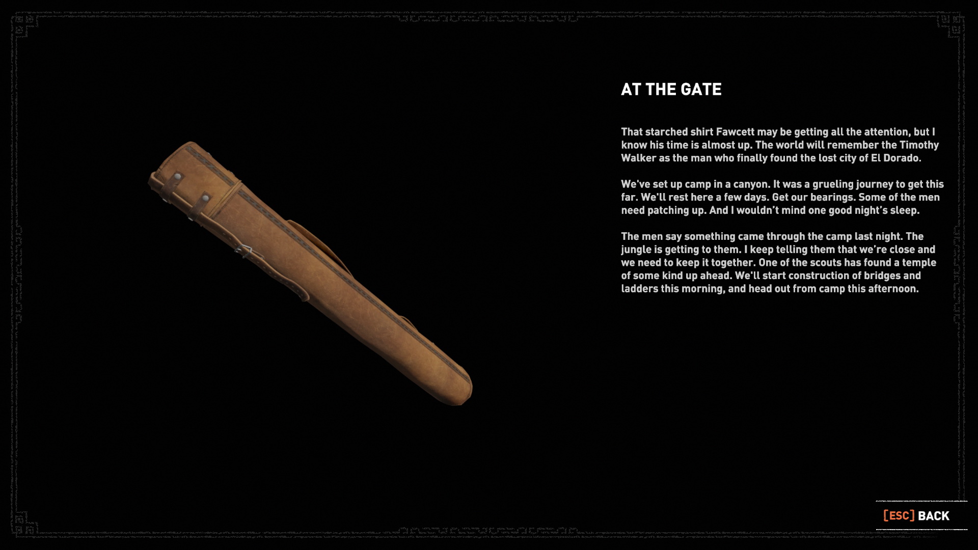 Gázolj át a vízen, menj le a lépcsőn, át a kis patakon, majd balra menj, a köteles oszlopnál kicsit tovább, és kapaszkodj le a szakadék szélén. Mássz le a sziklán, kapd el az altatd levőt, kapaszkodj balra, és mássz fel a sziklarésbe. Mássz át rajta, és meg is van a 12. dokumentum, Fawcett utolsó levele.