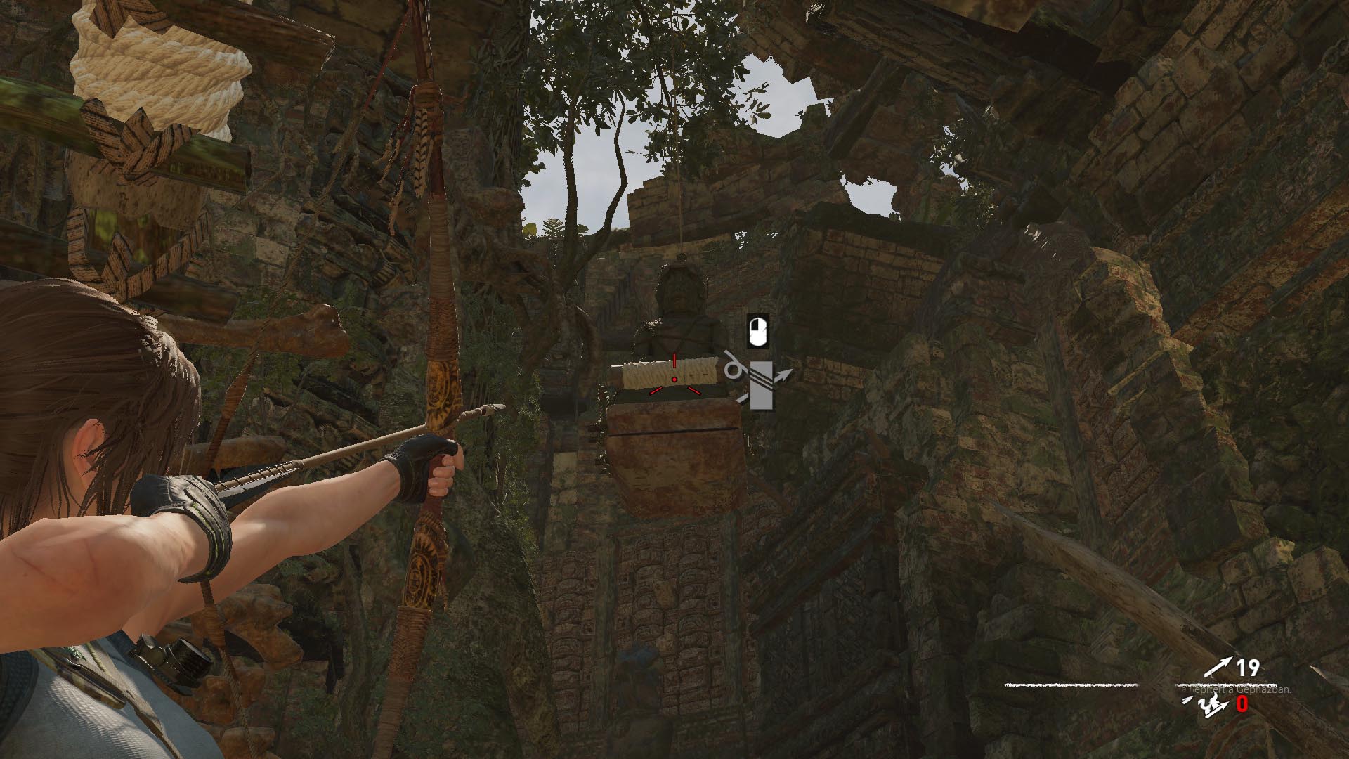Kapaszkodj fel a létrán, húzd meg a kart, lent pedig toljátok meg a kőkereket. Gyorsan menj le a folyópartra, és lőj egy kötelet a szemközti részre, amíg az innenső lent van. Menj vissza fel, ugrás át a hídra, menj Jónás után.