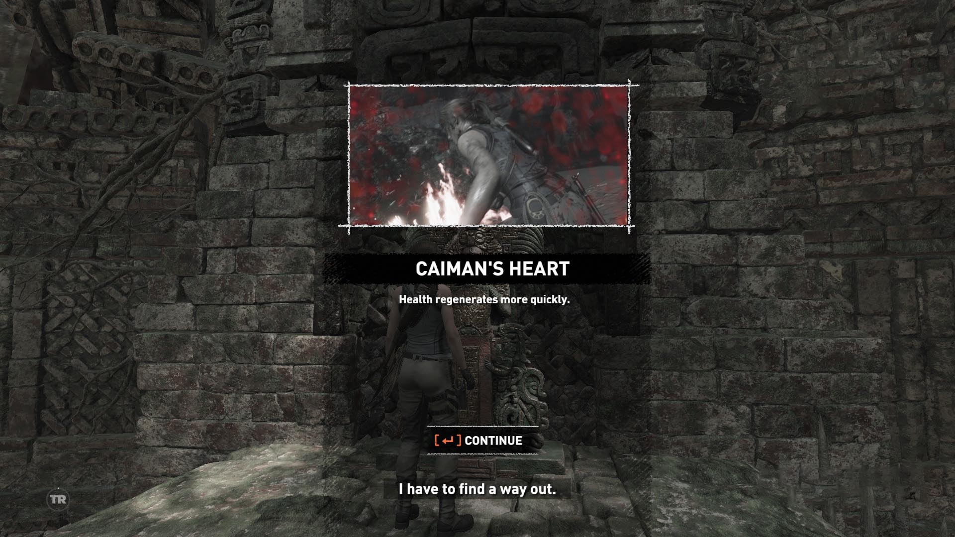 Ugorj a liftre, és leérsz a földszintre. A híd alól, ahol kötél van rajta, lőj egy kötelet a jobb oldali felemelt szoborra. Told az első kost a másik fagerendára, ahol szétnyílik az oldala. Menj jobbra, és a falakon feljutsz oda, ahol áttörted a falat. Még mindig ne menj át rajta, hanem ugorj ott is a liftre, így most már teljesen felemelted a széles létrát. Mássz hát fel rajta, ugorj át, a leszakad résznél a túloldalra, és lenyitva a szobor elejét, megnézheted. Megvan a Caiman’s Heart.