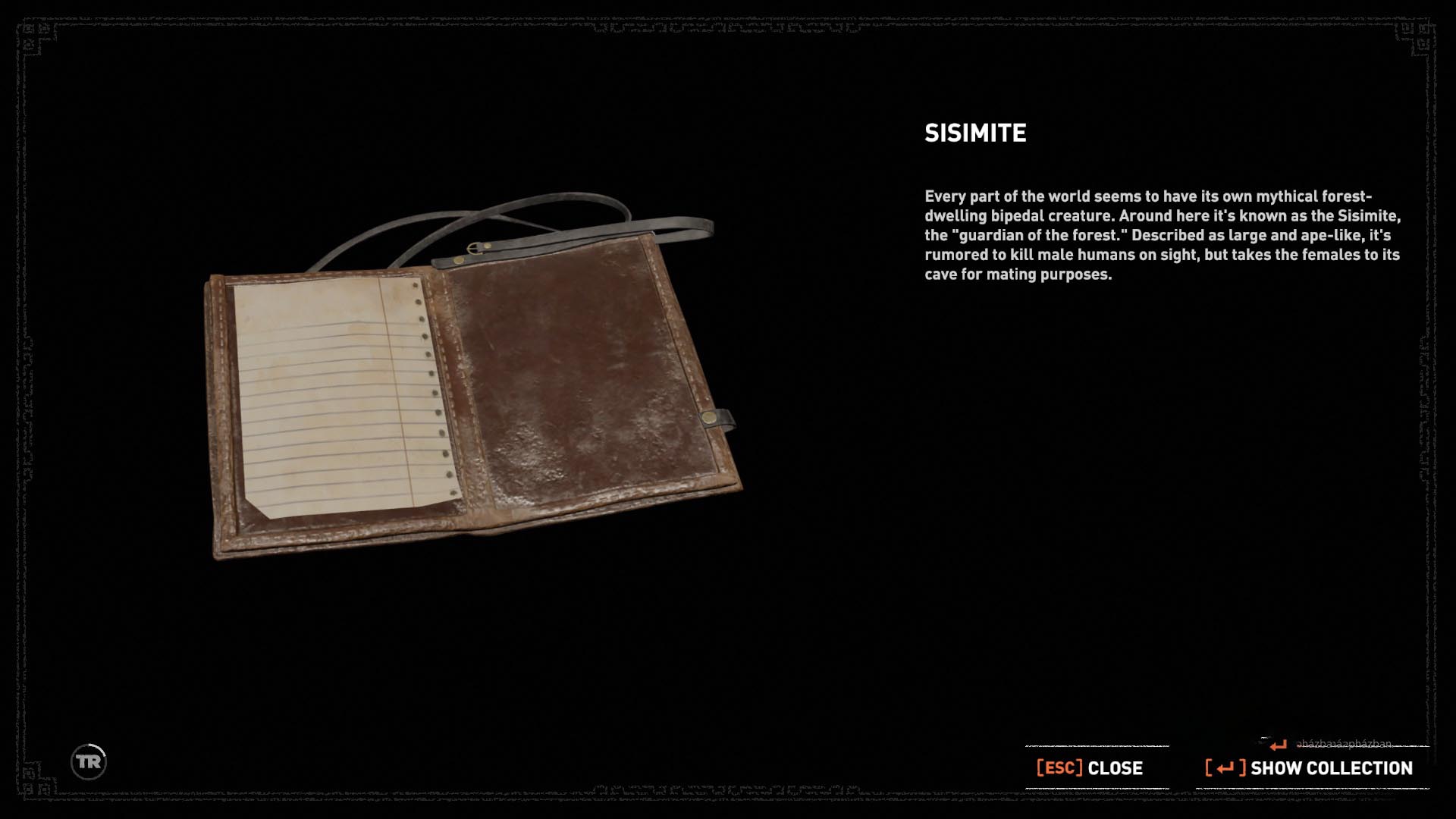 Menj az ösvényen, húst találsz egy állathullánál, és mellette az 4. dokumentumot (Sisimite) Menj tovább, és balra z ösvényen, a fatörzs alatt átbújva lecsúszol a lenti részre.